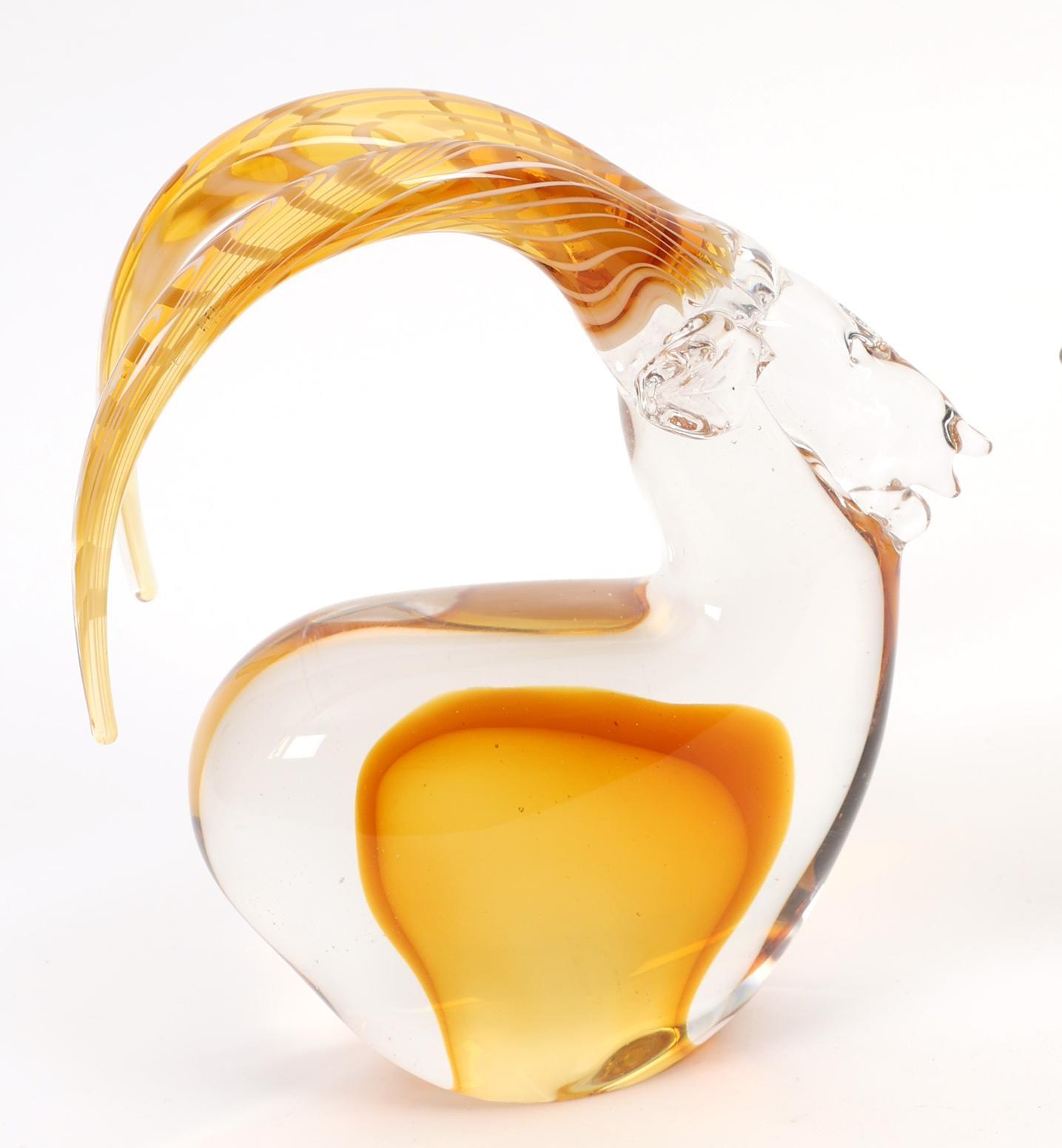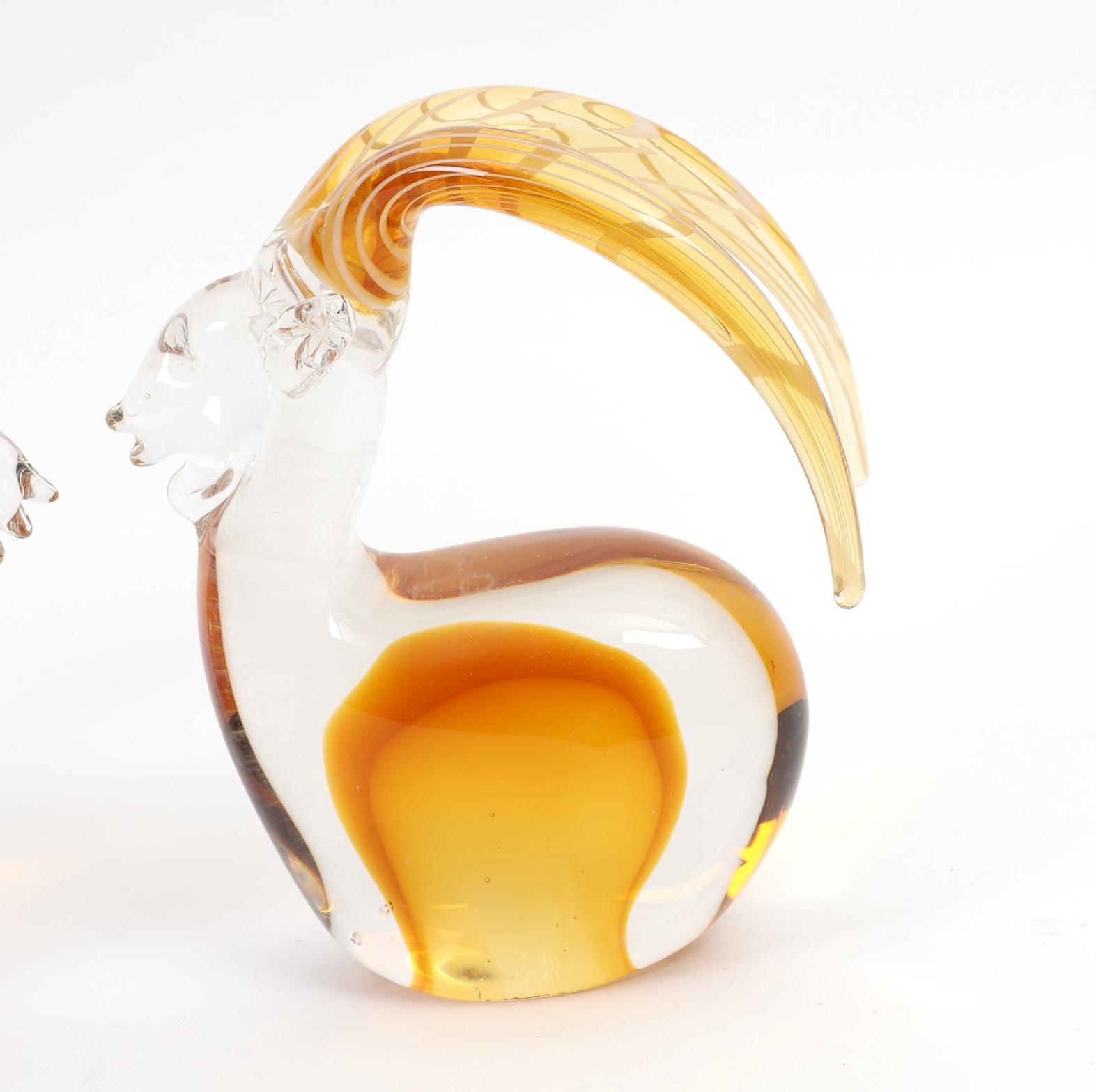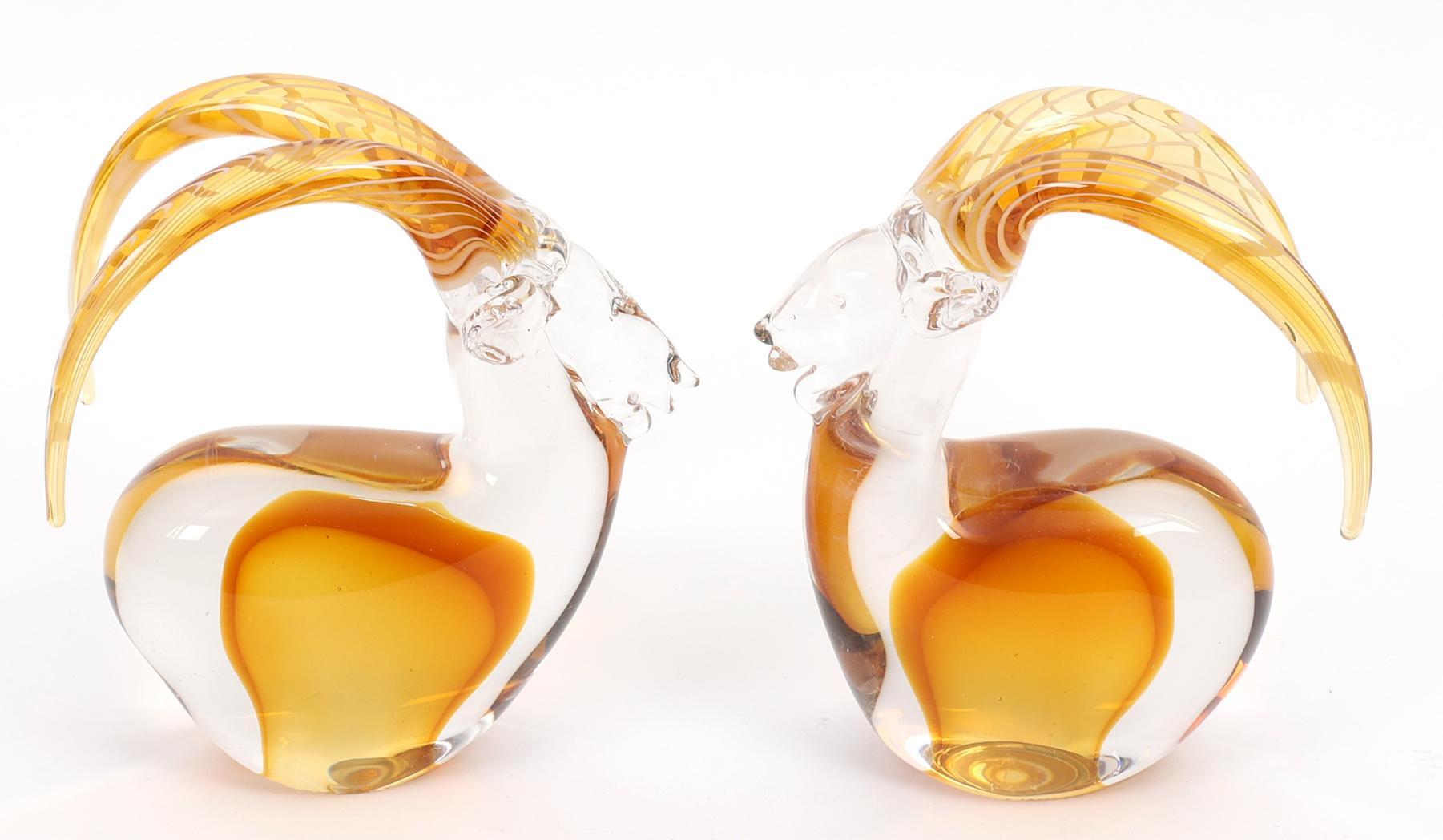 Stel glazen Murano-stijl bokken, h.19 cm.