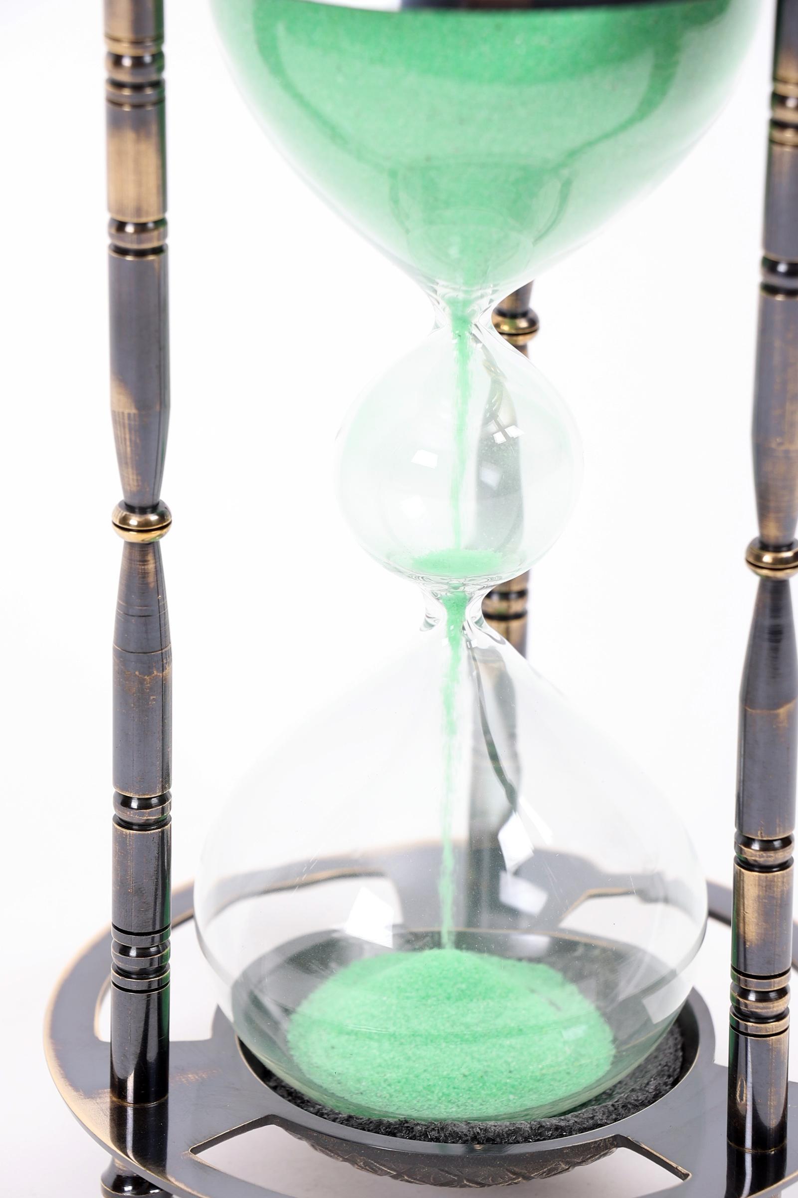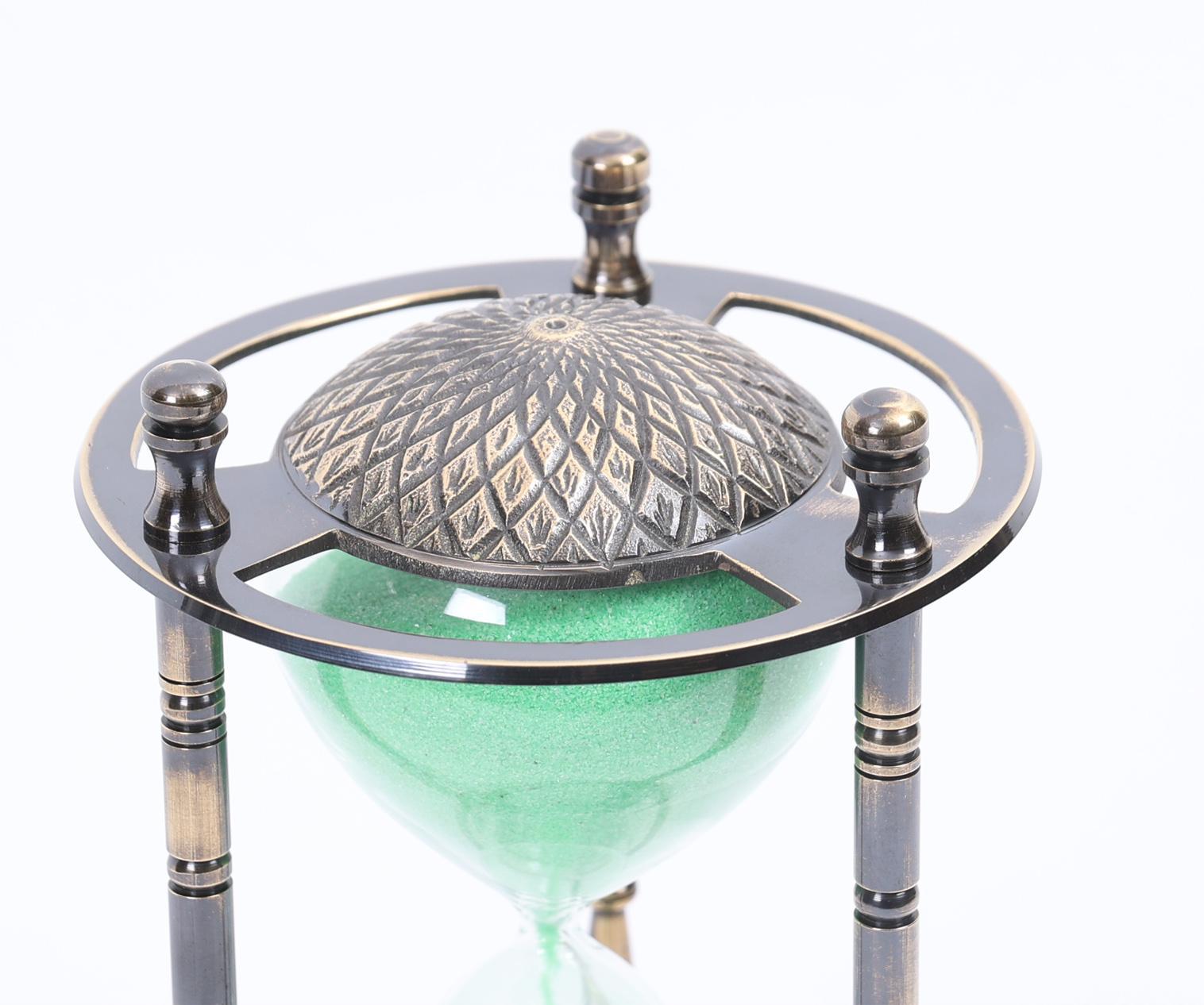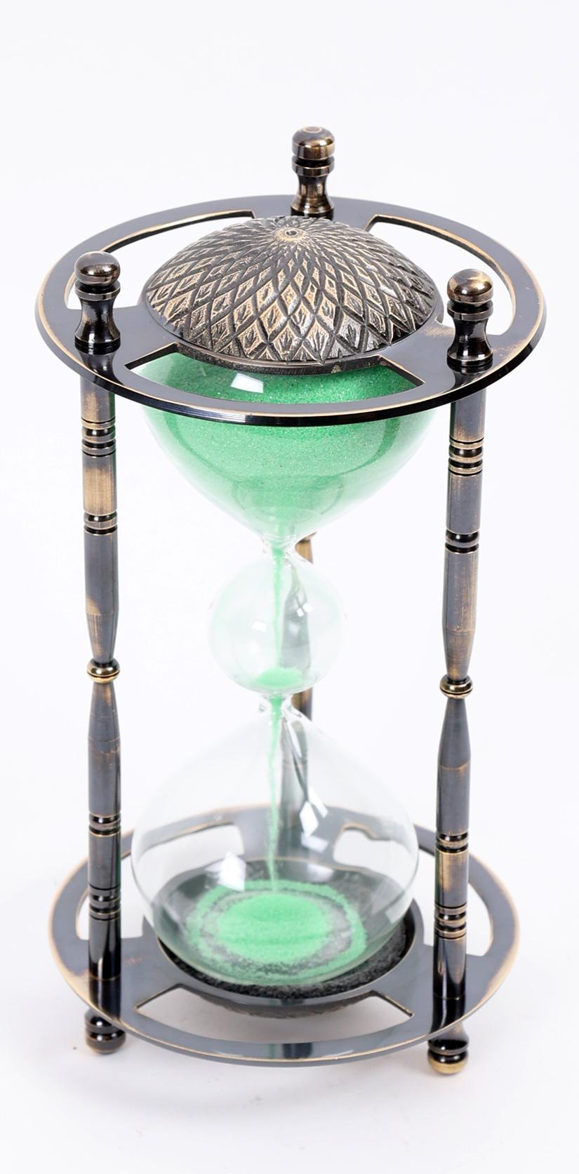 Zandloper in metalen montuur, h.19 cm.