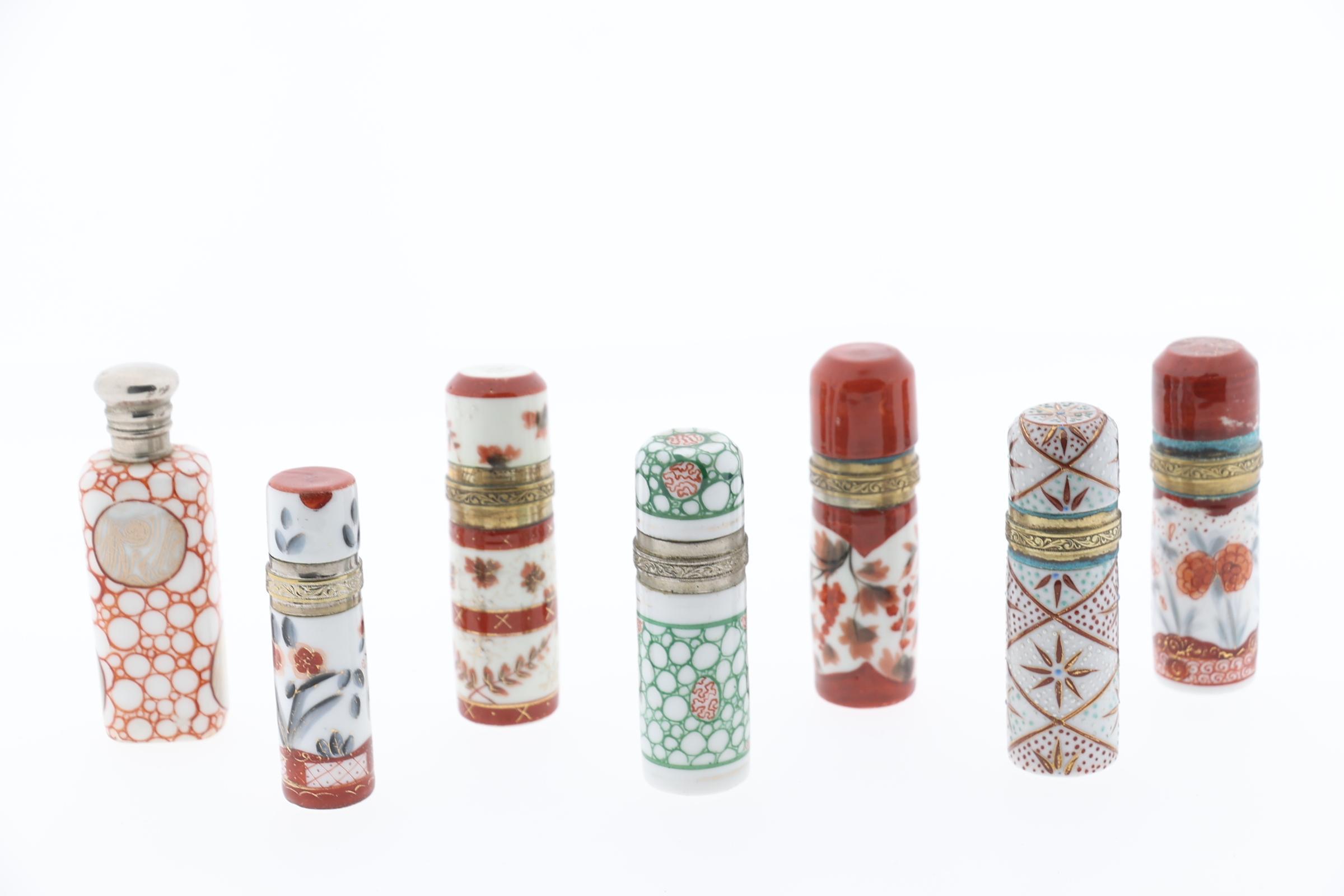 7 Diverse Europese odeurflacons w.o. met zilver afgezet, 19e eeuw, ca.h.8 cm.