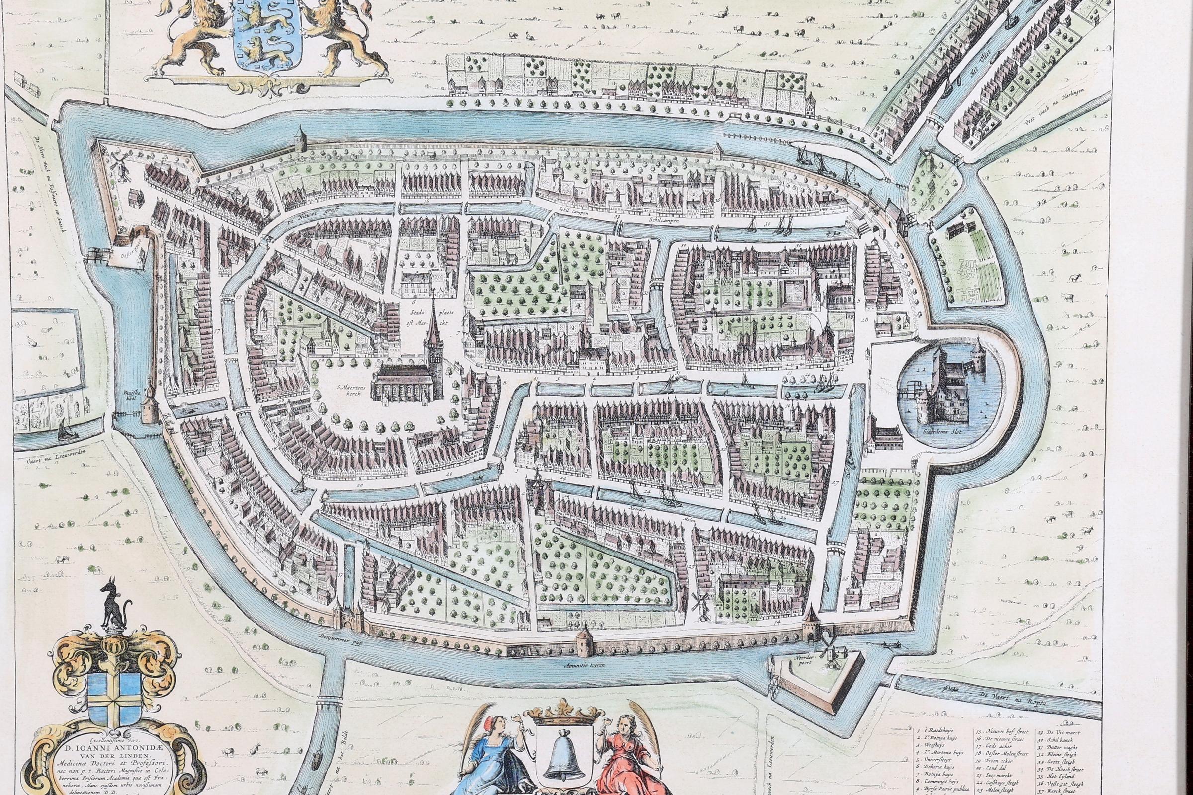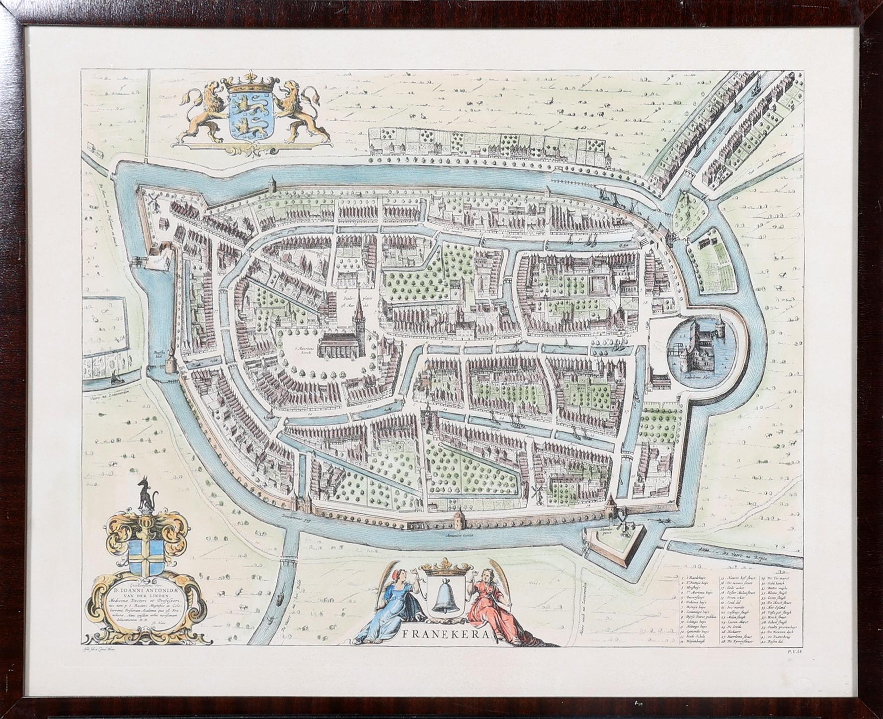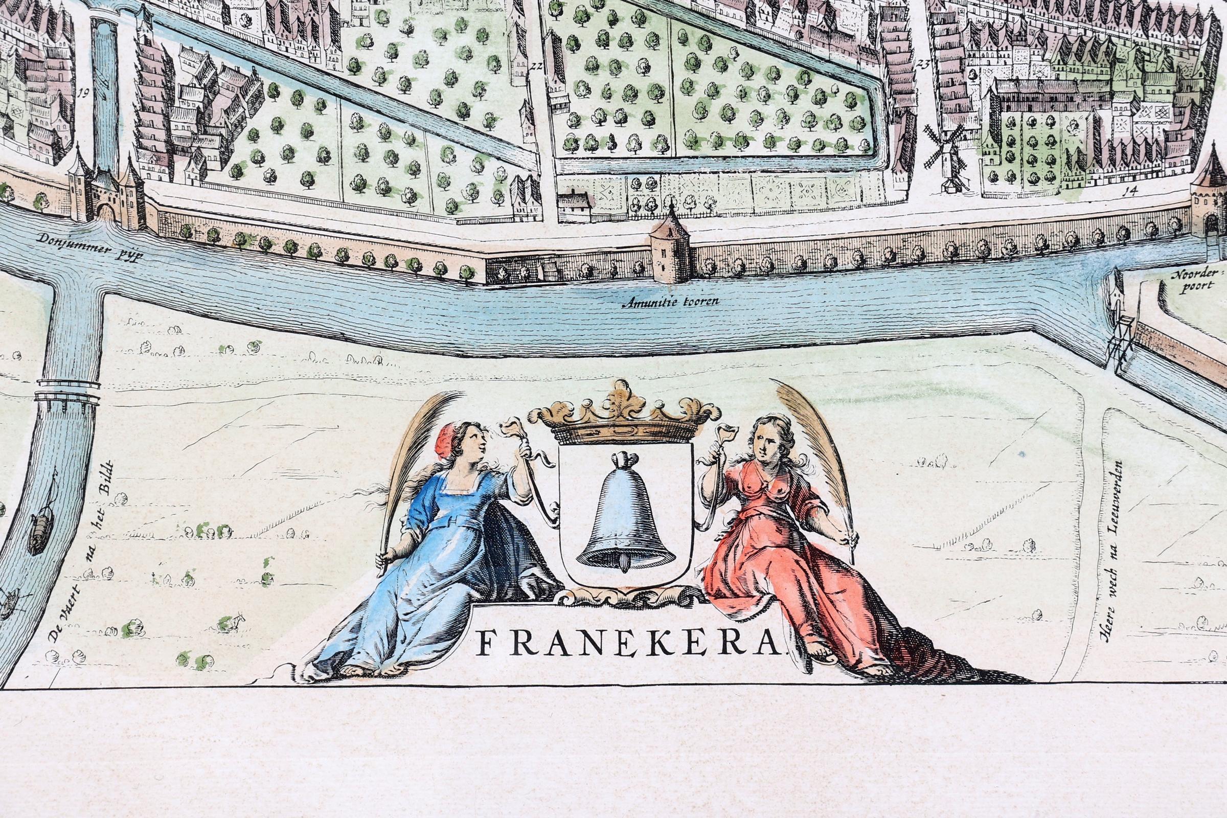 Ingekleurde kaart, Franeker, 53 x 41 cm.