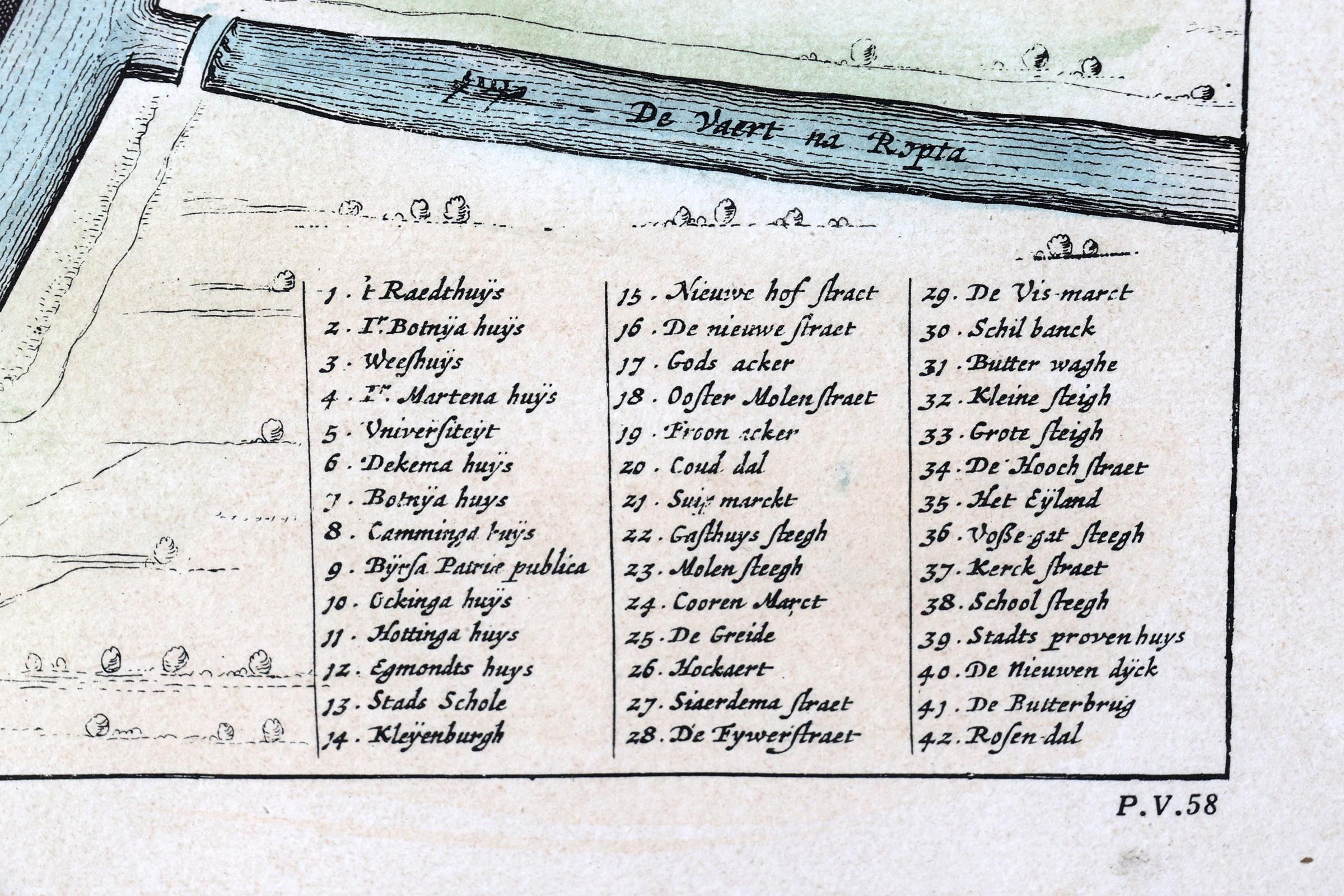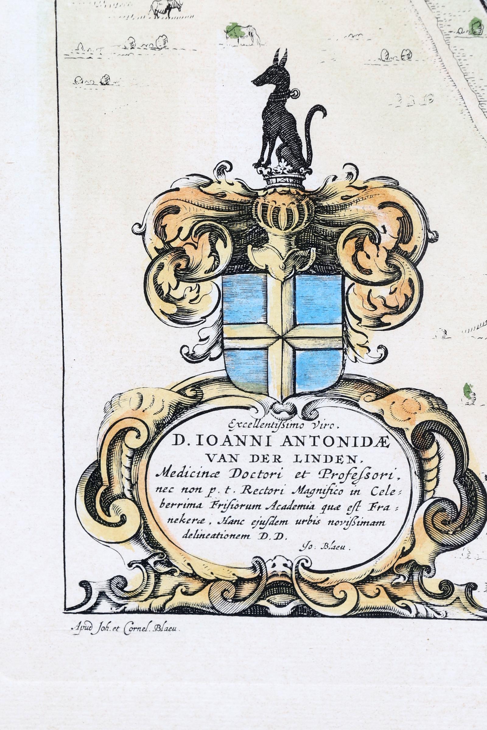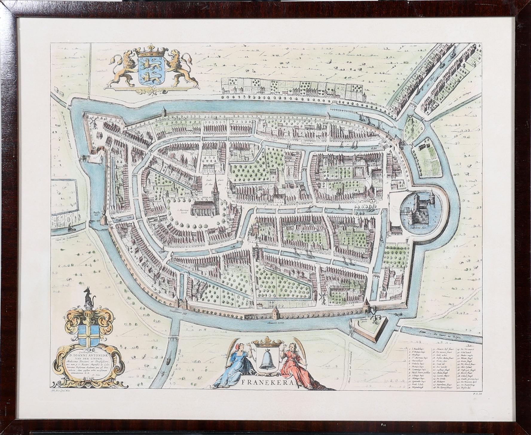 Ingekleurde kaart, Franeker, 53 x 41 cm.