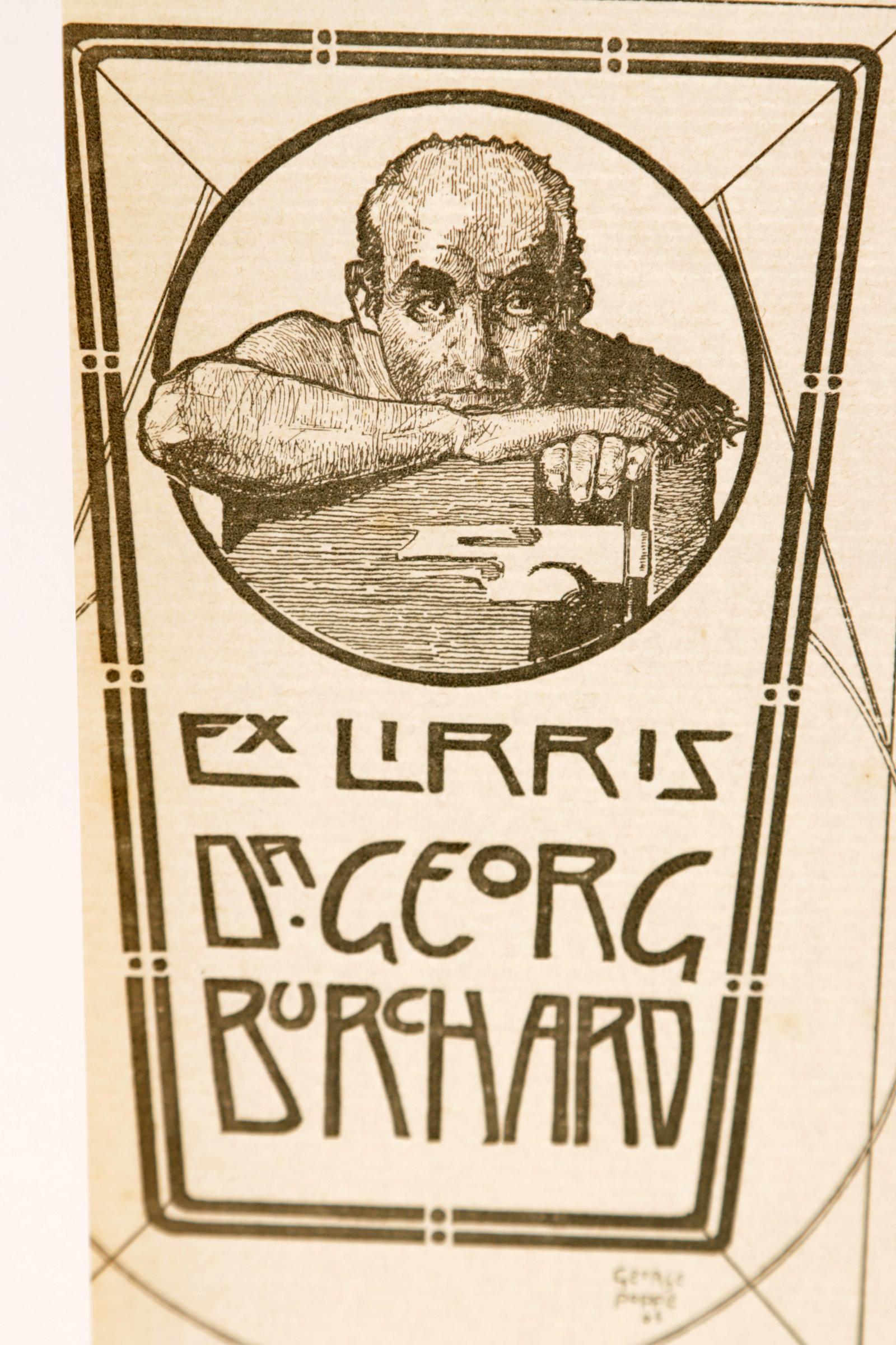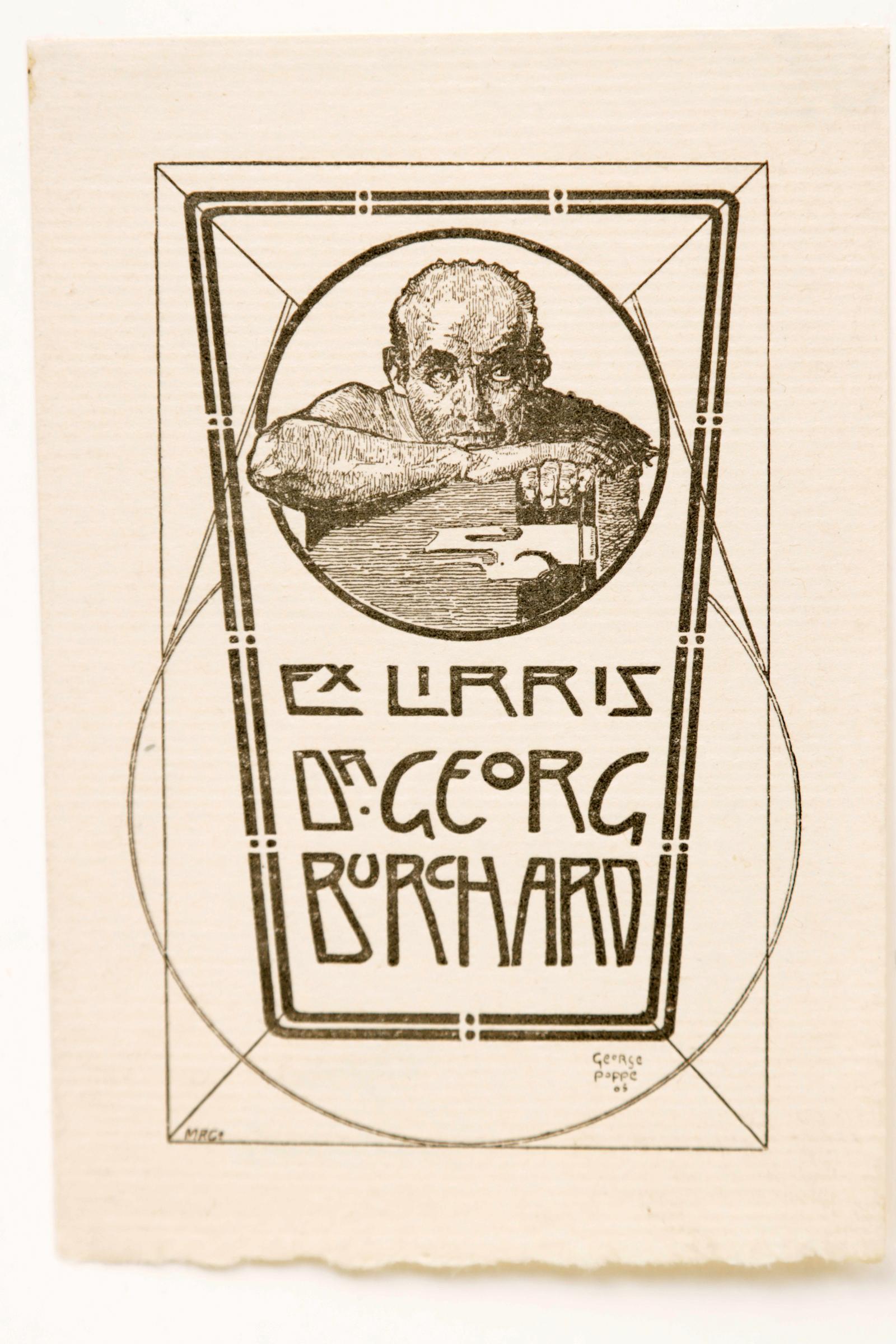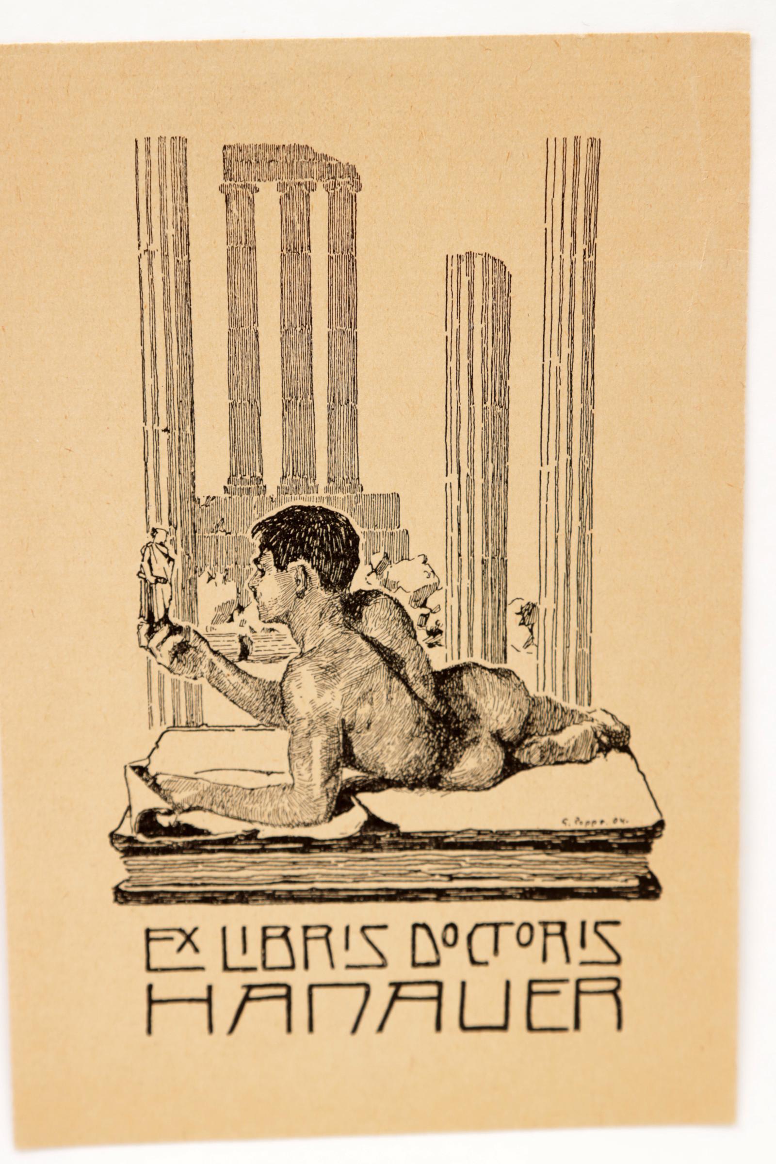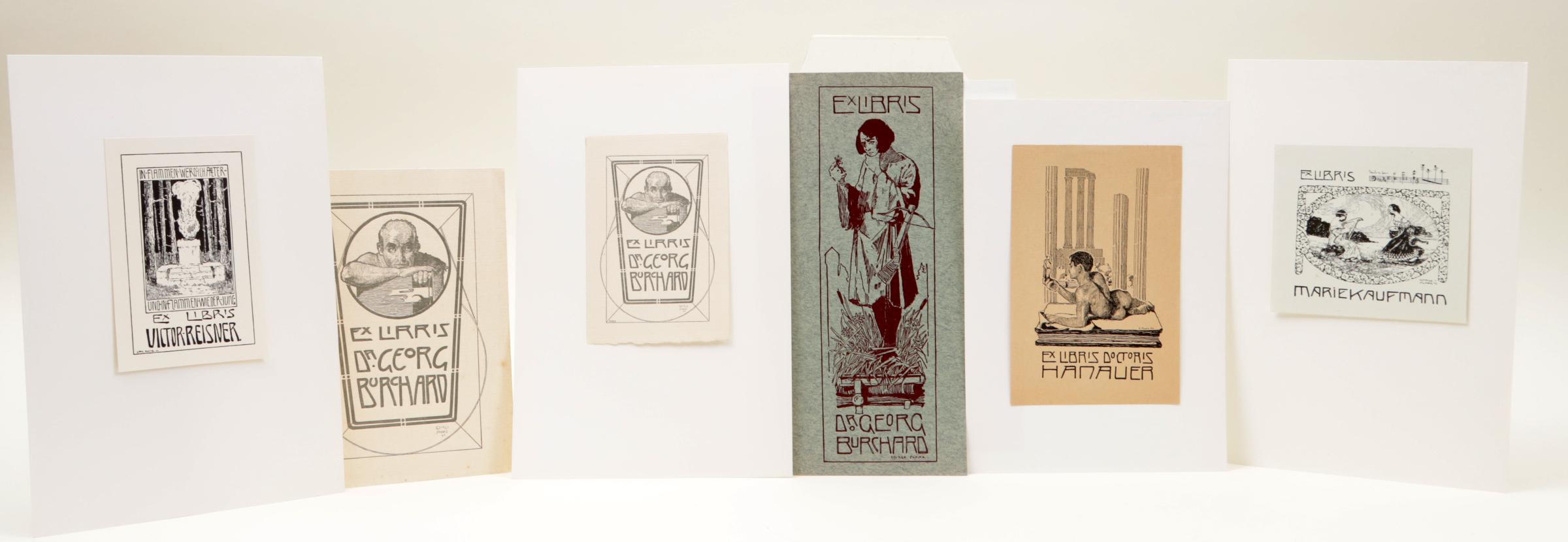Poppe, G., 6 exlibris, X2 / cliché, deels opgeplakt, niet gesigneerd. Voor o.a. Reisner, Kaufmann, Burchard.