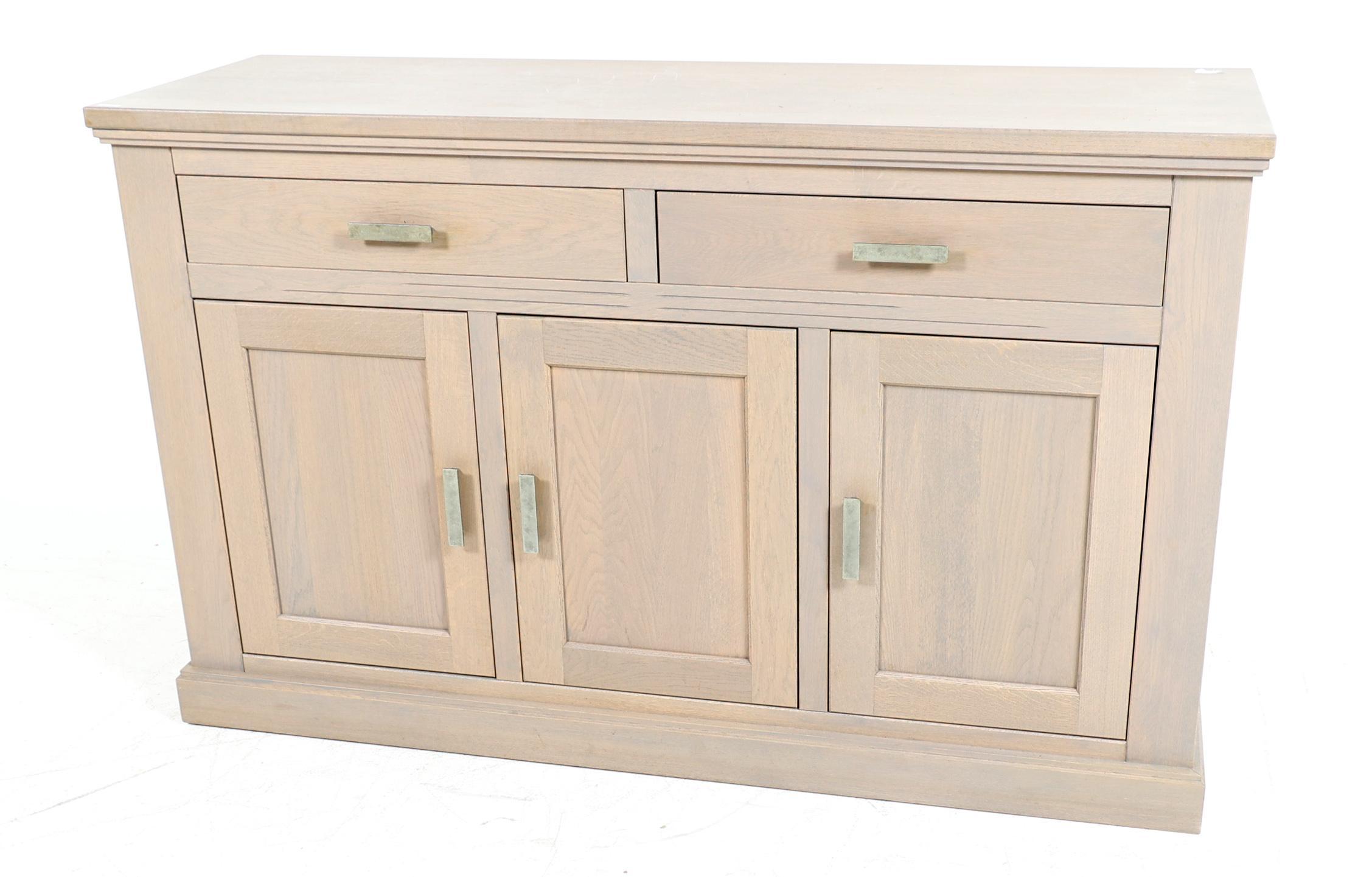 Grijs gelakt houten dressoir, h.95 x b.153 x d.50 cm.