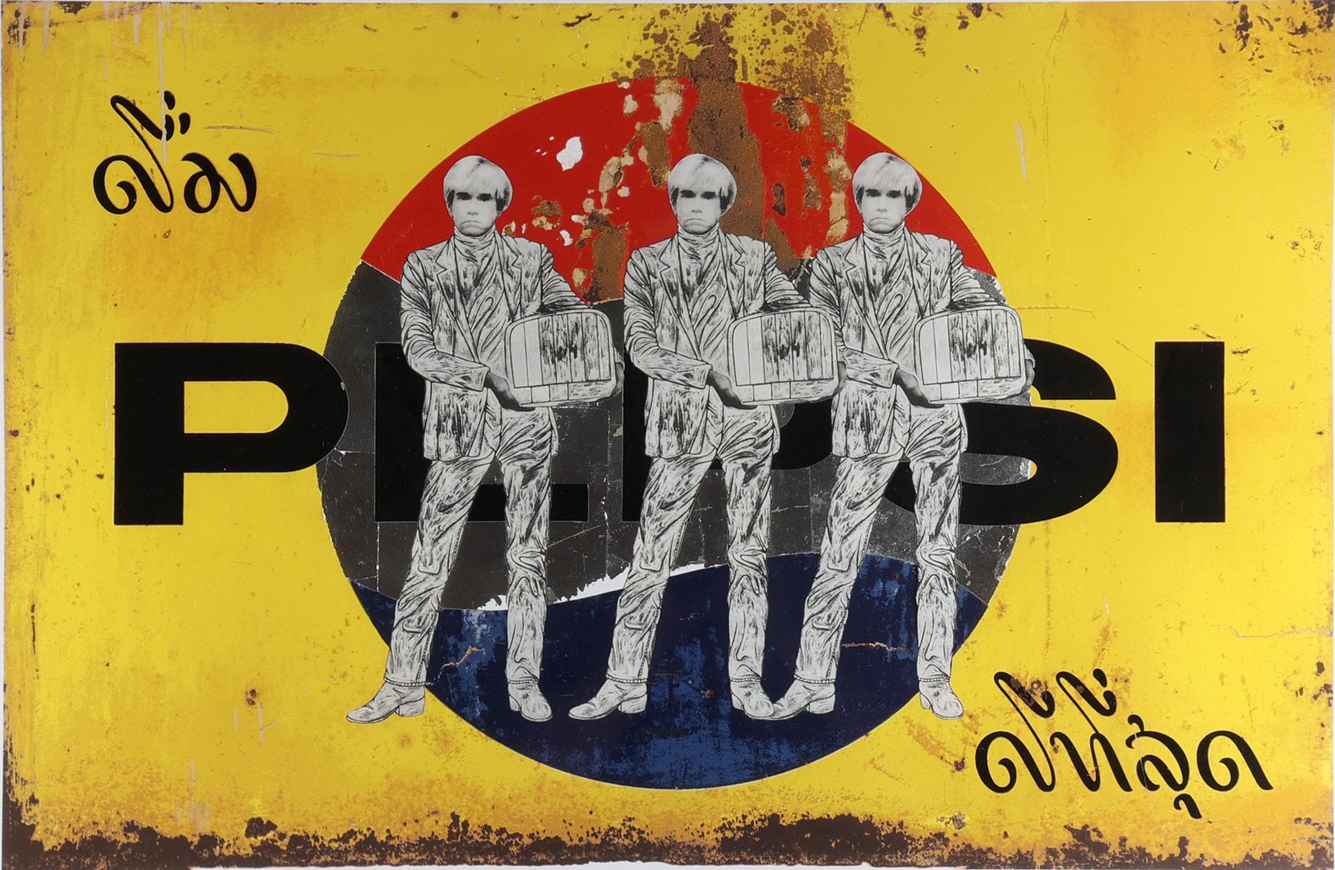 Pakpoom Silaphan CV (1972), Warhol on Pepsi (2011), handgesigneerde zeefdruk met bladzilver, 51,5 x 78,5 cm.