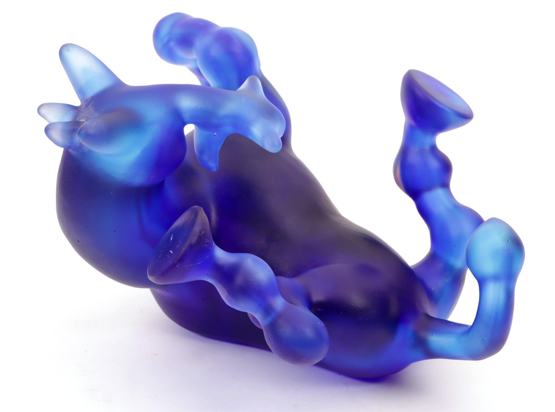 Sculptuur gegoten glas(kiln cast glass) van de Chinese kunstenaar Zhen Ning Li; blauw; Titel: ‘Weightlessness’ Unica; h.18 x b.28 x d.25 cm.Zhen Ning Li Komt uit Beijing waar hij tussen 2007 en 2010 kunst studeerde aan de Tsing-hui Academy of Art and Design. Hij is Master of Art in Glass en geeft sinds het afronden van zijn studie ook les aan de Beijing University of Civil Engineering and Architecture., De ster van Zhen Ning Li is ook rijzende in China omdat de glaskunst sterk in opkomst is. Dit blijkt oa door de erkenning van diverse kanten zoals zijn grote solo-tentoonstelling ‘WANDERING’ die Zhen Ning Li had in het Shanghai Museum of Glass van december 2017 tot april 2018.