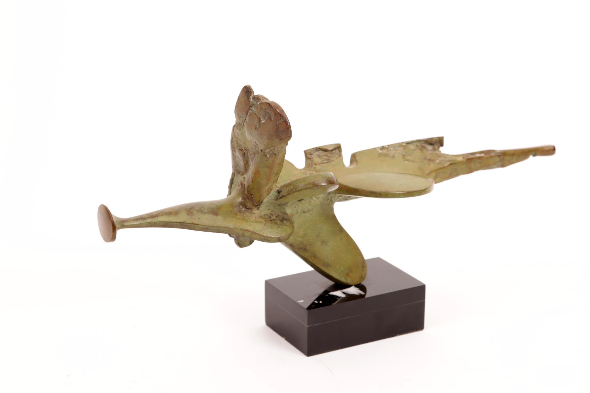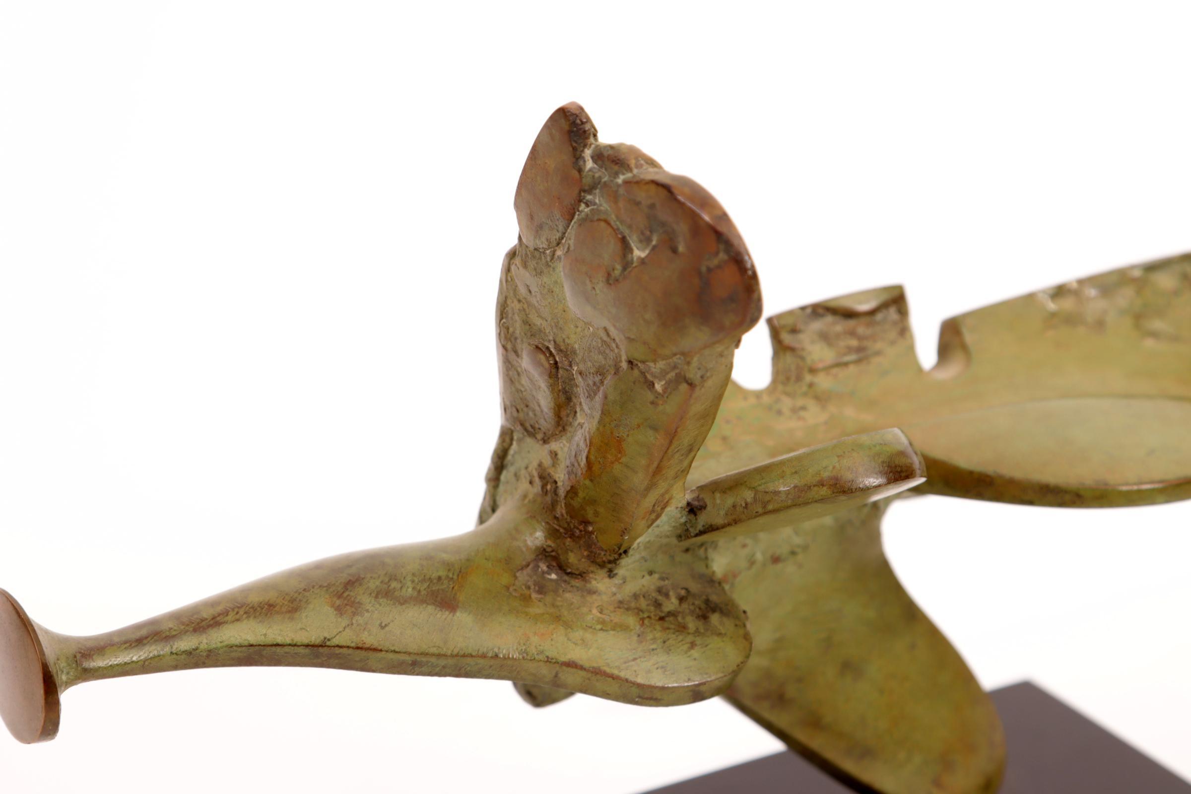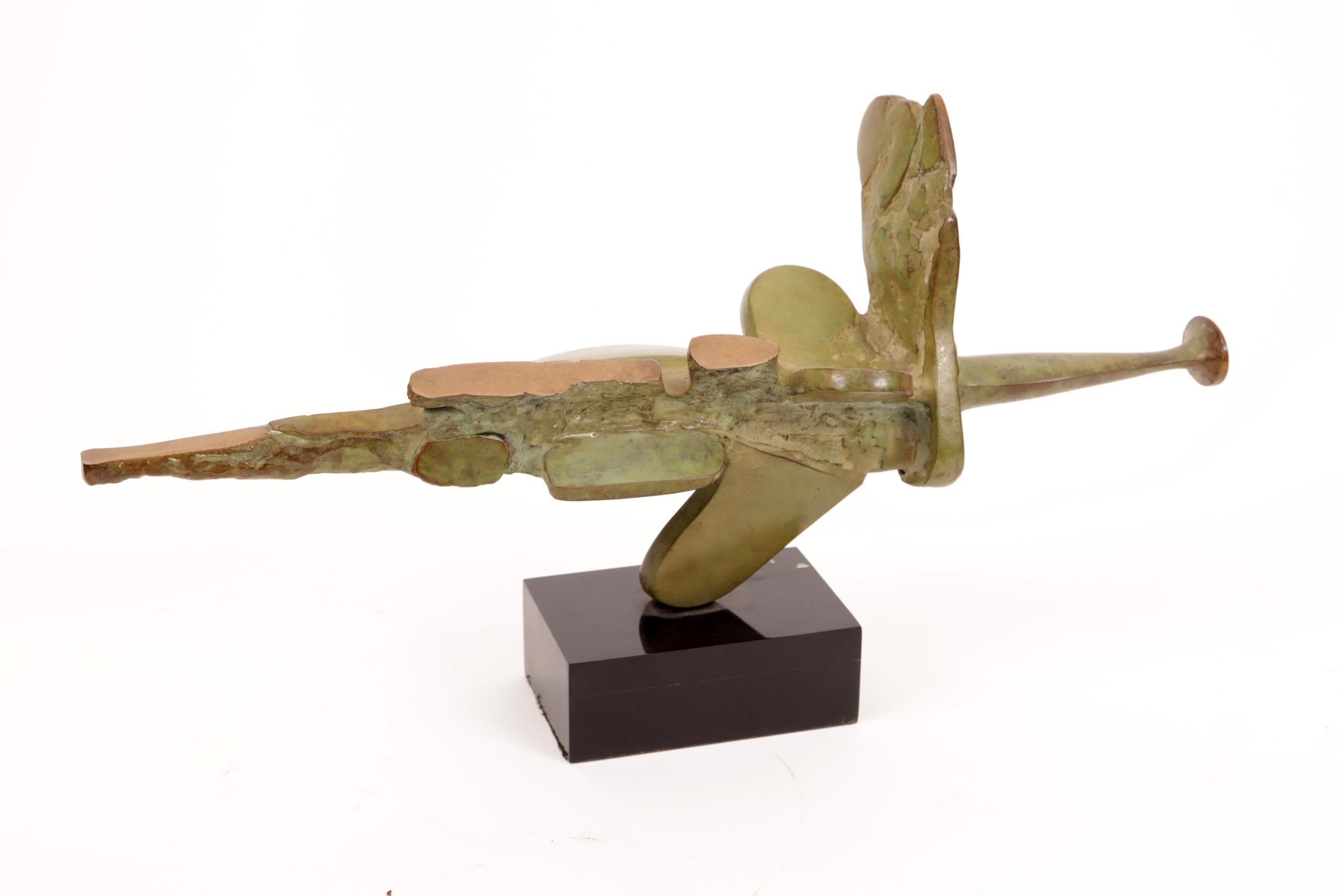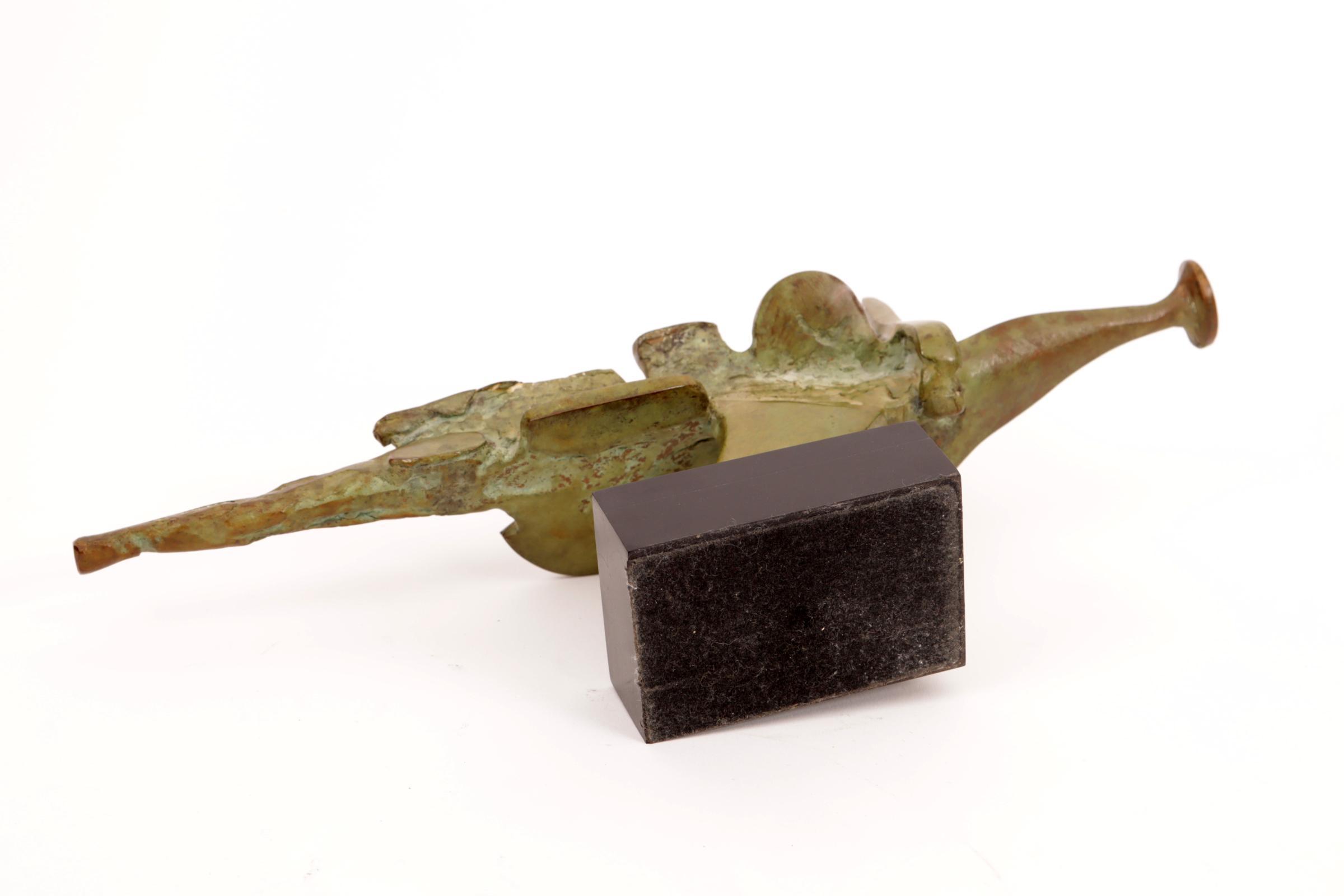 Jan van der Schoor (1941-2008), Abstracte bronzen sculptuur, h.17 x L.31,5 x d.5,5 cm.