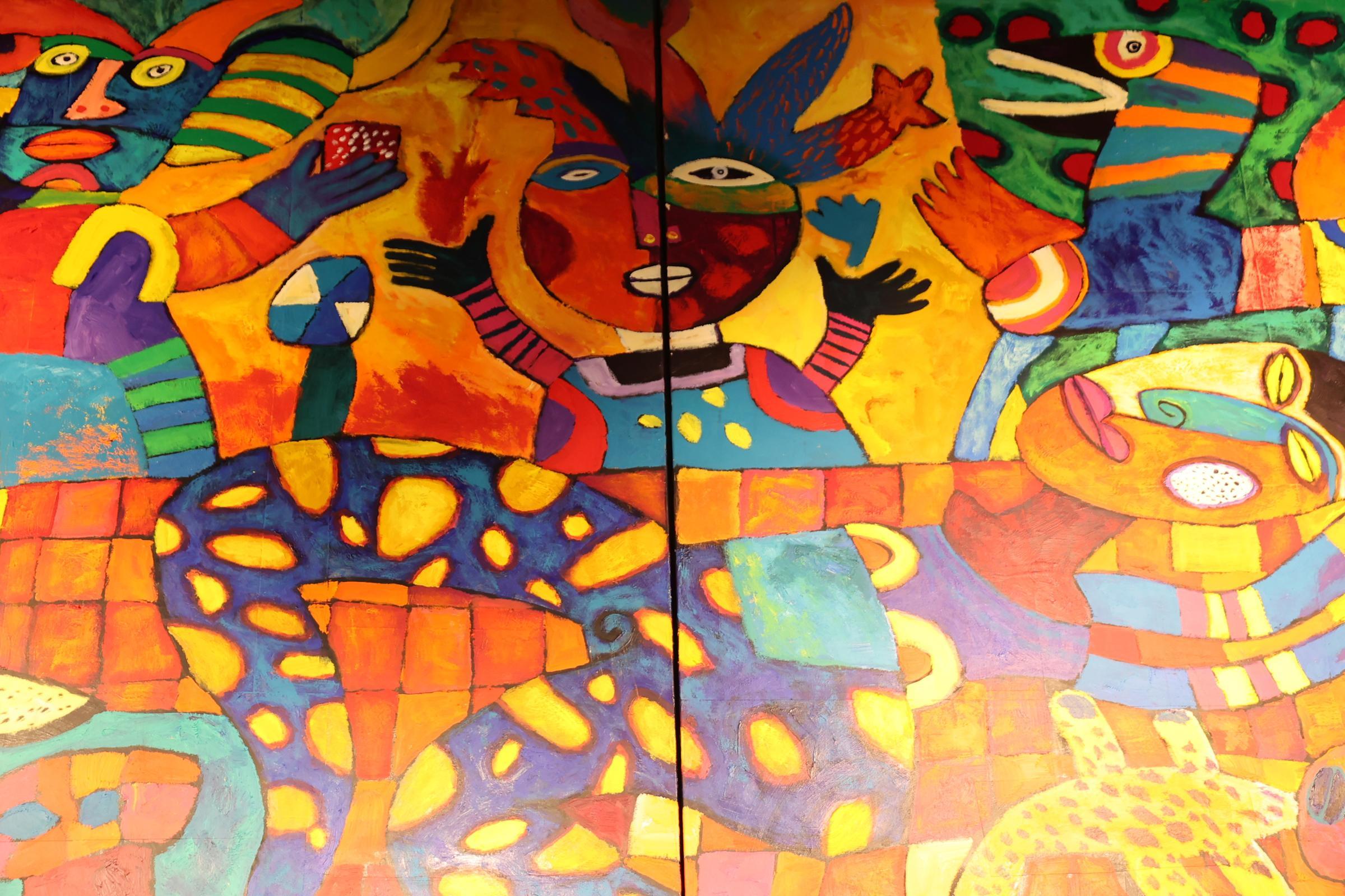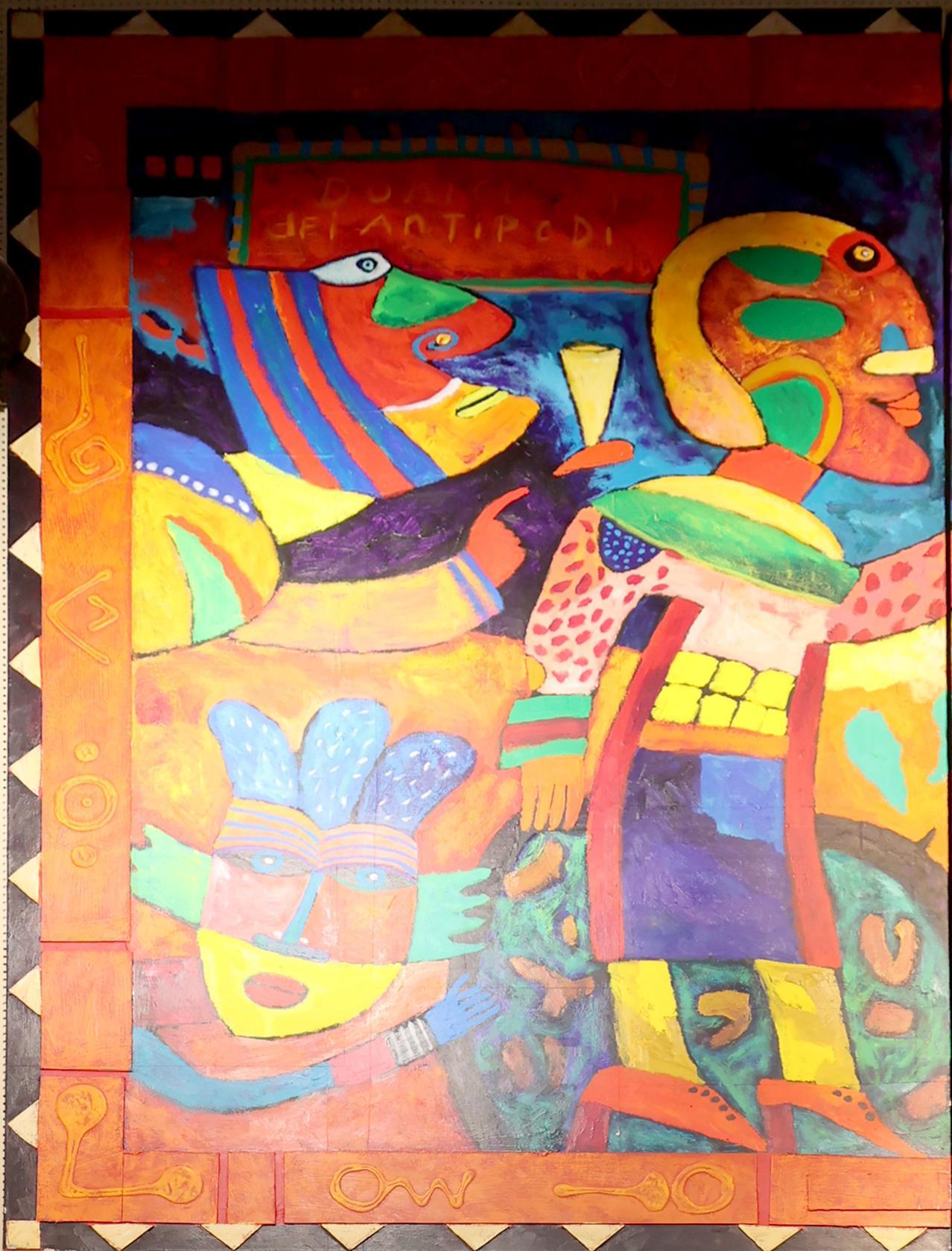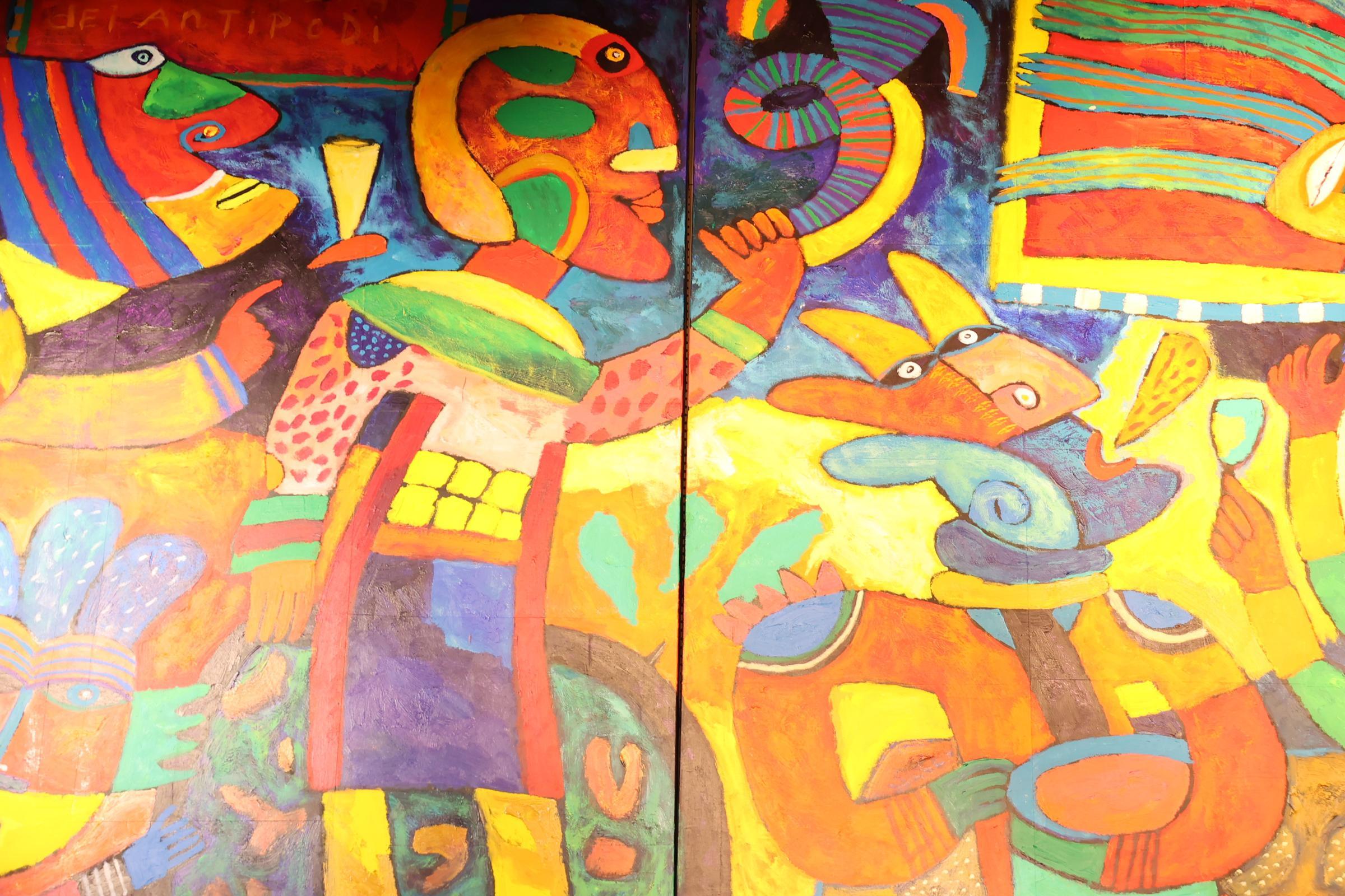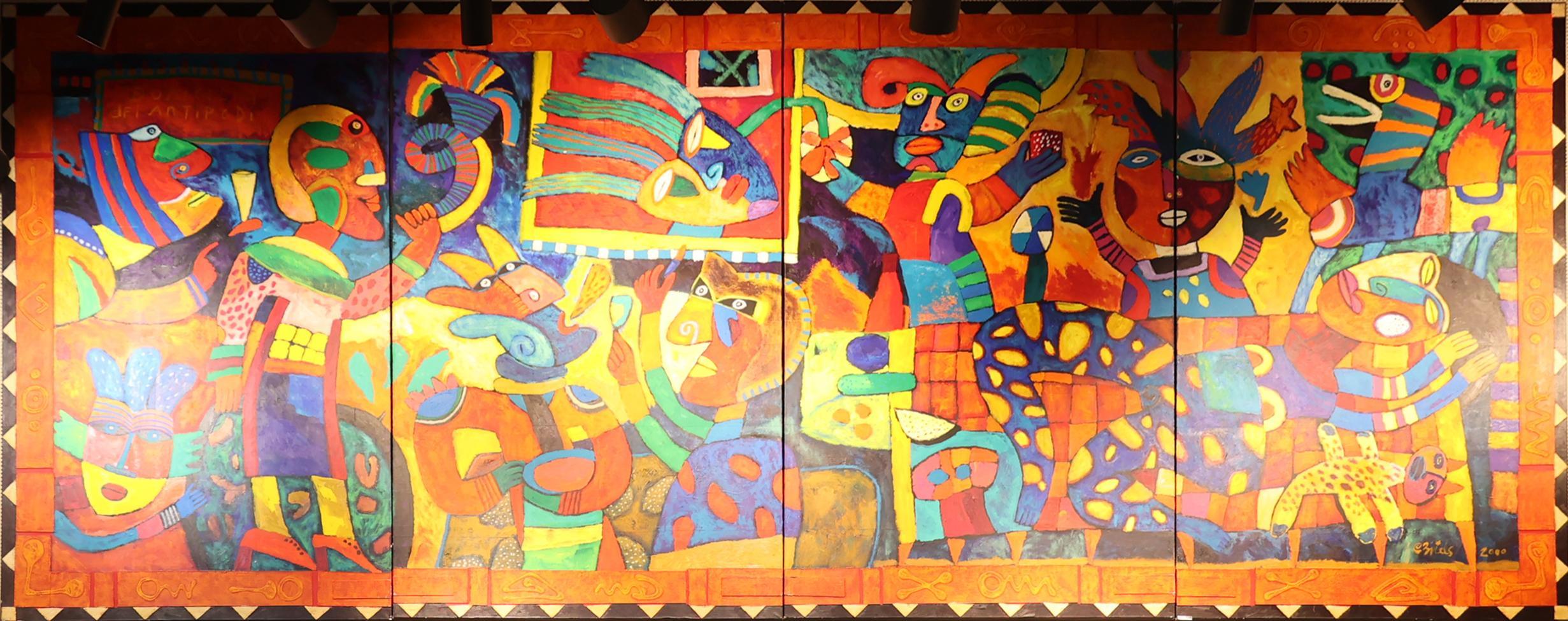 Clemens Briels (1946), Zonder titel, vierluik, acryl en collage op doek, gesigneerd en gedateerd C. Briels 2000 (rechtsonder), 200 x 500 cm. (elk deel 200 x 125 cm.)