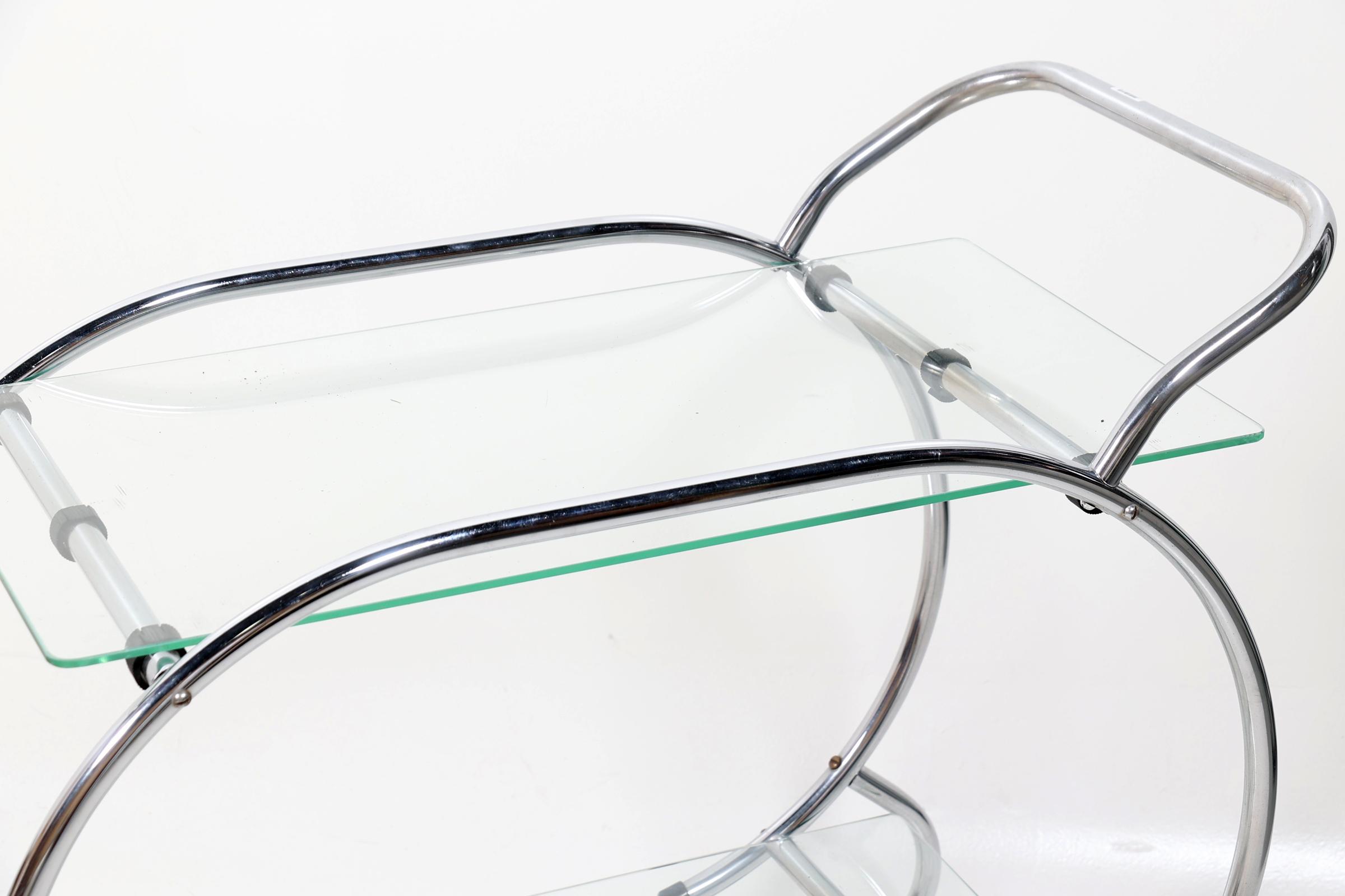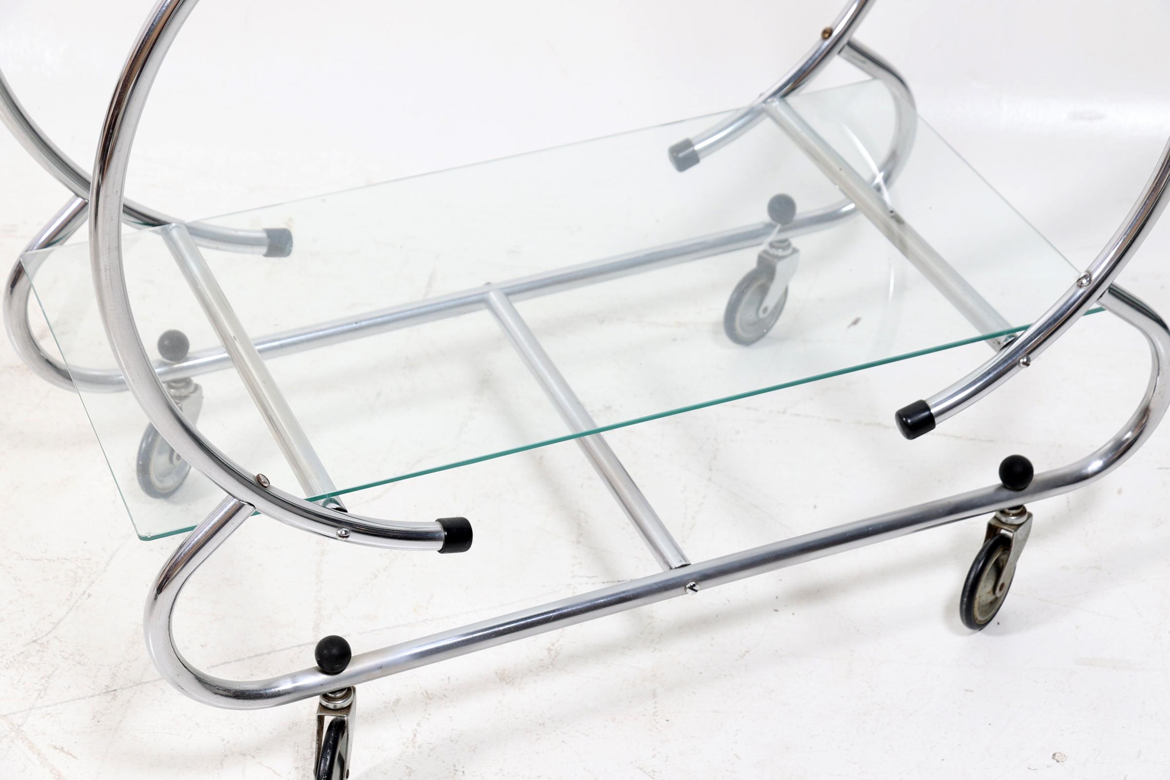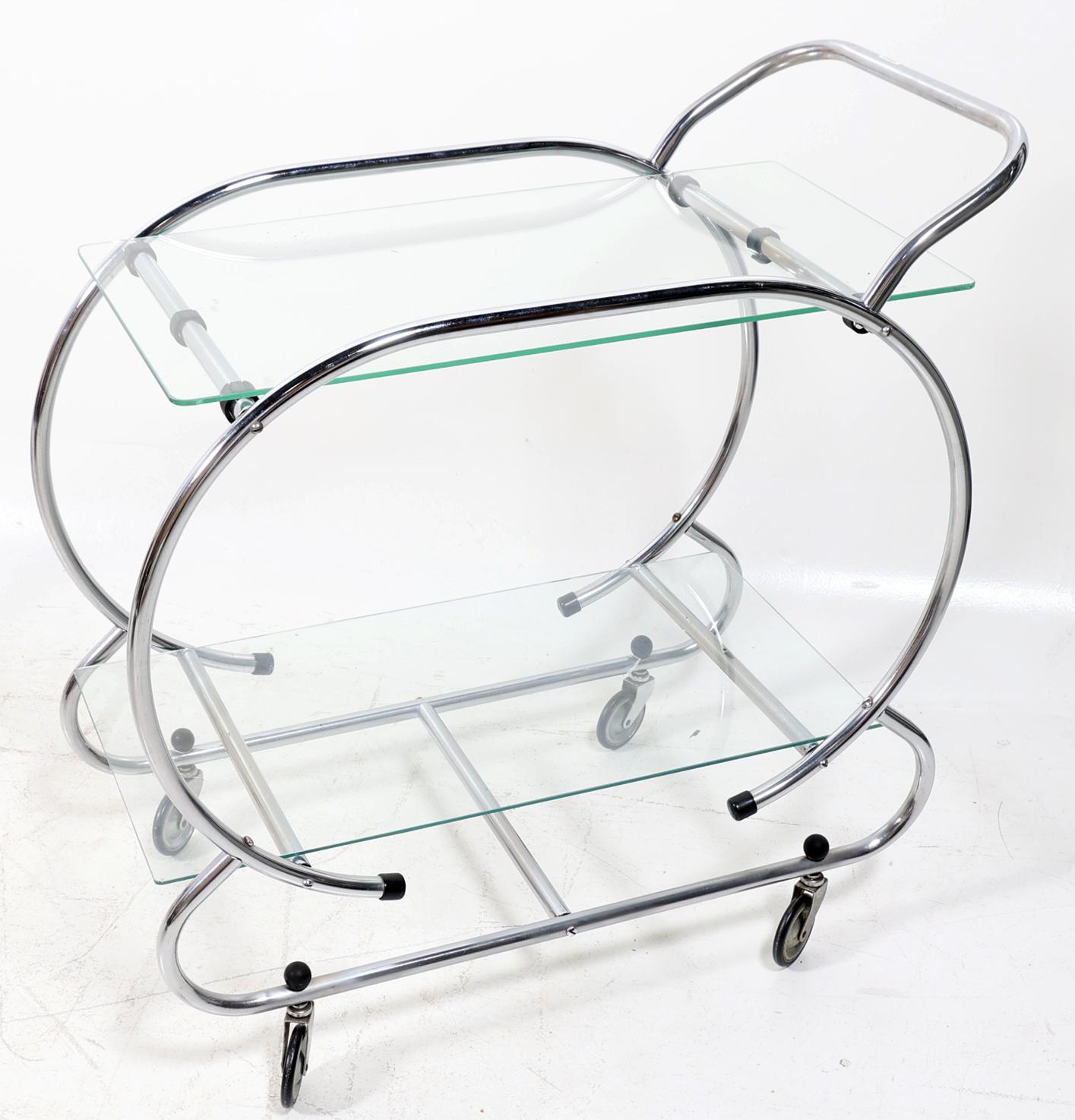 Chroom Art Deco-stijl theewagen, h.79 x L.80 x b.42 cm.