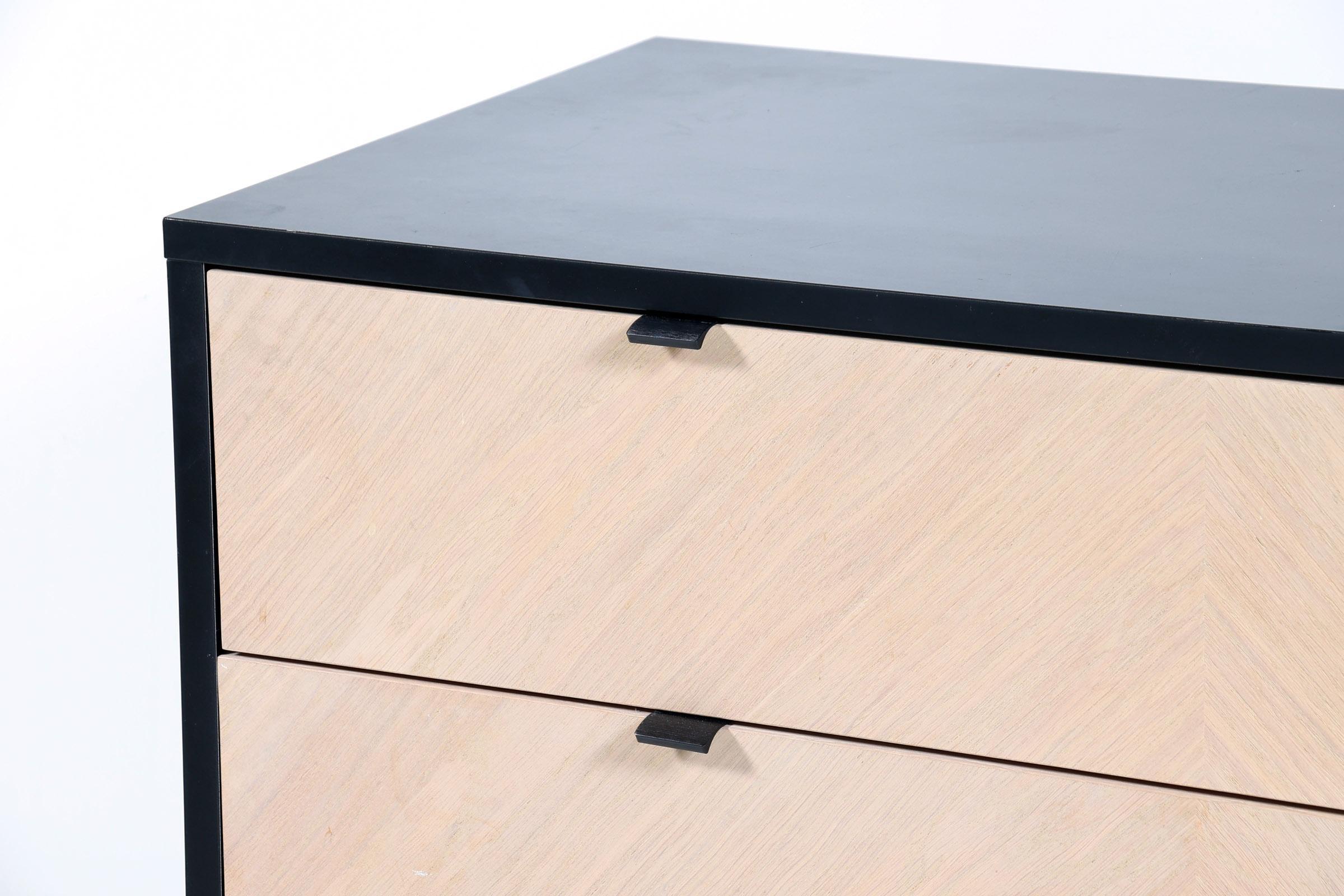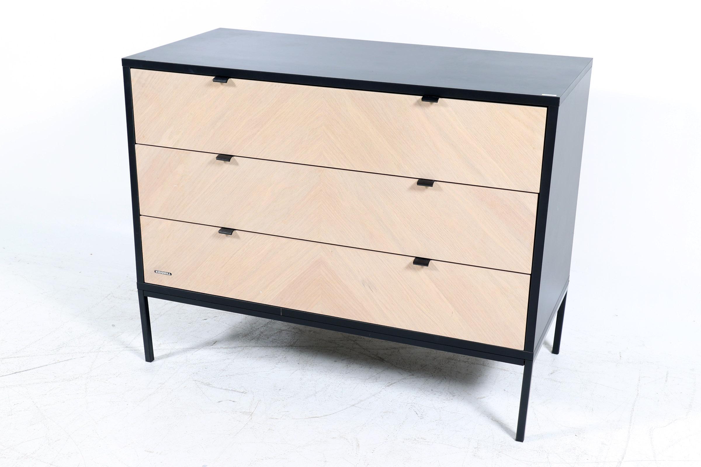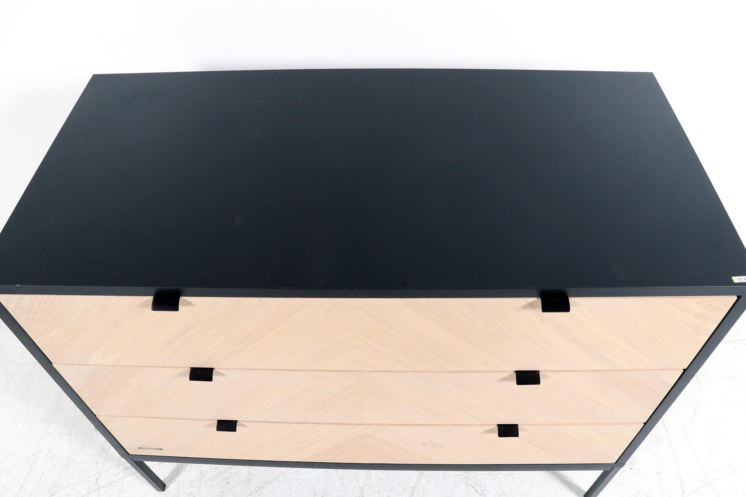 Kidsmill, Moderne zwarte 3-laden commode met visgraatmotief, h.91 x b.115 x d.55 cm.