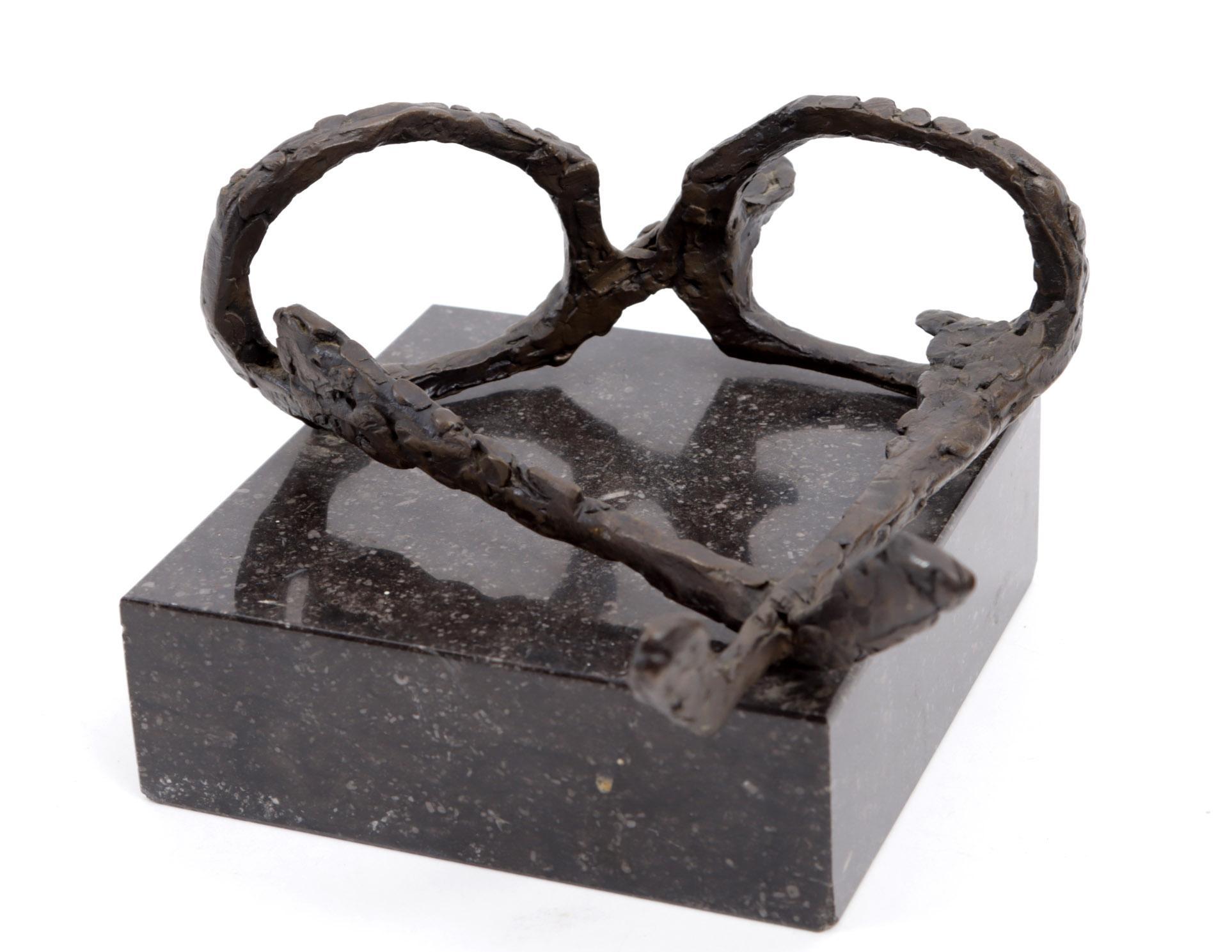 Onb. meester, bronzen sculptuur van een leesbril, h.10,5 x d.21 x b.17 cm.