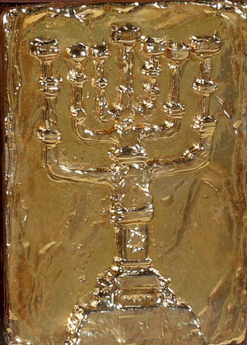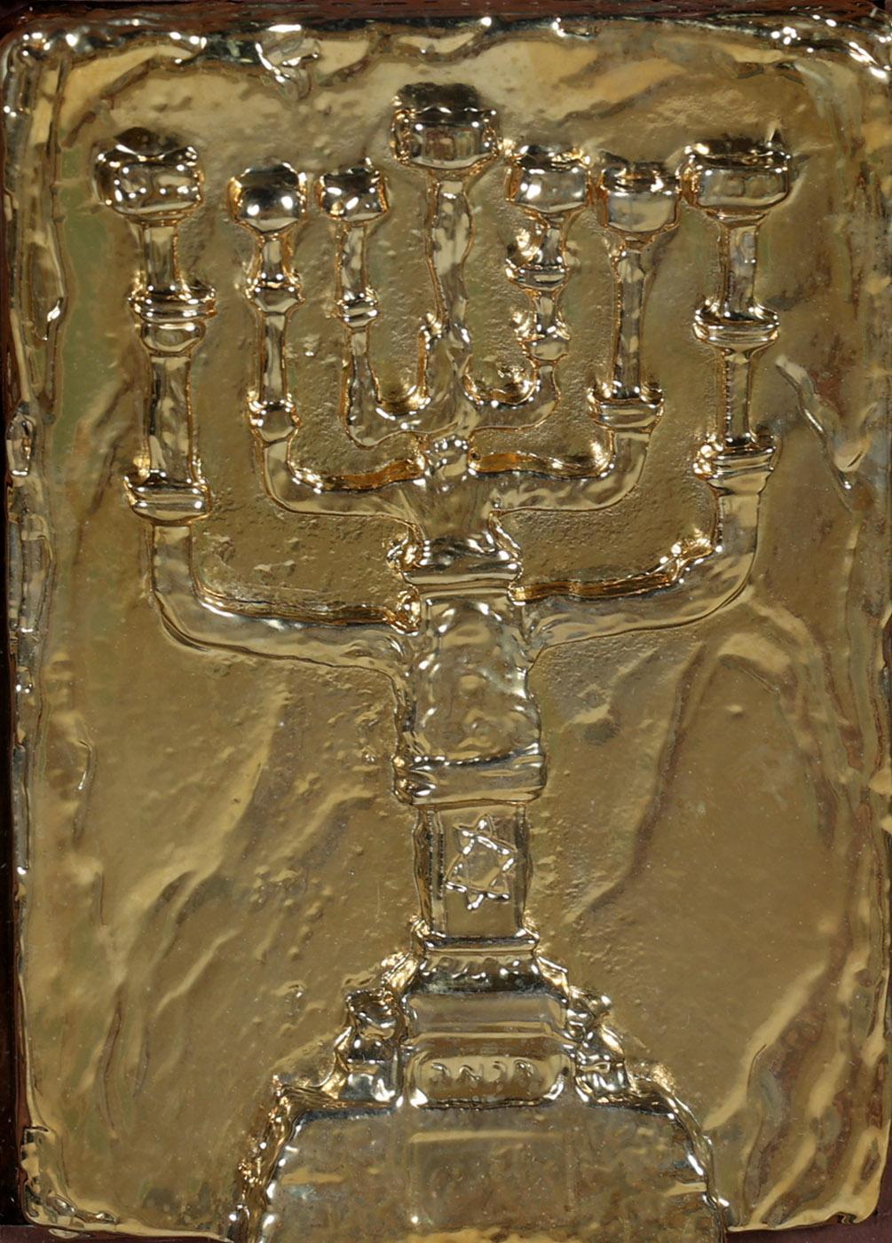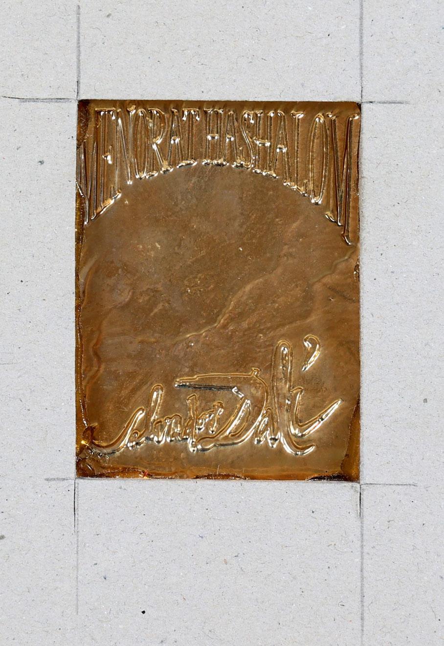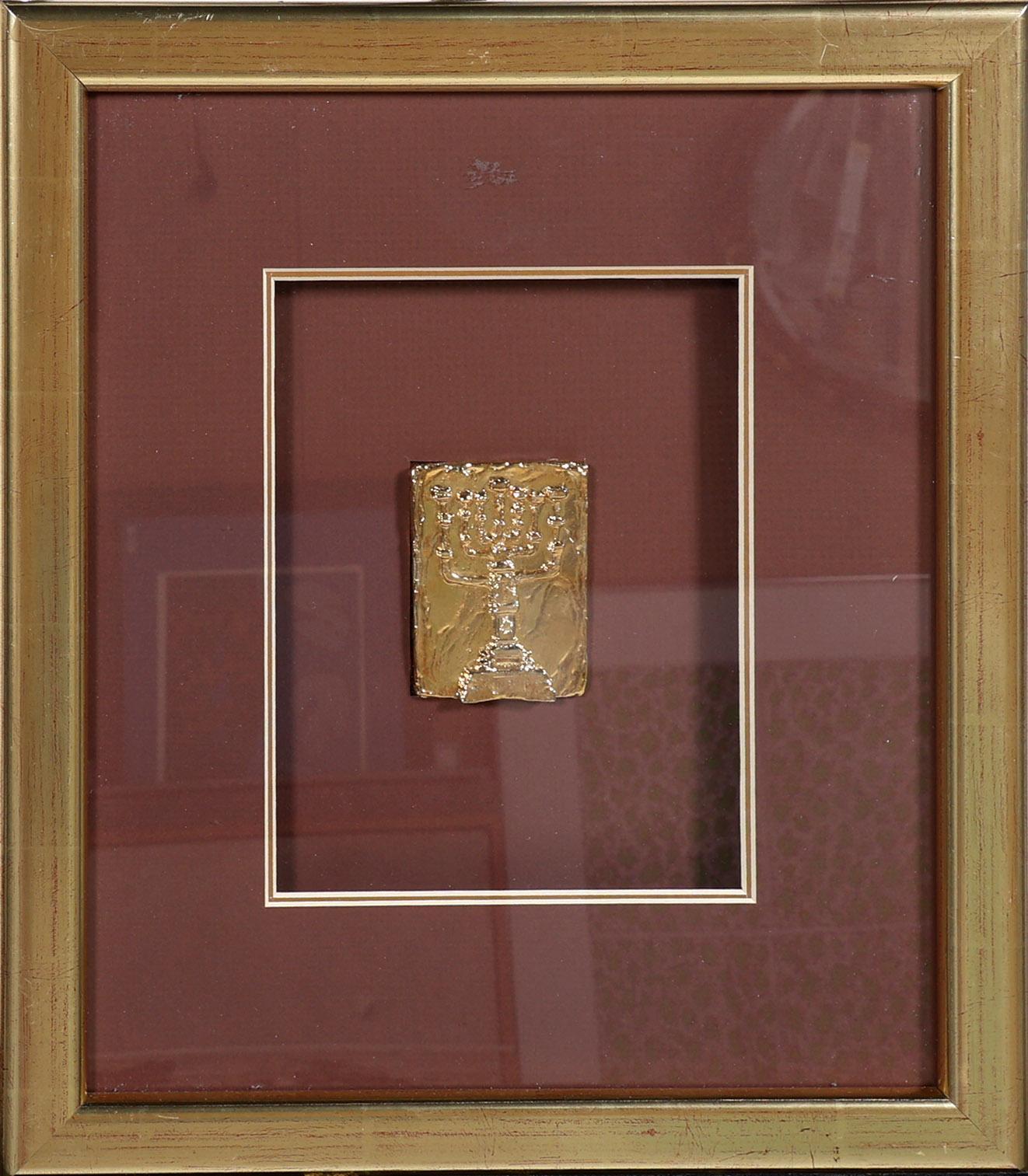 Salvador Dali (1904-1989), Menorah Shalom, vuurverguld bronzen relief, ingelijst achter glas, 8,5 x 6,5 cm.