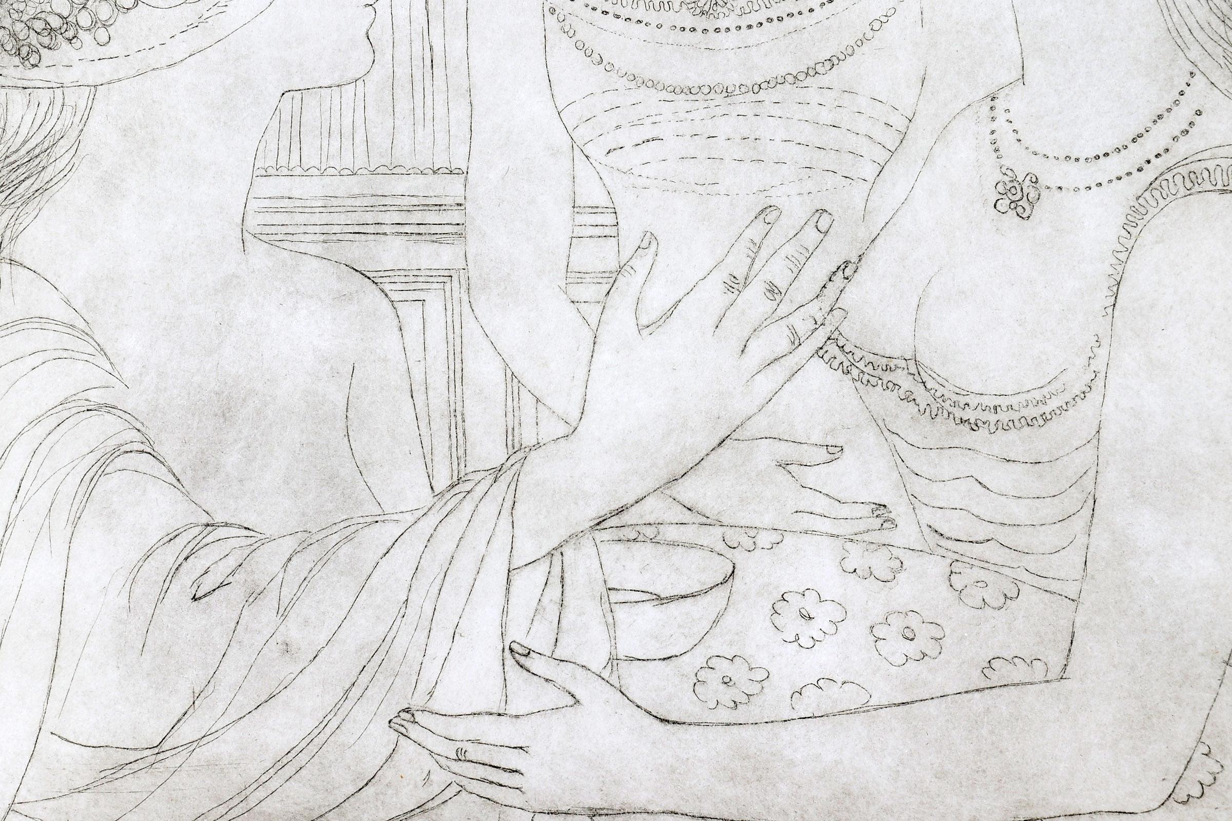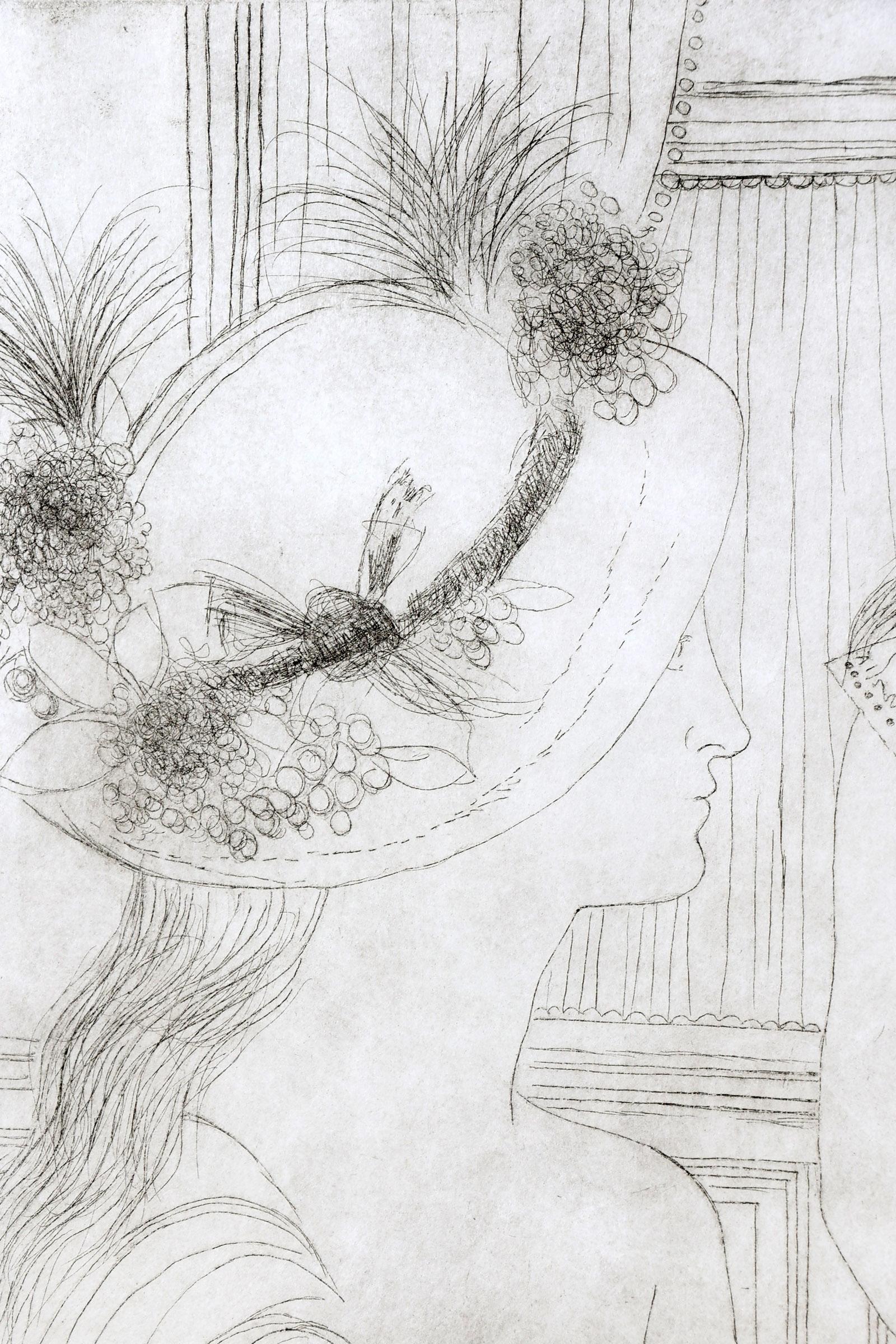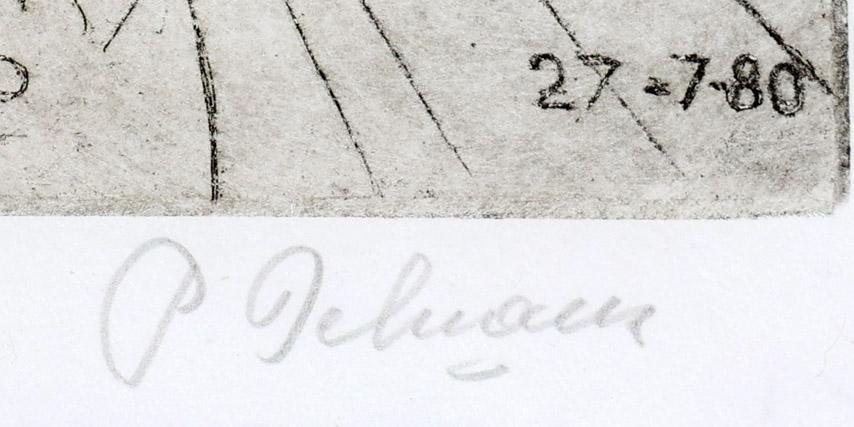 Paul Delvaux (1897-1994), La visiteuse, handgesigneerde vernis mou ets op Japans papier, gedateerd 1980, genummerd 62 / 75, 54,5 x 63,5 cm.