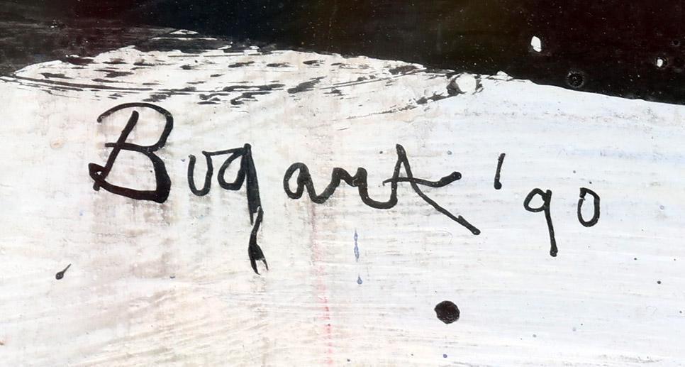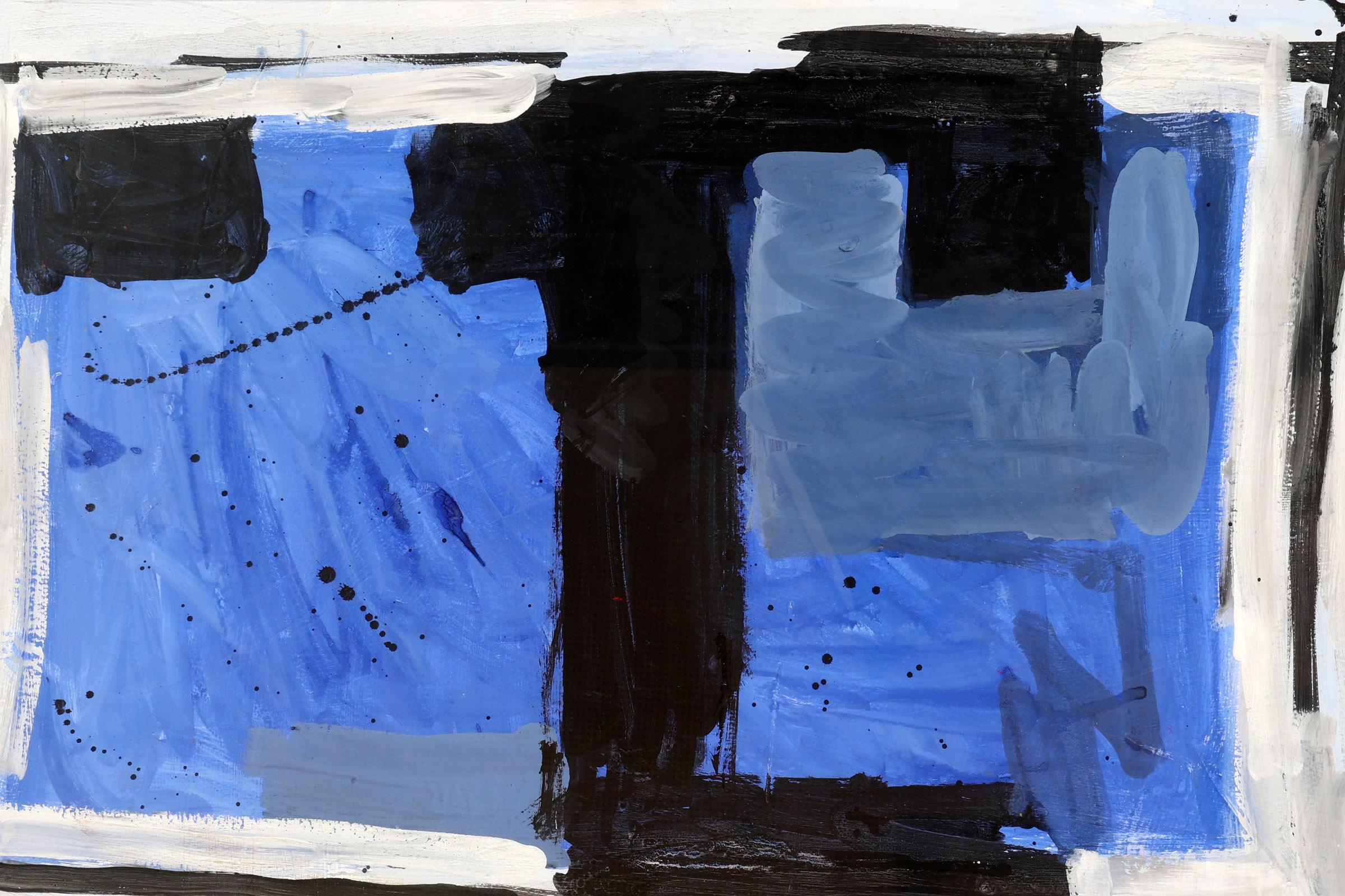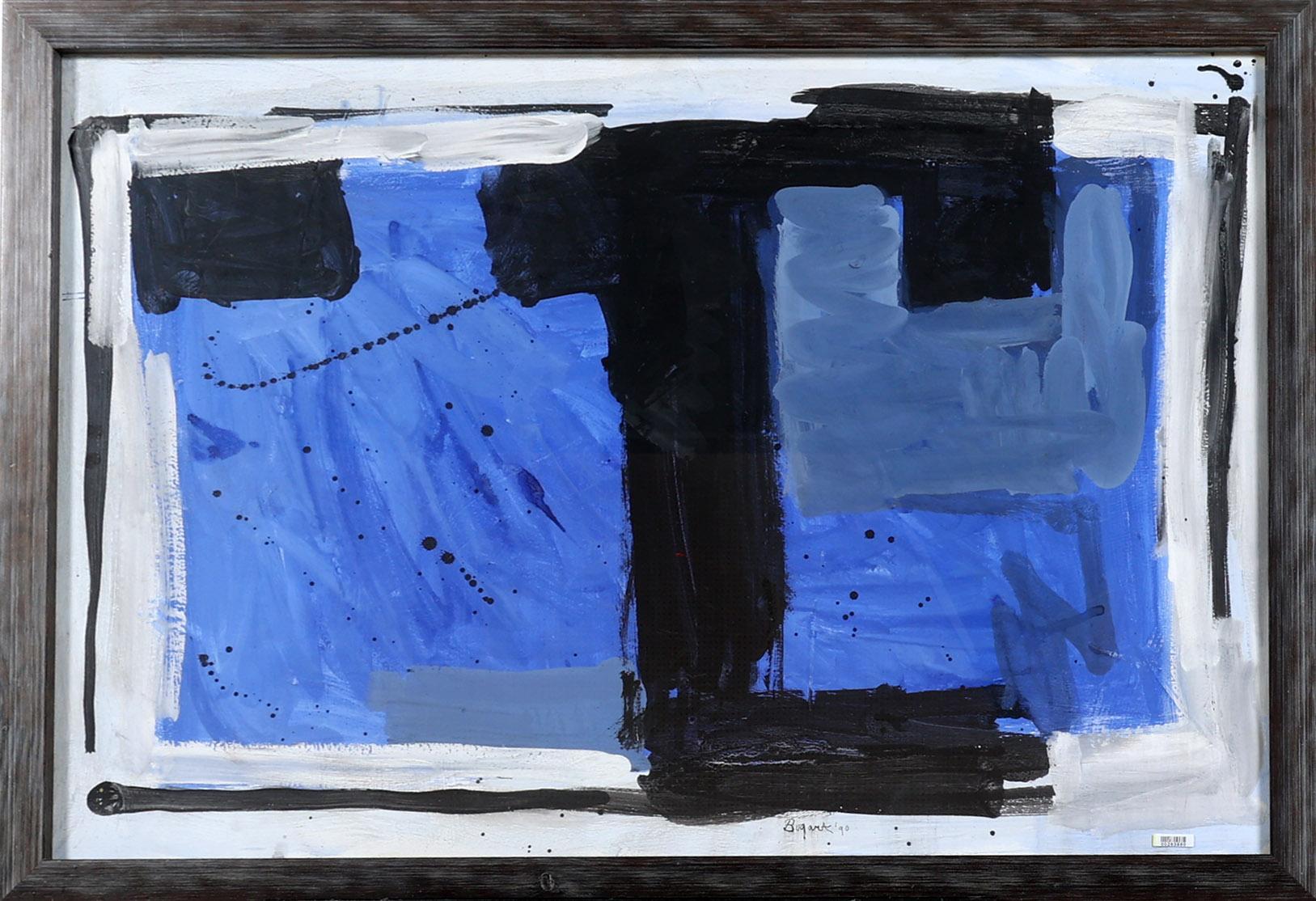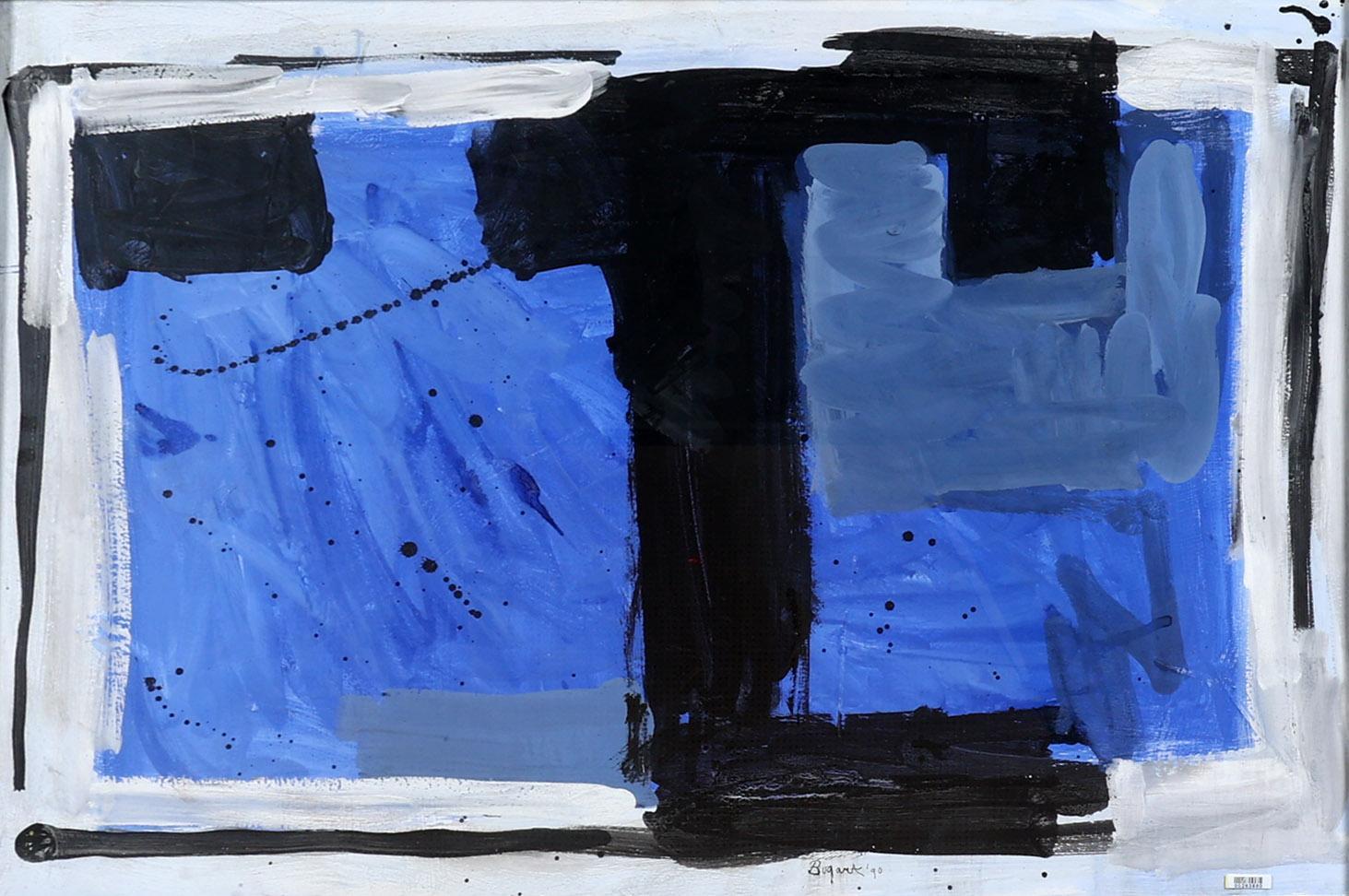 Bram Bogart (1921-2012), Zonder titel, compositie in het blauw, gouache, ingelijst achter glas, gedateerd '90, 65,5 x 98 cm.