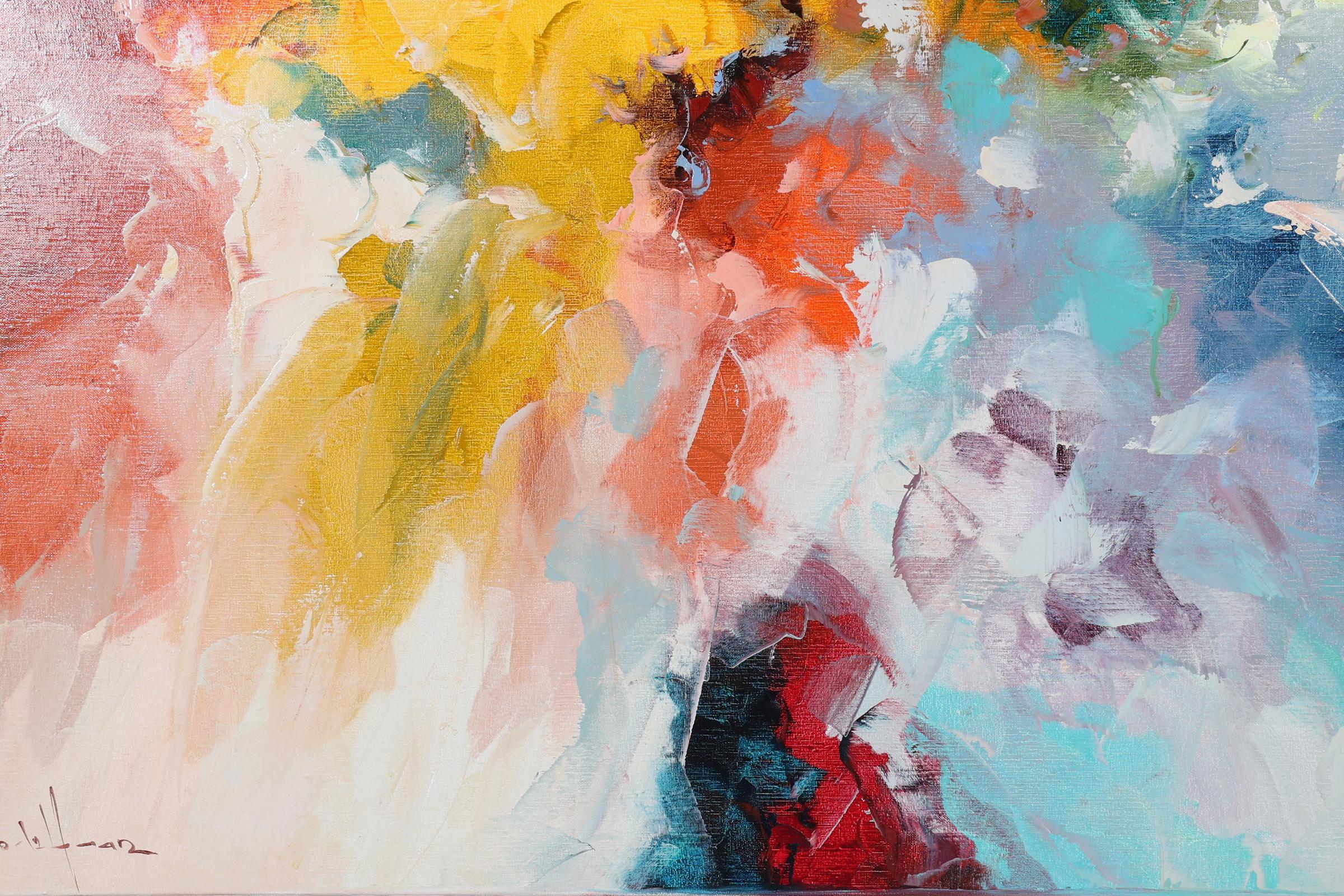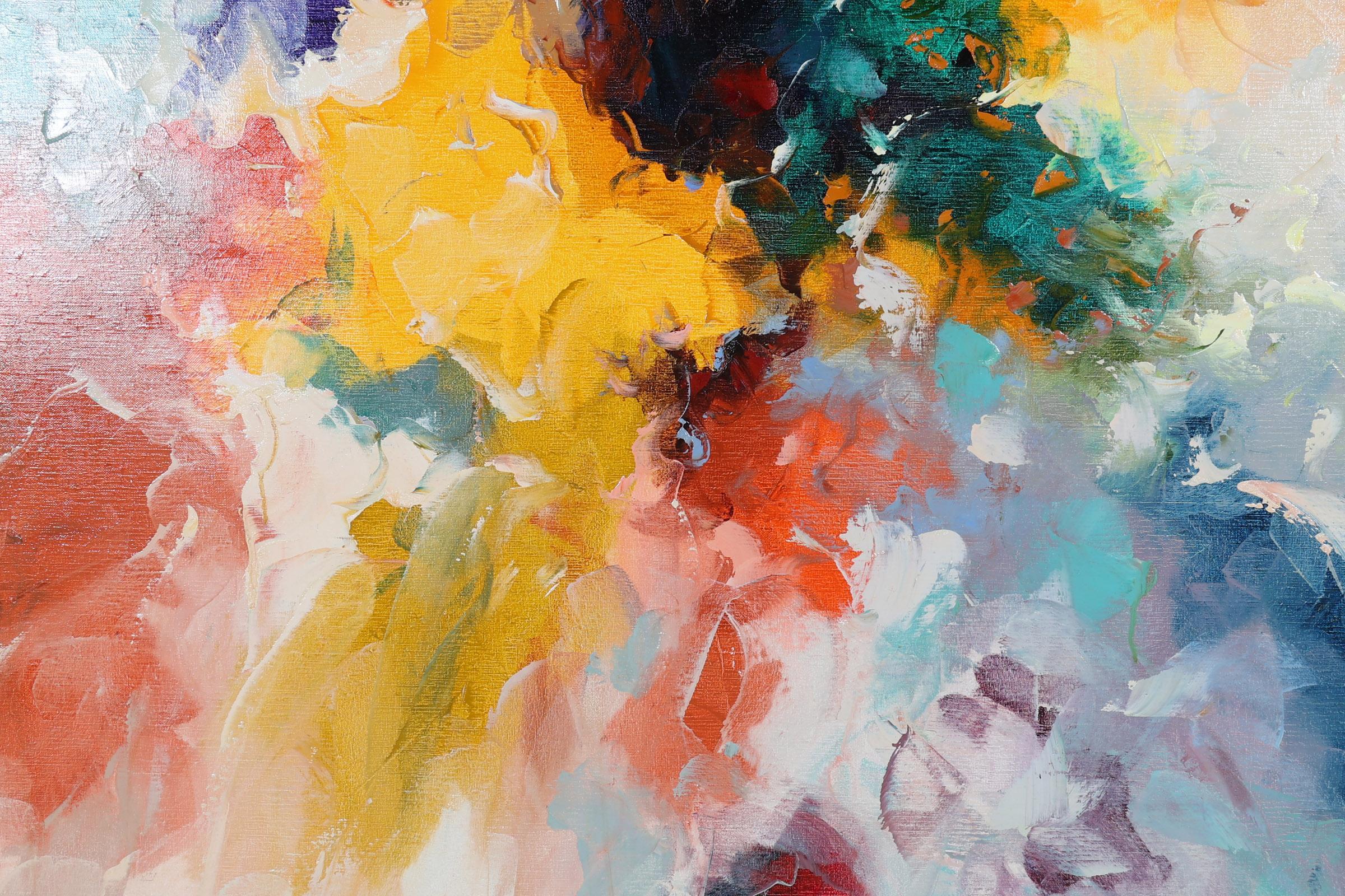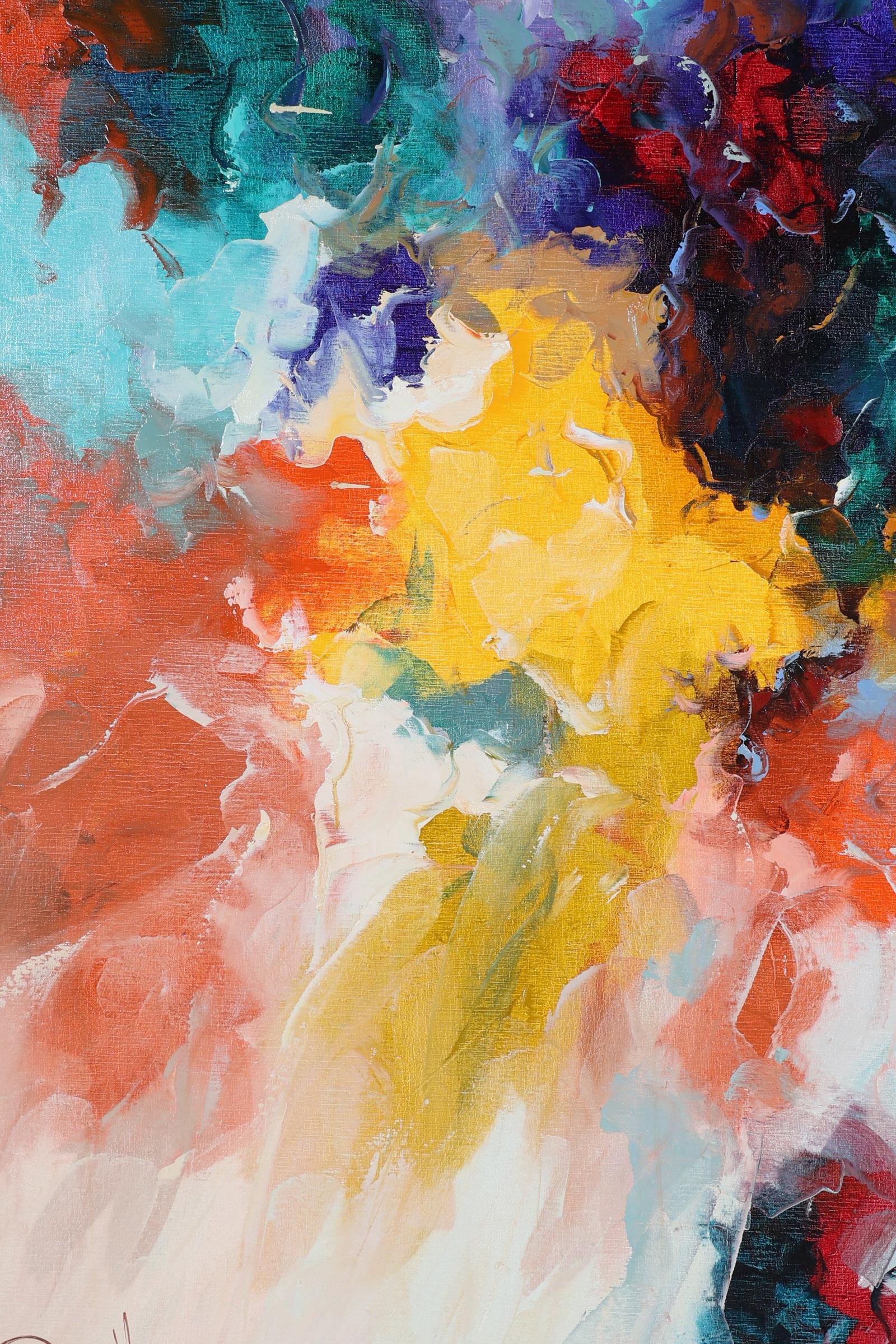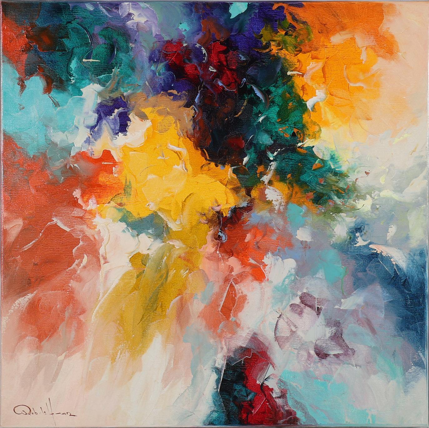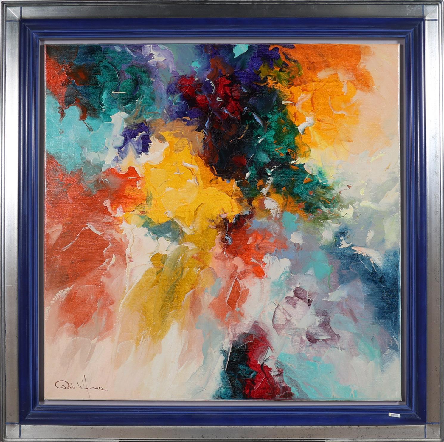 Rob de Haan (1943), Abstract bloemstilleven, olieverf op doek, 100 x 100 cm.