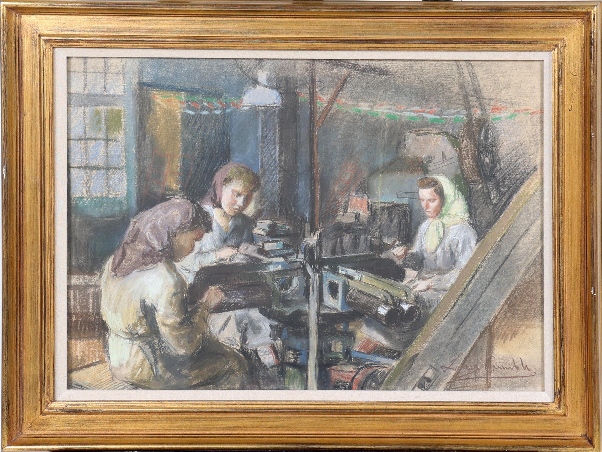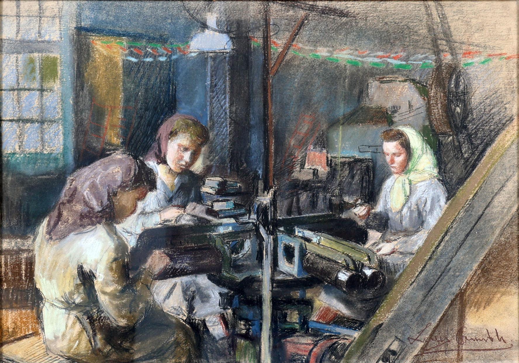 Ond.gesign., Fabrieksarbeid, gemengde techniek, 43 x 60 cm.