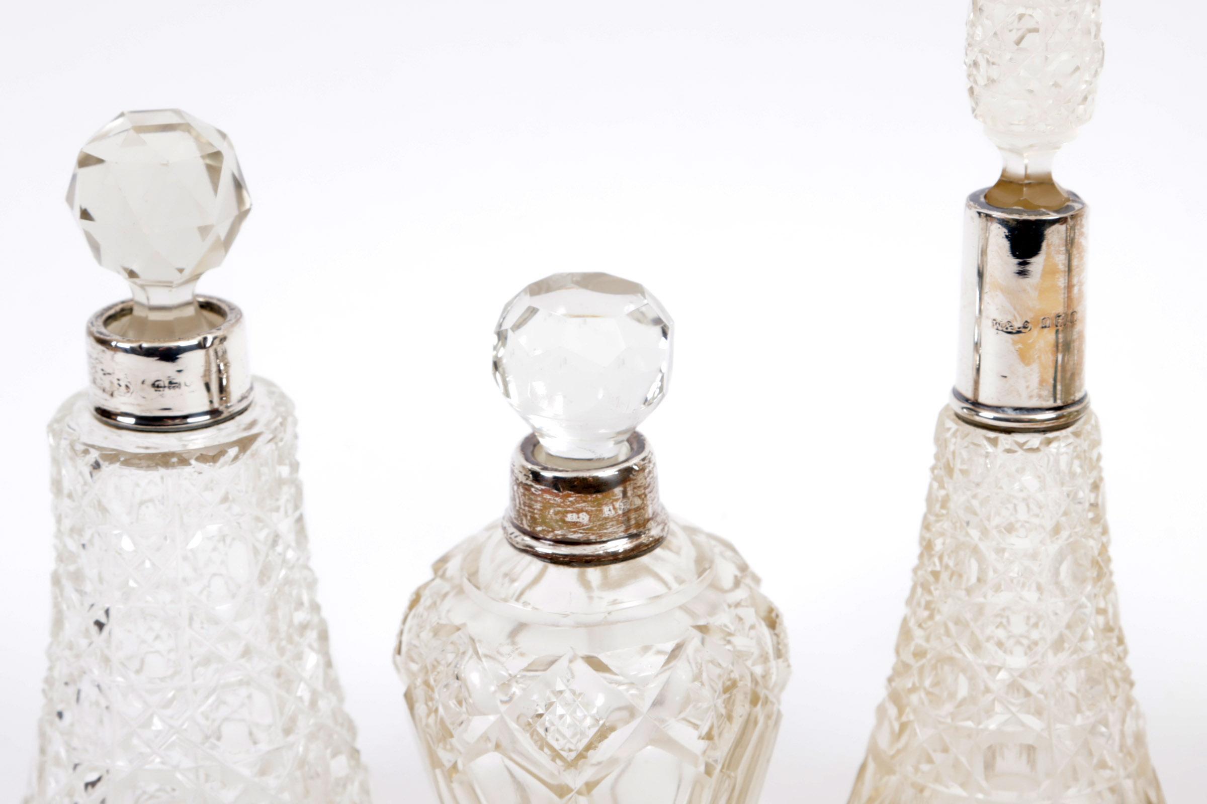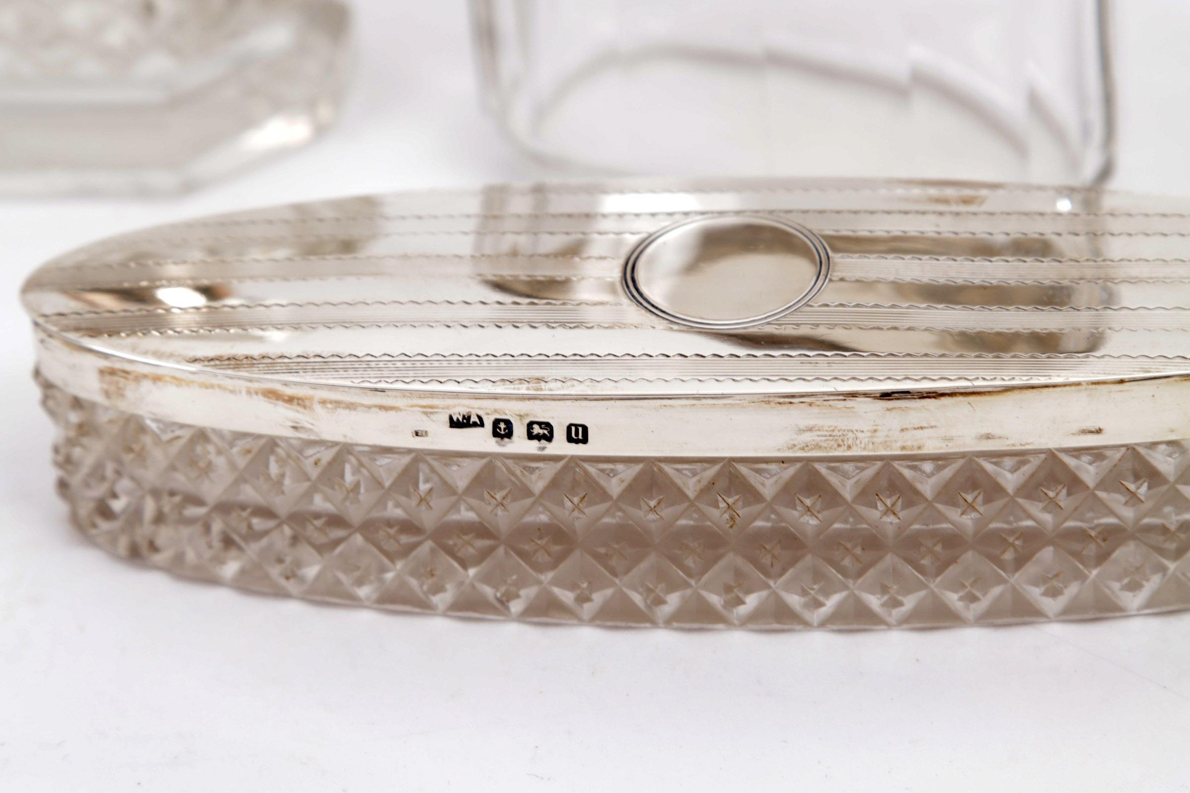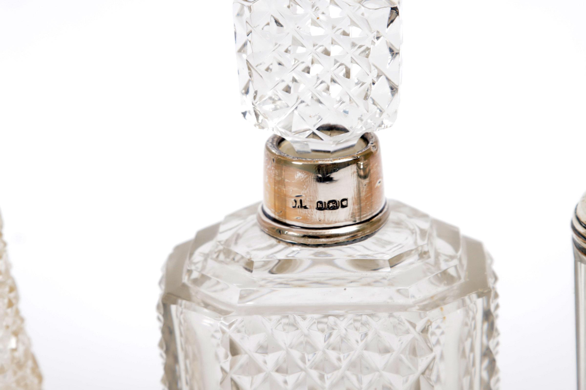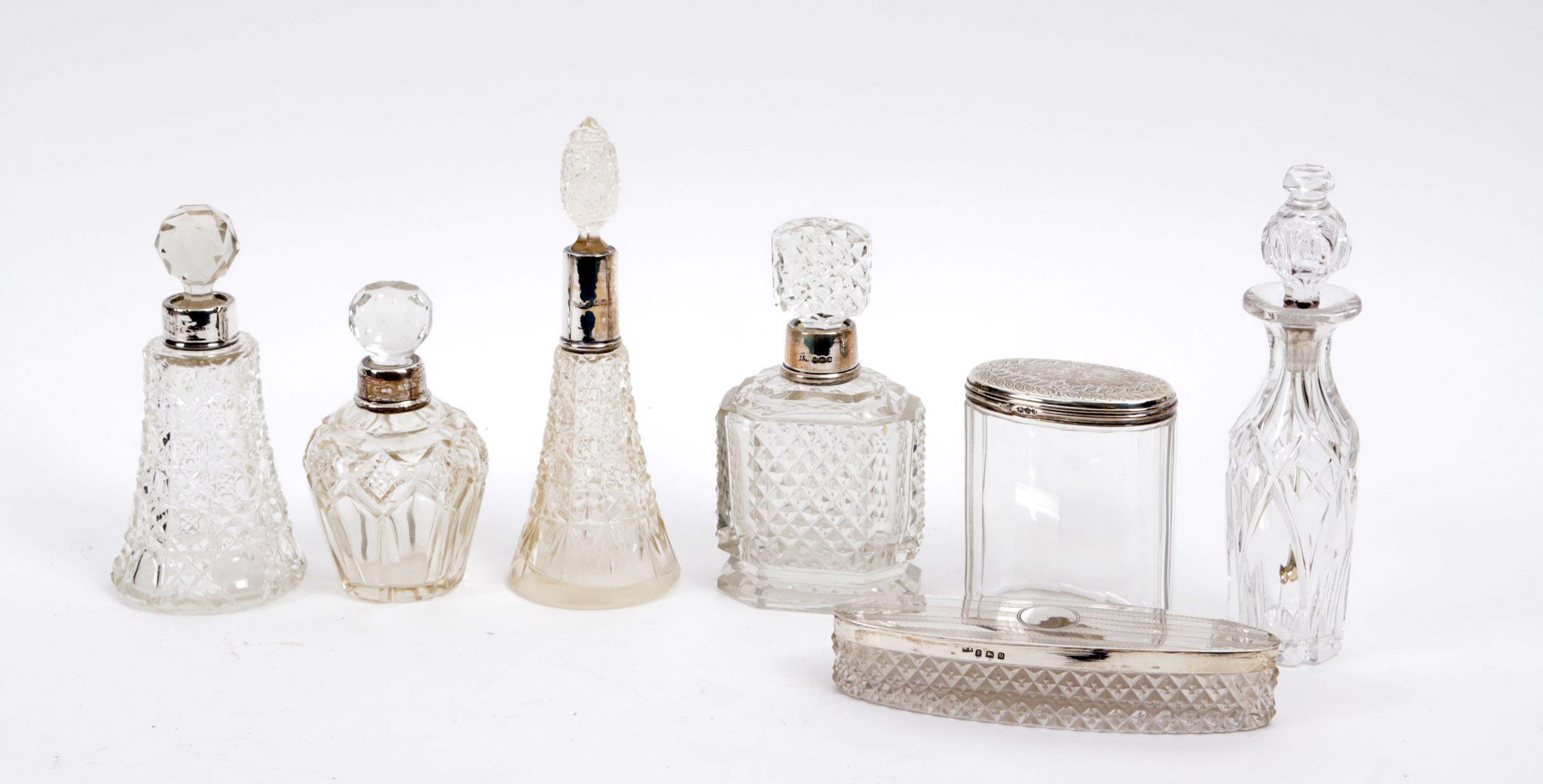 Koop van 5 kristallen flacons met zilveren monturen en 2 kristallen dekselpotjes
