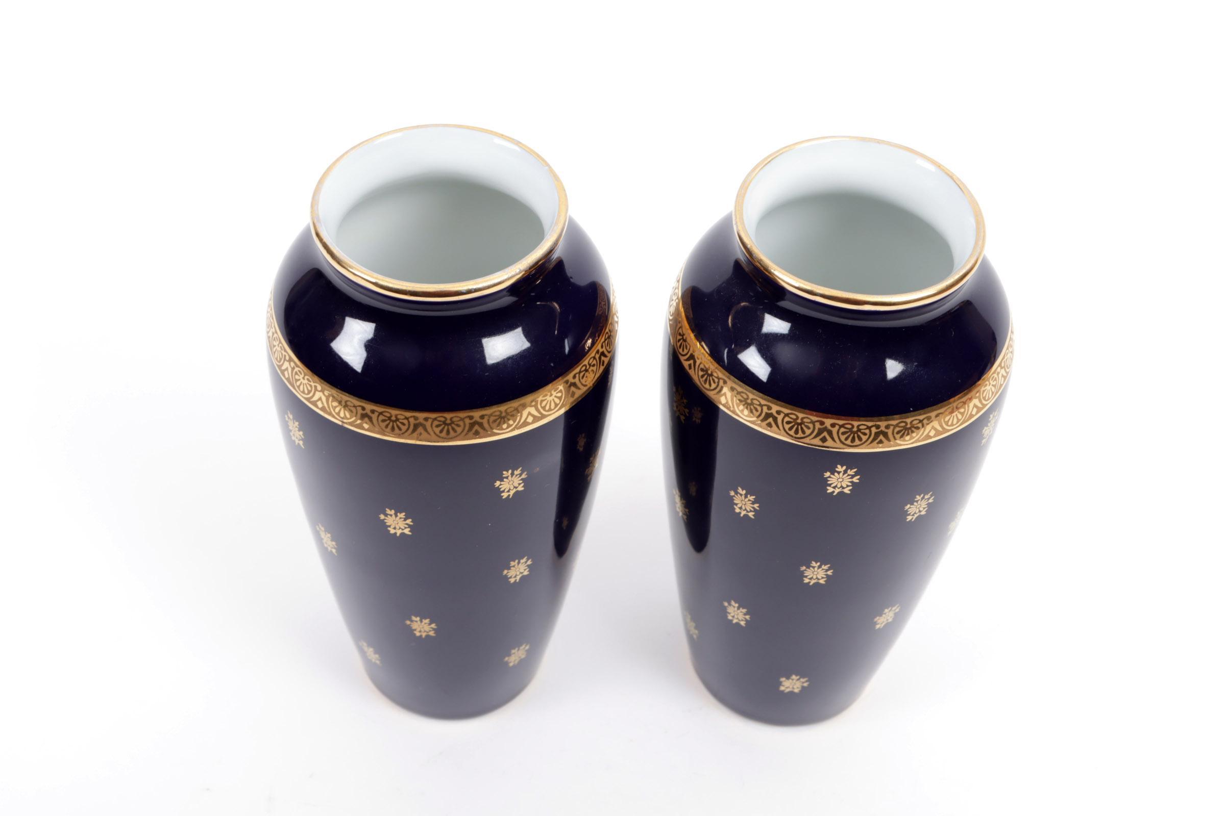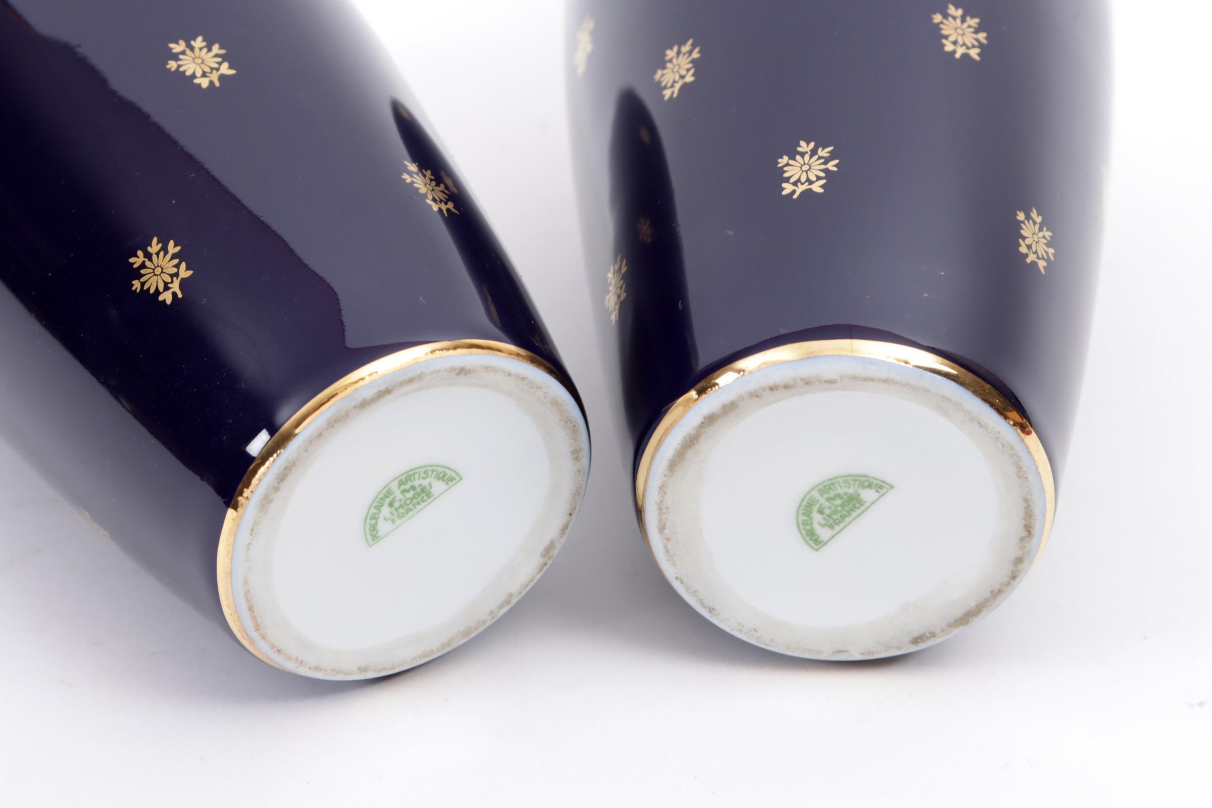 2 Blauw/goud gedecoreerde Limoge porseleinen vazen, h.21 cm.
