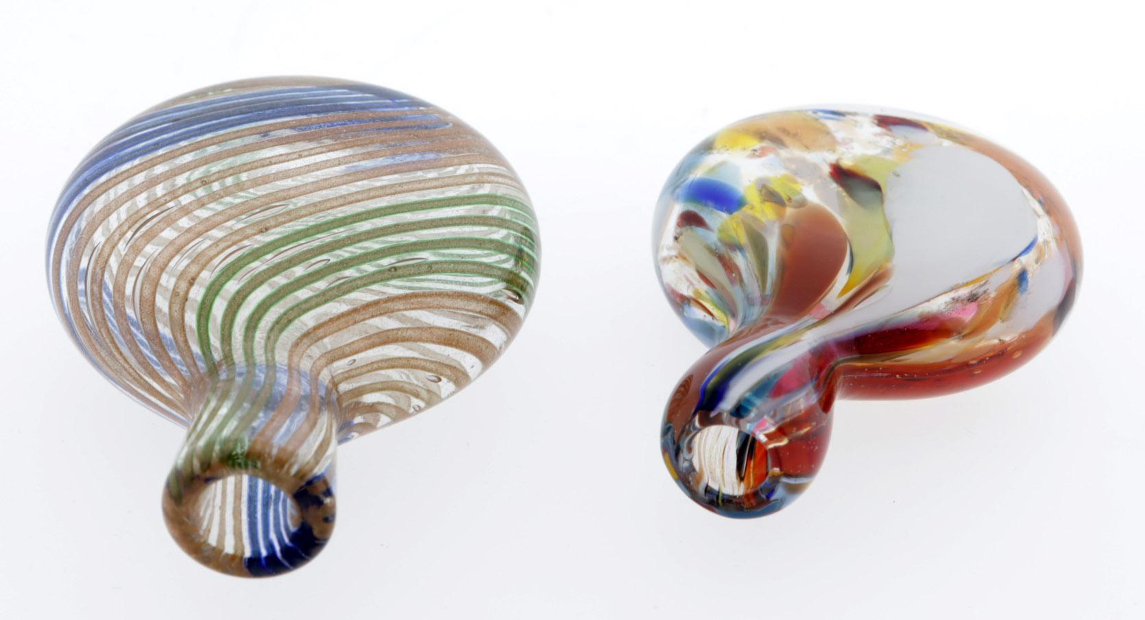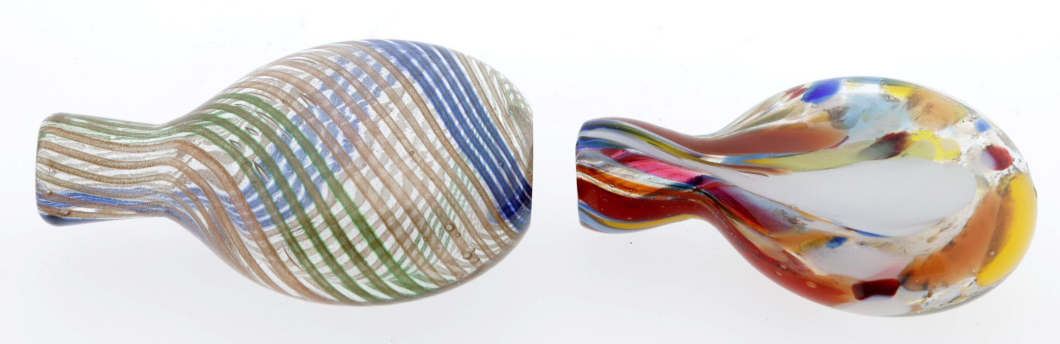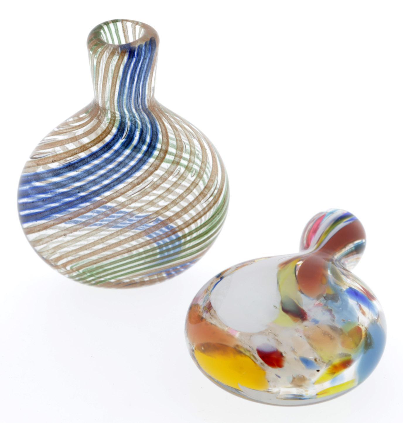 2 Kristallen snuif/tabaksflessen, Duitsland, 19e eeuw en goud/blauw fles, ca.1930, h.11 en h.9,5 cm.