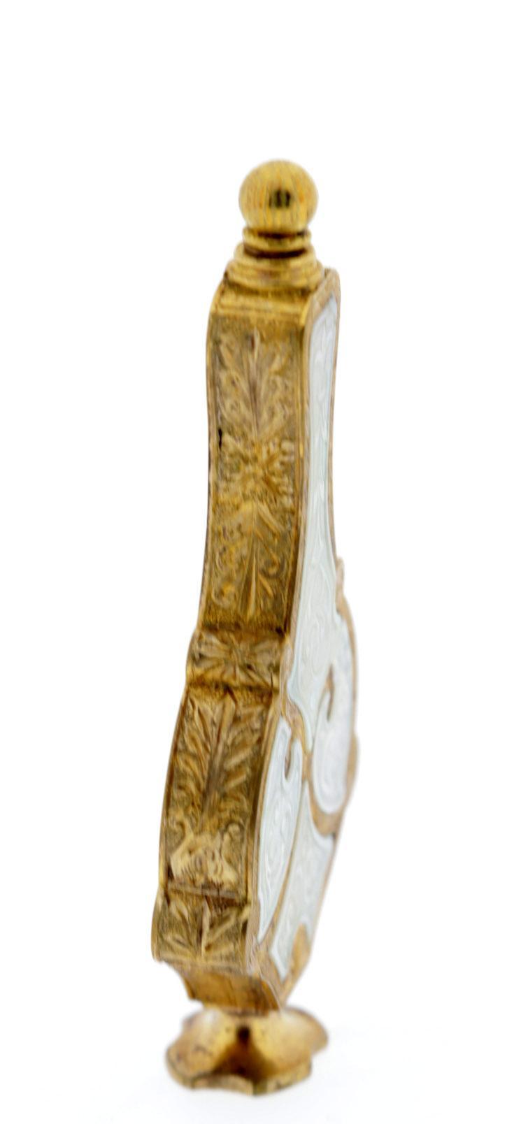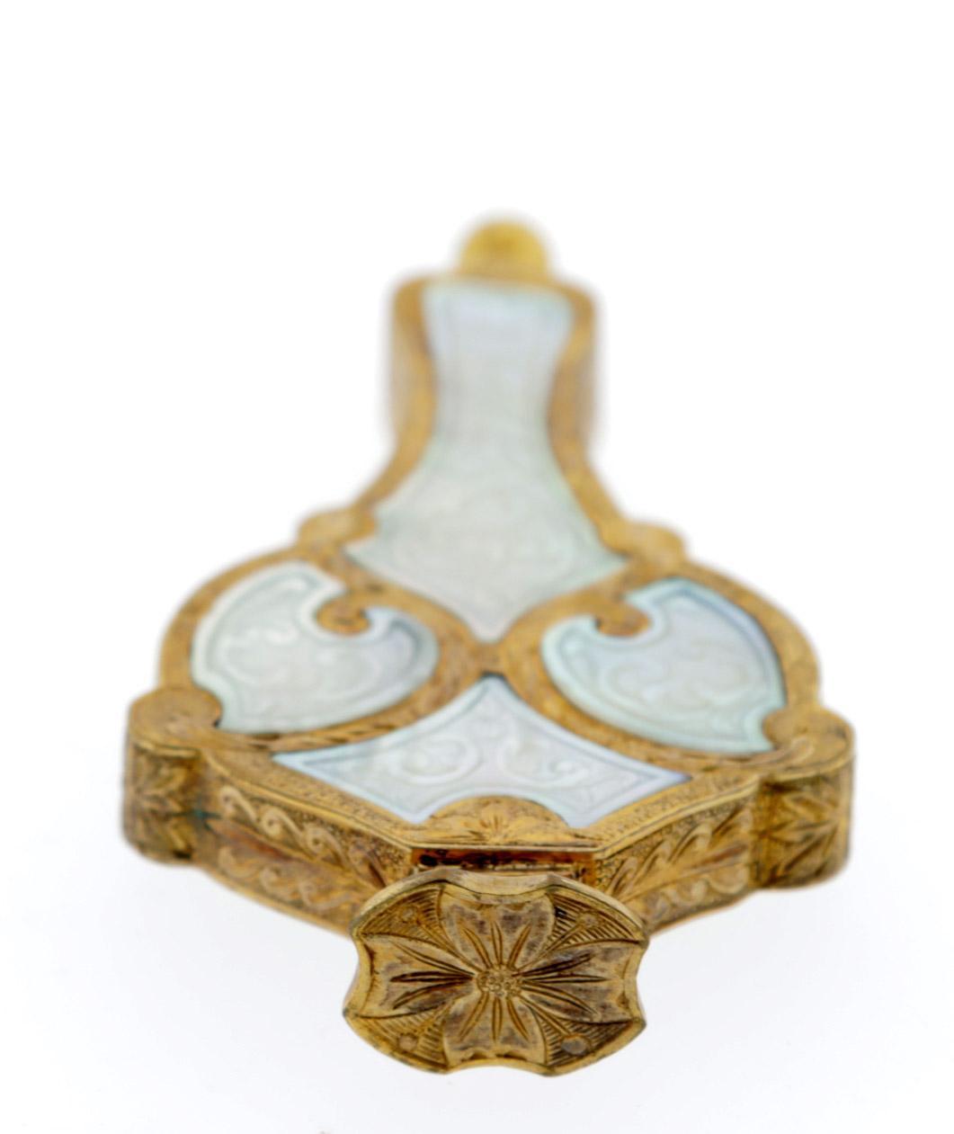 Verguld zilveren met parelmoer beklede odeurflacon met lakzegelstempel, Frankrijk, 18e eeuw, h.8,5 cm.