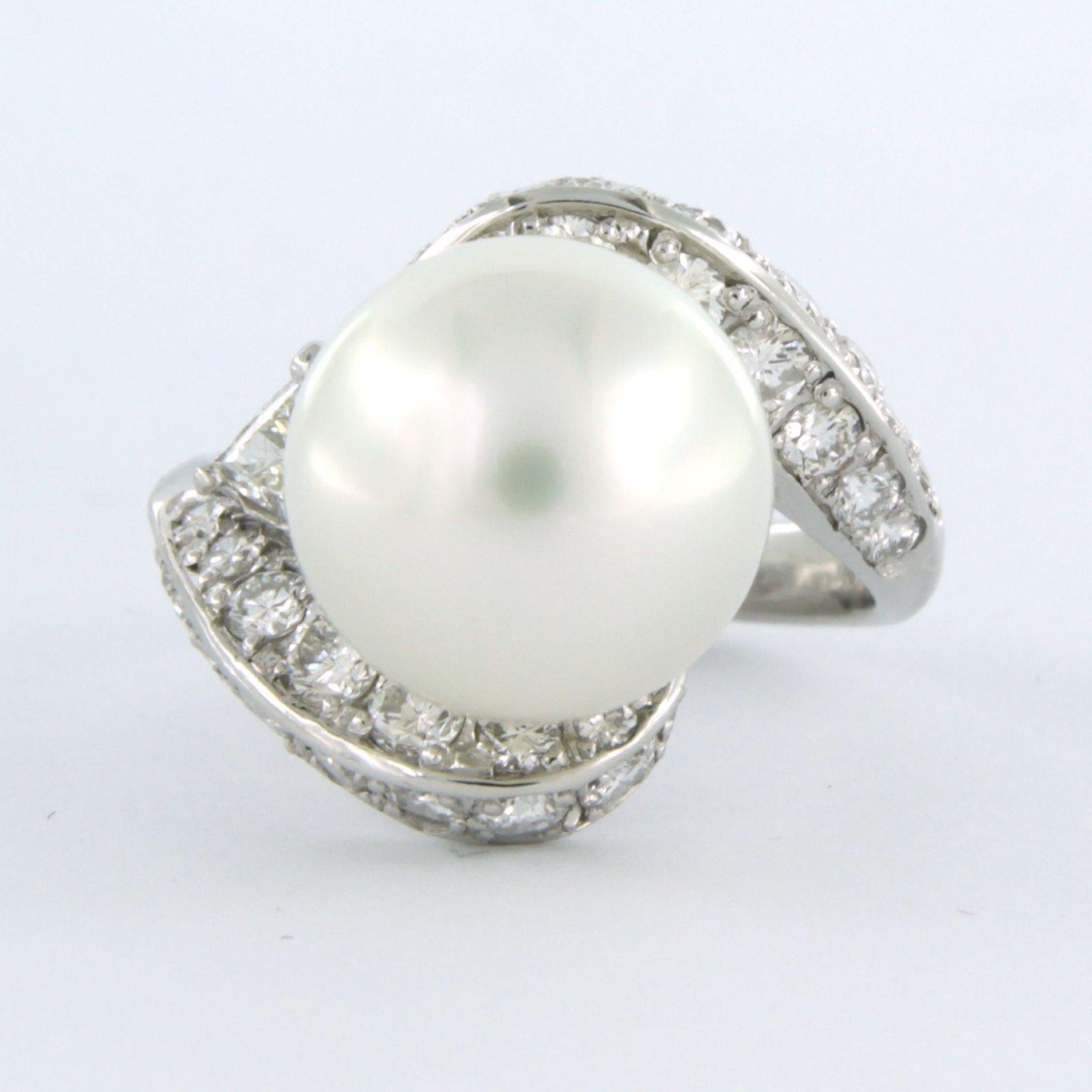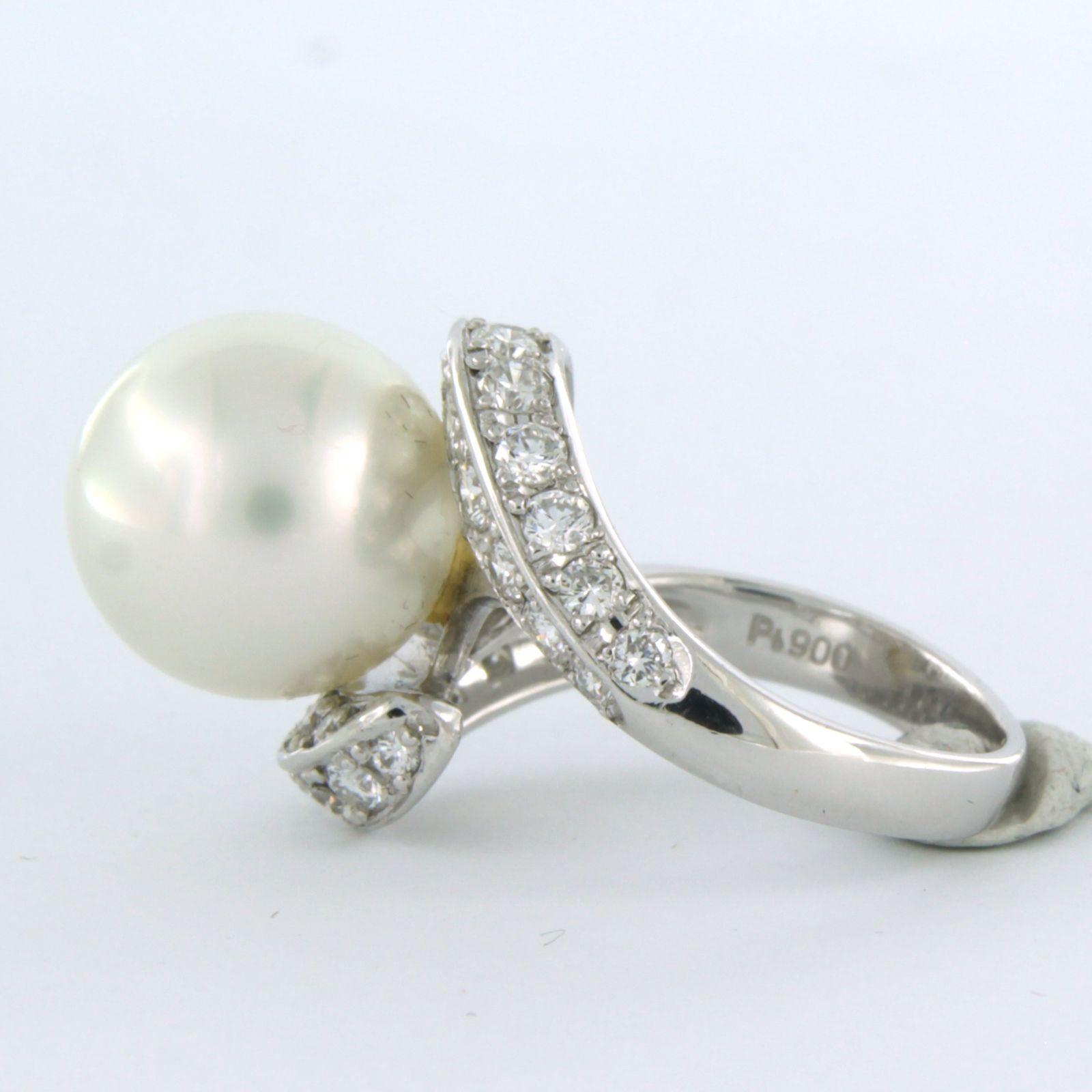 Platina ring bezet met parel en triangel en briljant geslepen diamanten tot. 1.41 ct. - ringmaat 16.25(51)