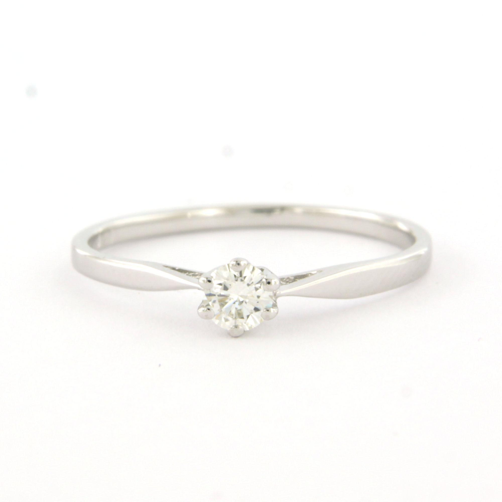18 Kt. witgouden solitair ring bezet met briljant geslepen diamant tot. 0.15 ct. - ringmaat 17(53)