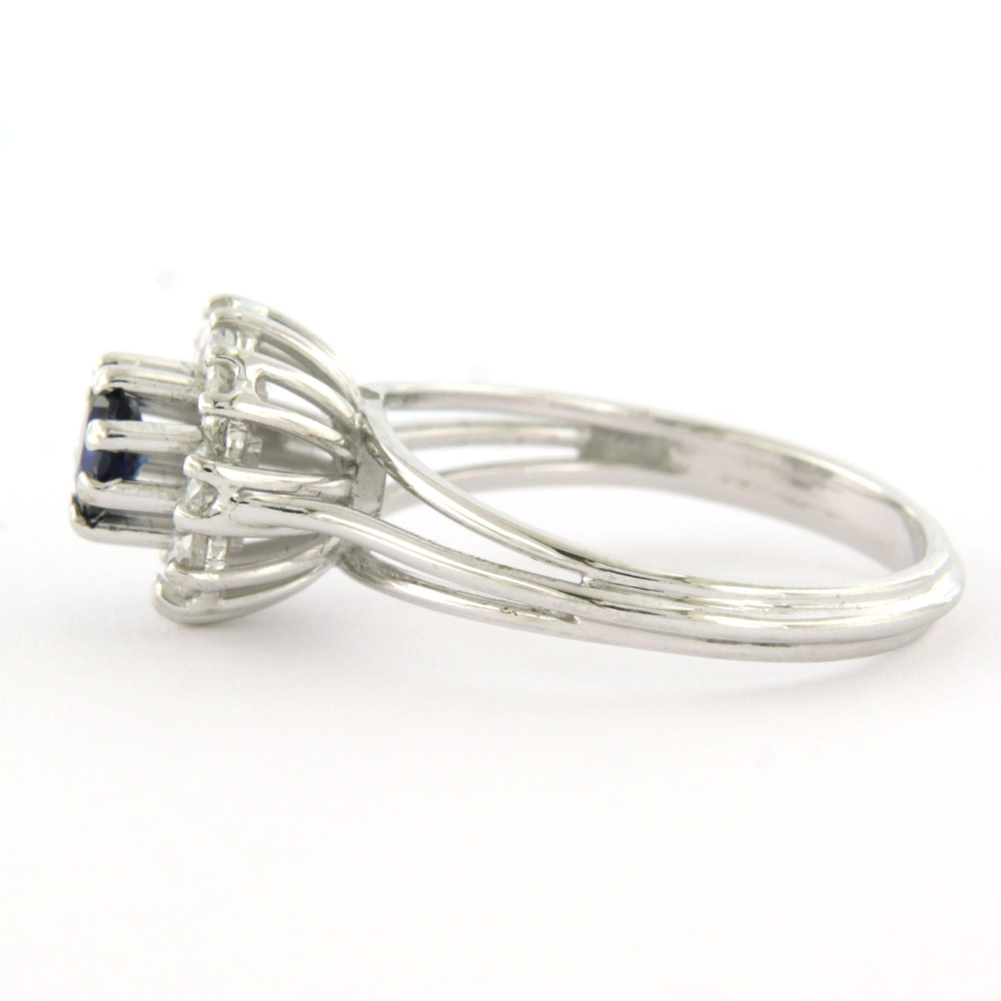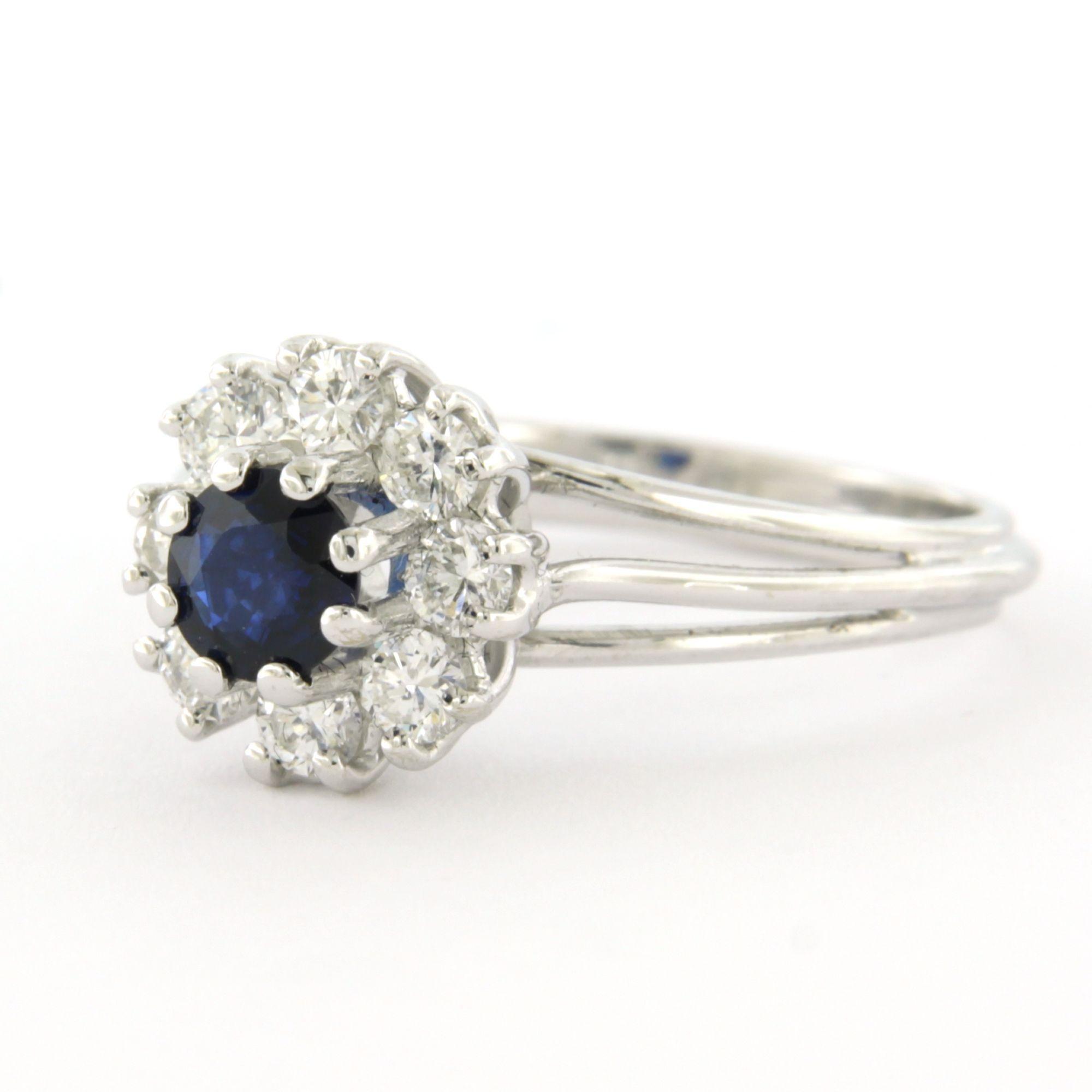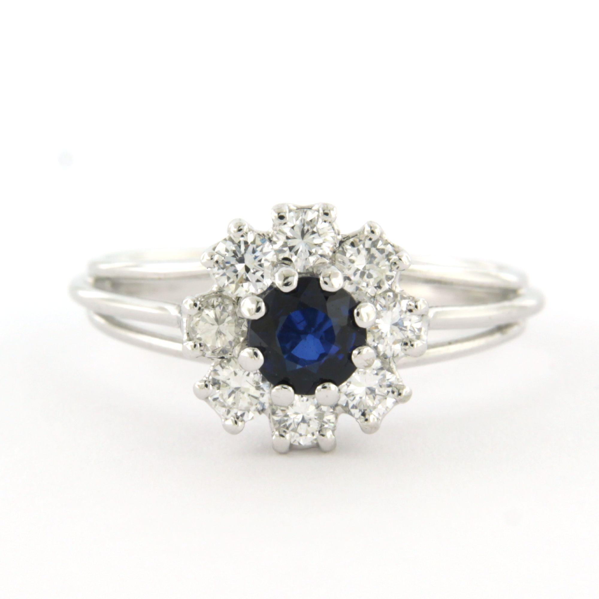 18 Kt. witgouden ring bezet met saffier en briljant geslepen diamant tot. 0.50 ct. - ringmaat 17.5(55)