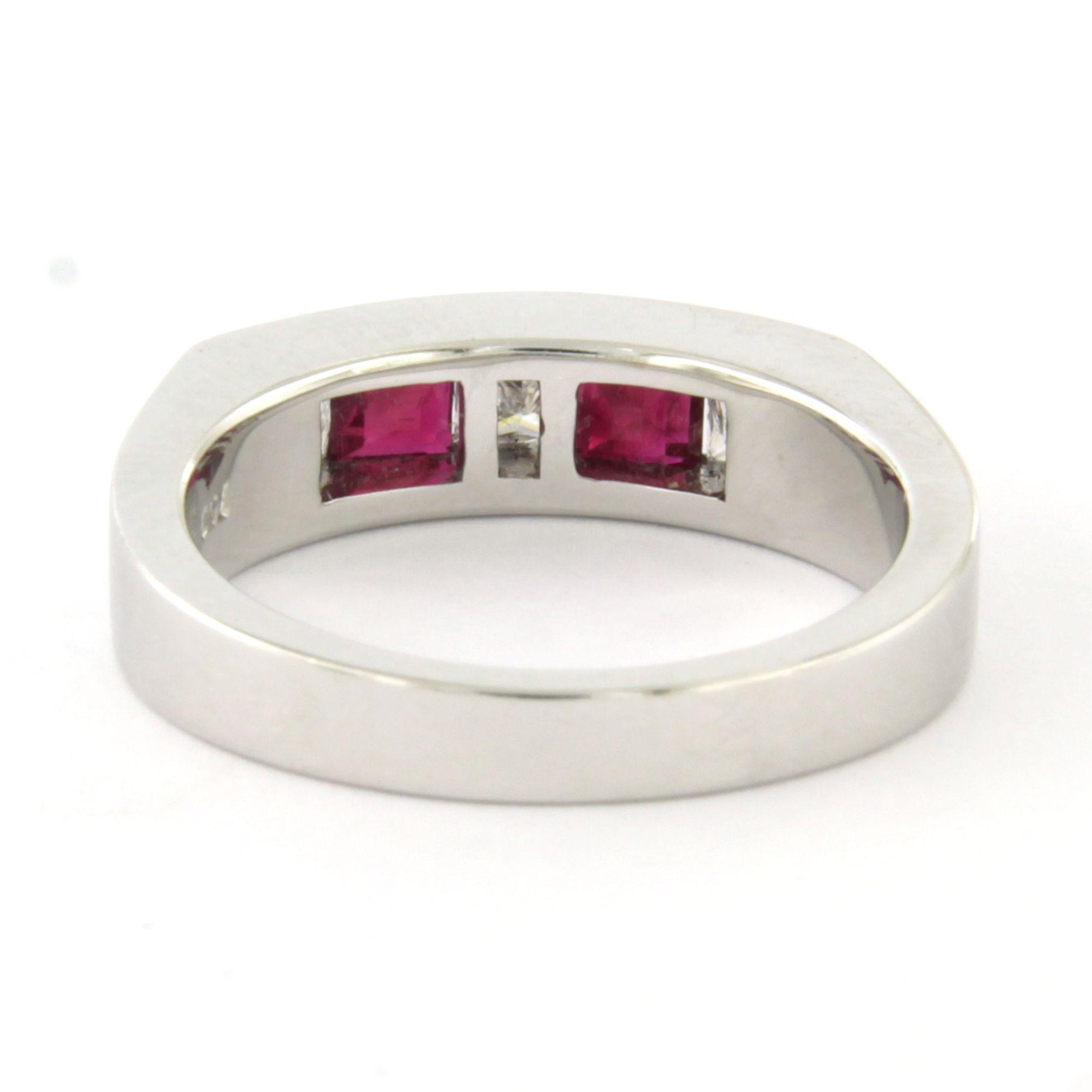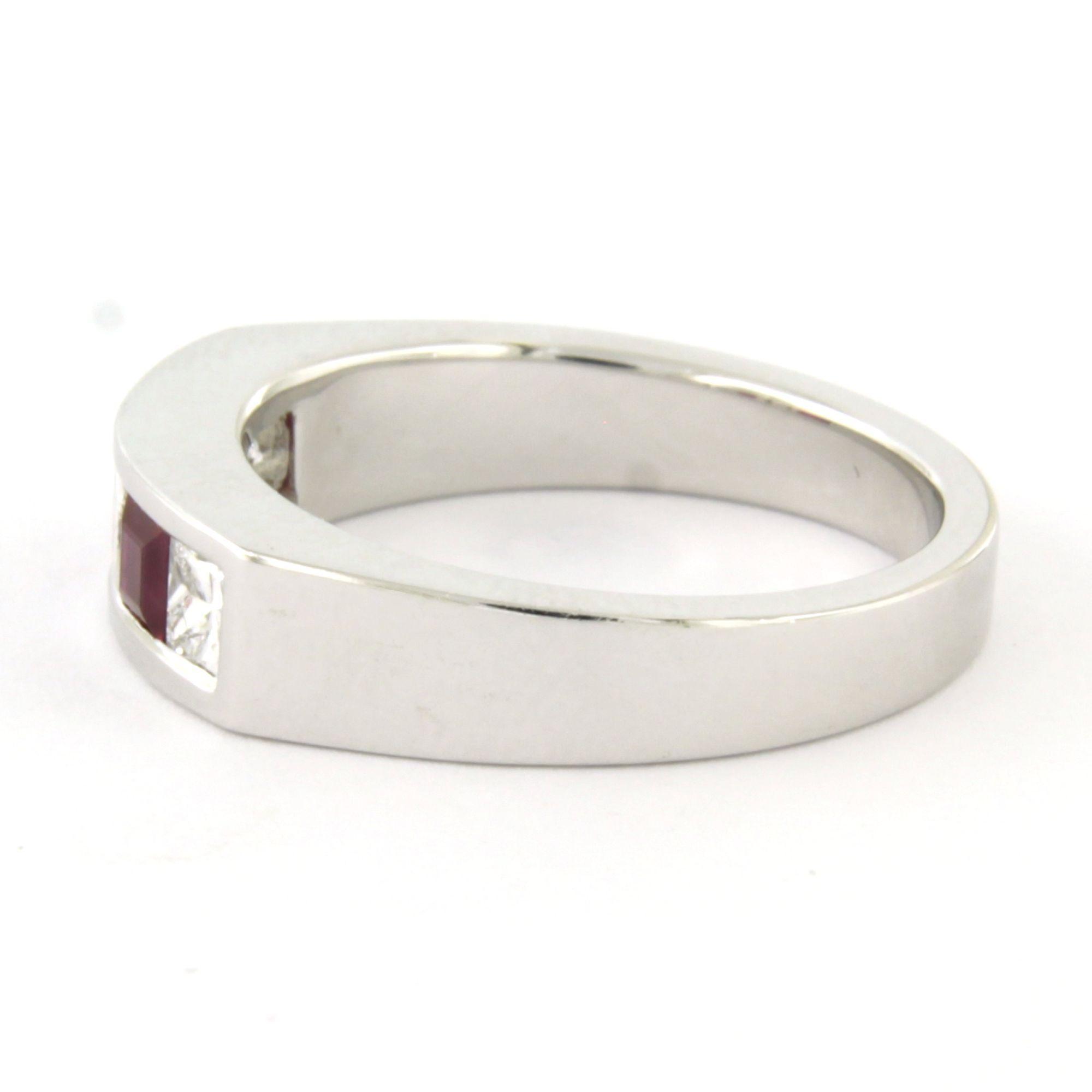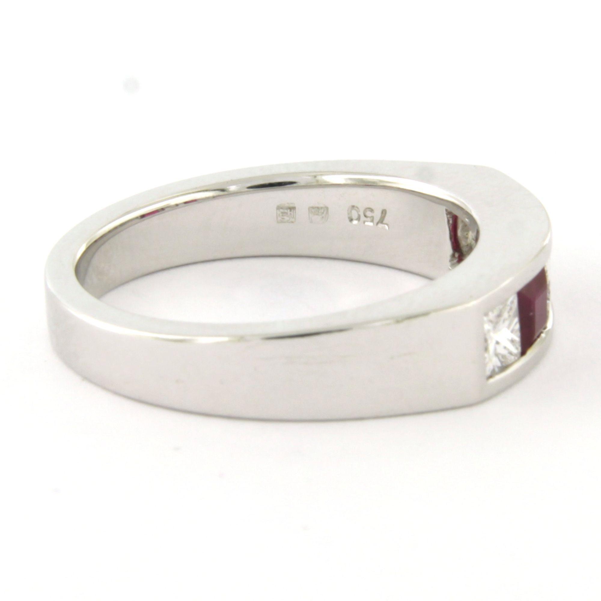 18 Kt. witgouden ring bezet met robijn en princes geslepen diamant tot. 0.50 ct. - ringmaat 17.25(54)