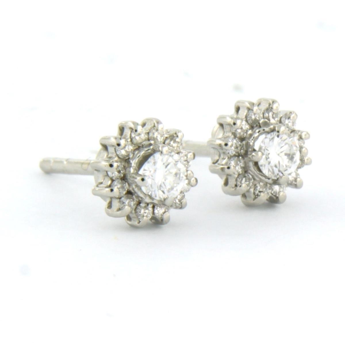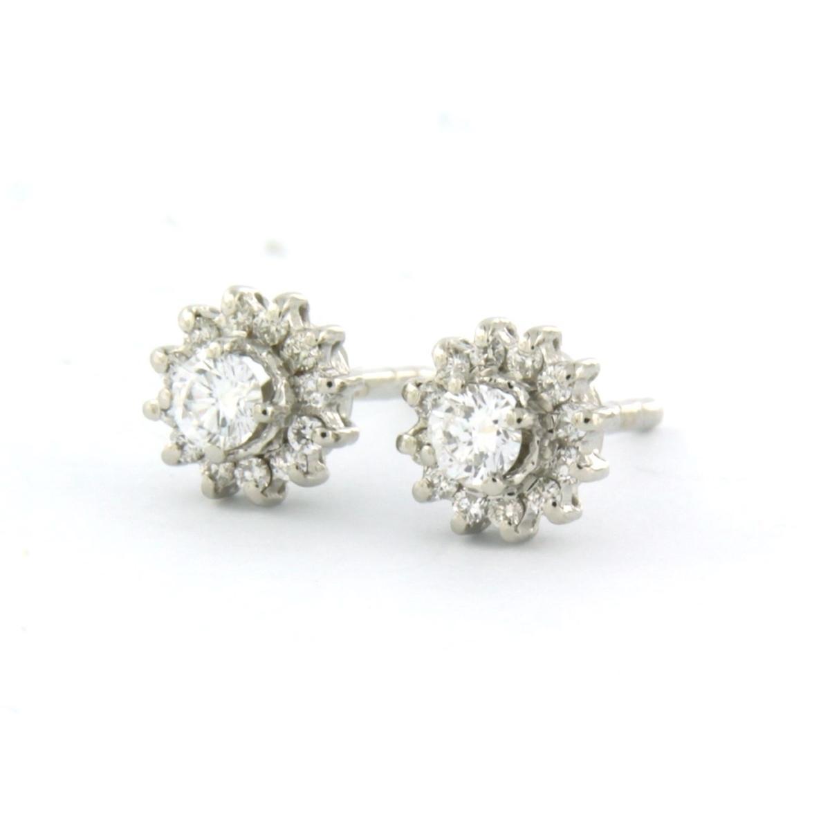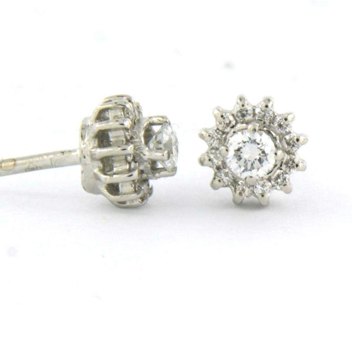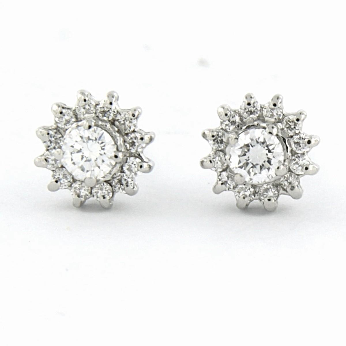 18 Kt. witgouden entourage oorknoppen bezet met briljant geslepen diamanten tot. 0.34 ct.