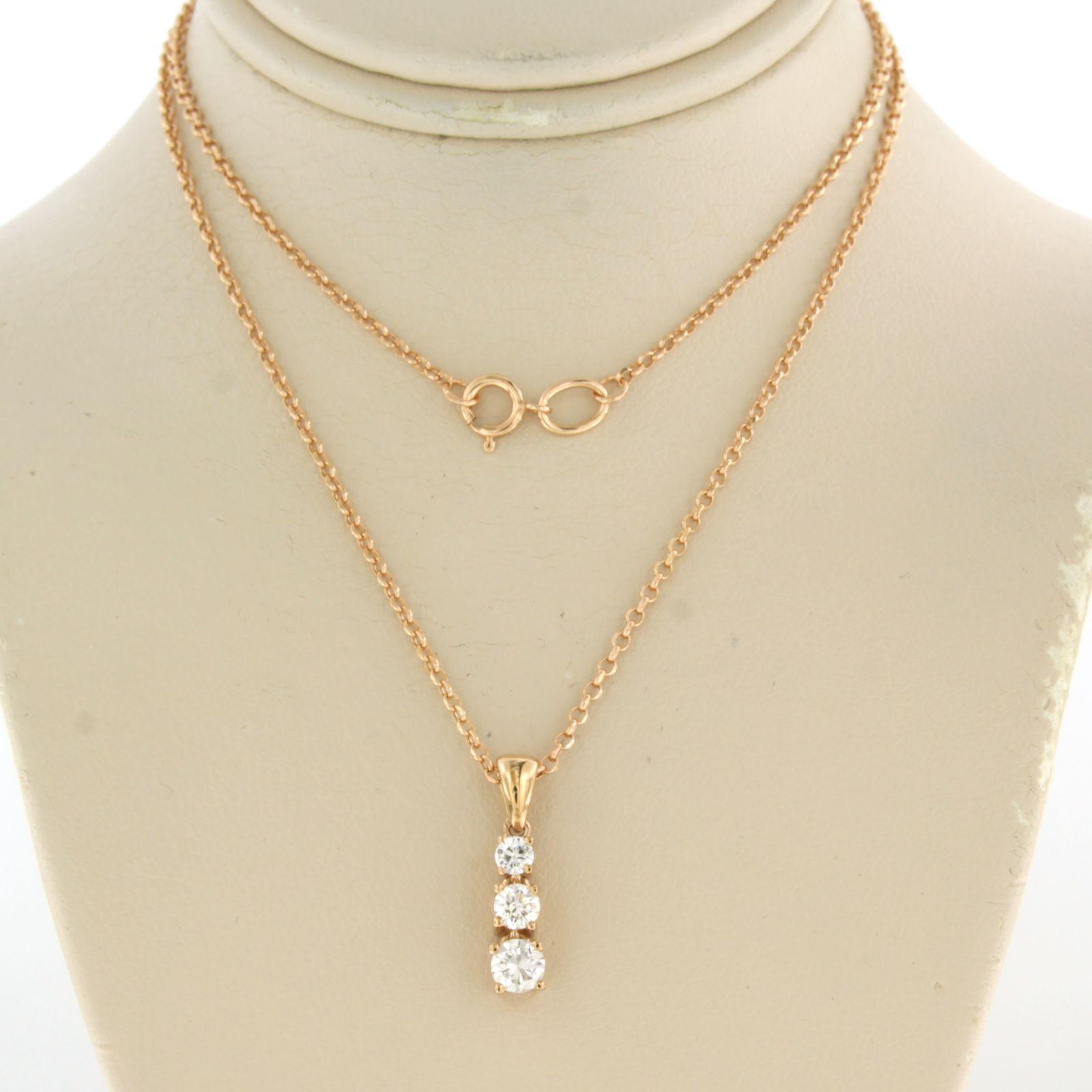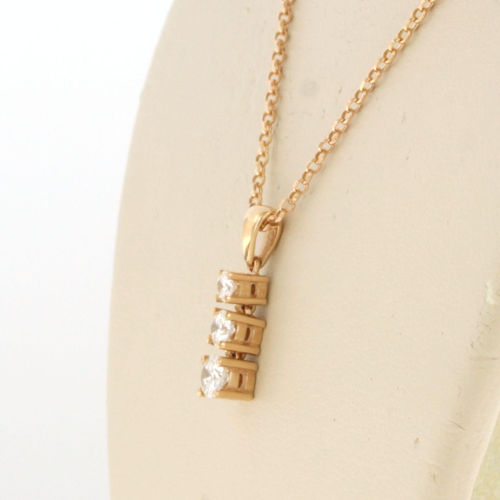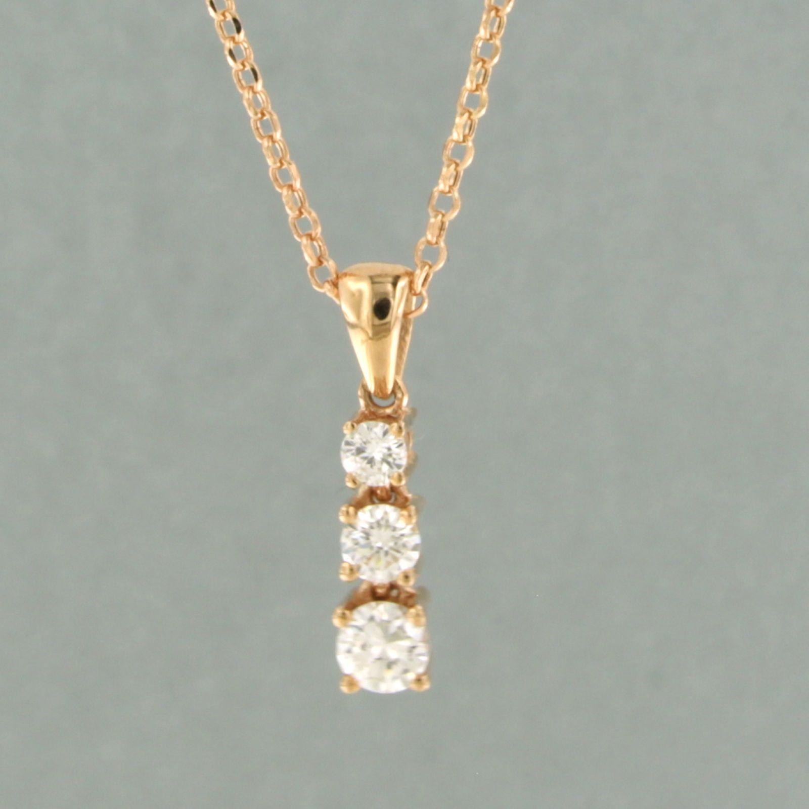 14 Kt. roségouden collier en hanger bezet met briljant geslepen diamant tot.0.48 ct. - L.45 cm.