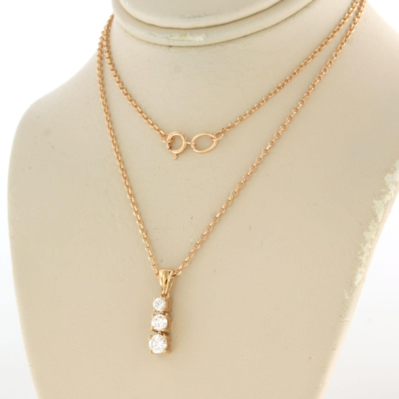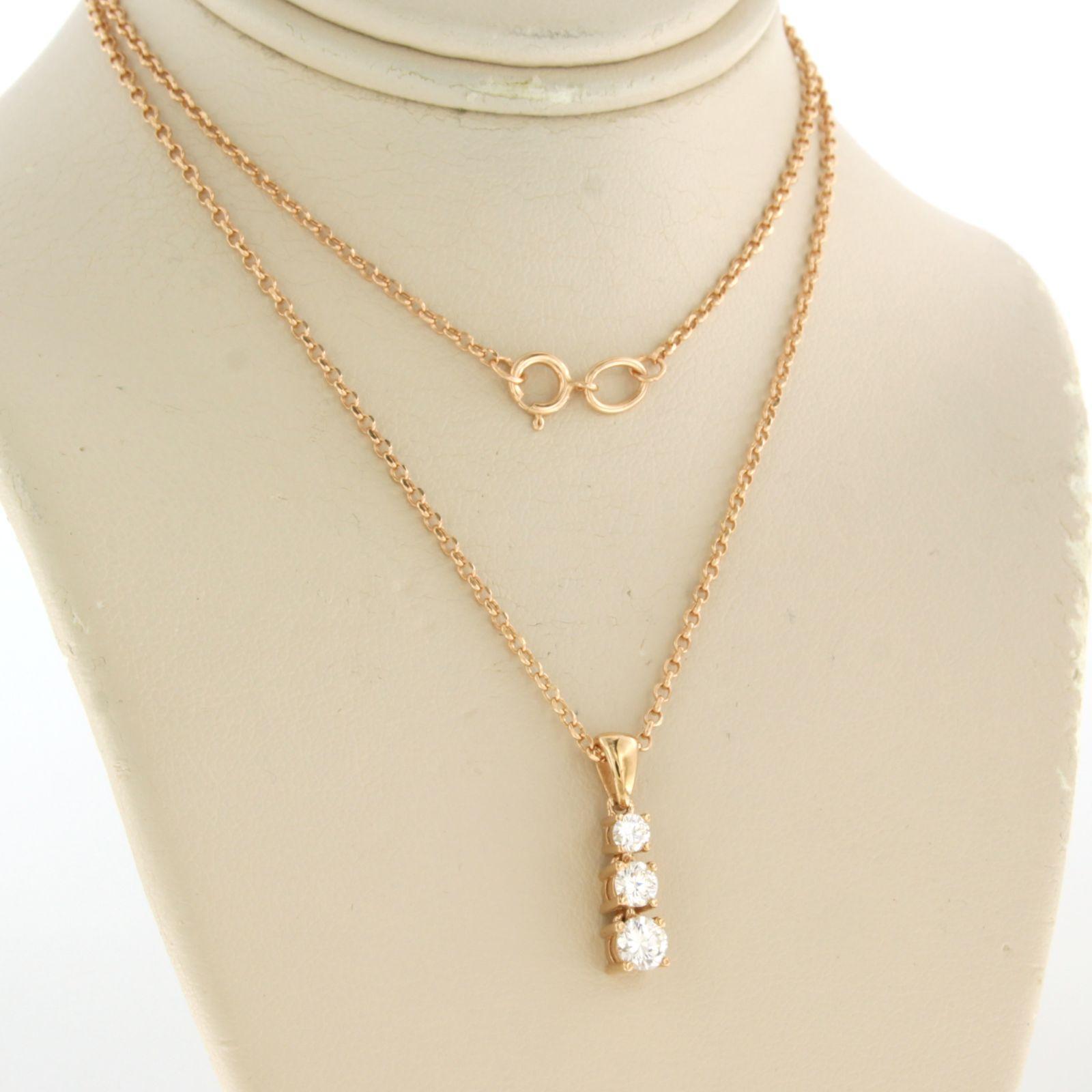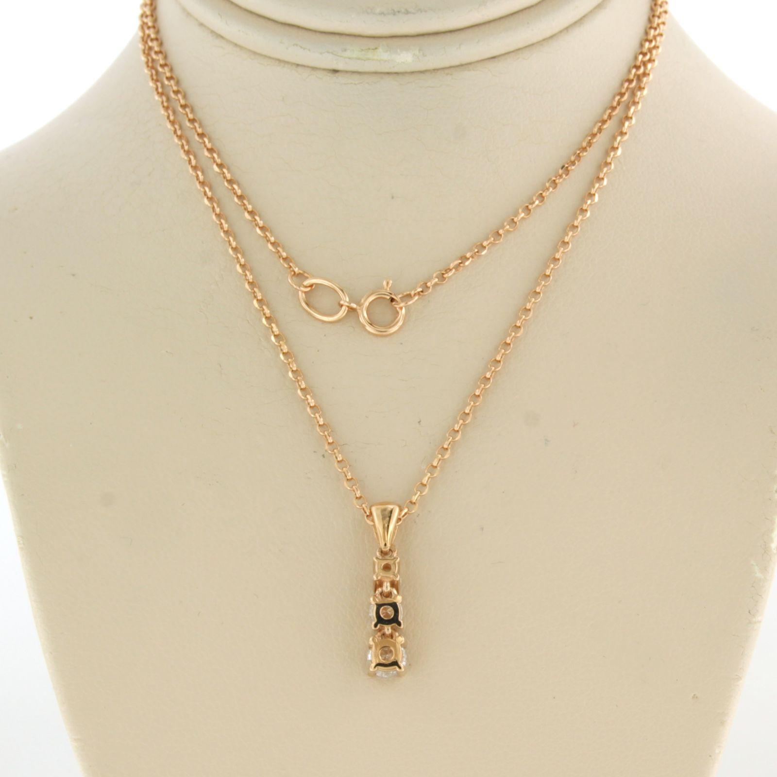 14 Kt. roségouden collier en hanger bezet met briljant geslepen diamant tot.0.48 ct. - L.45 cm.