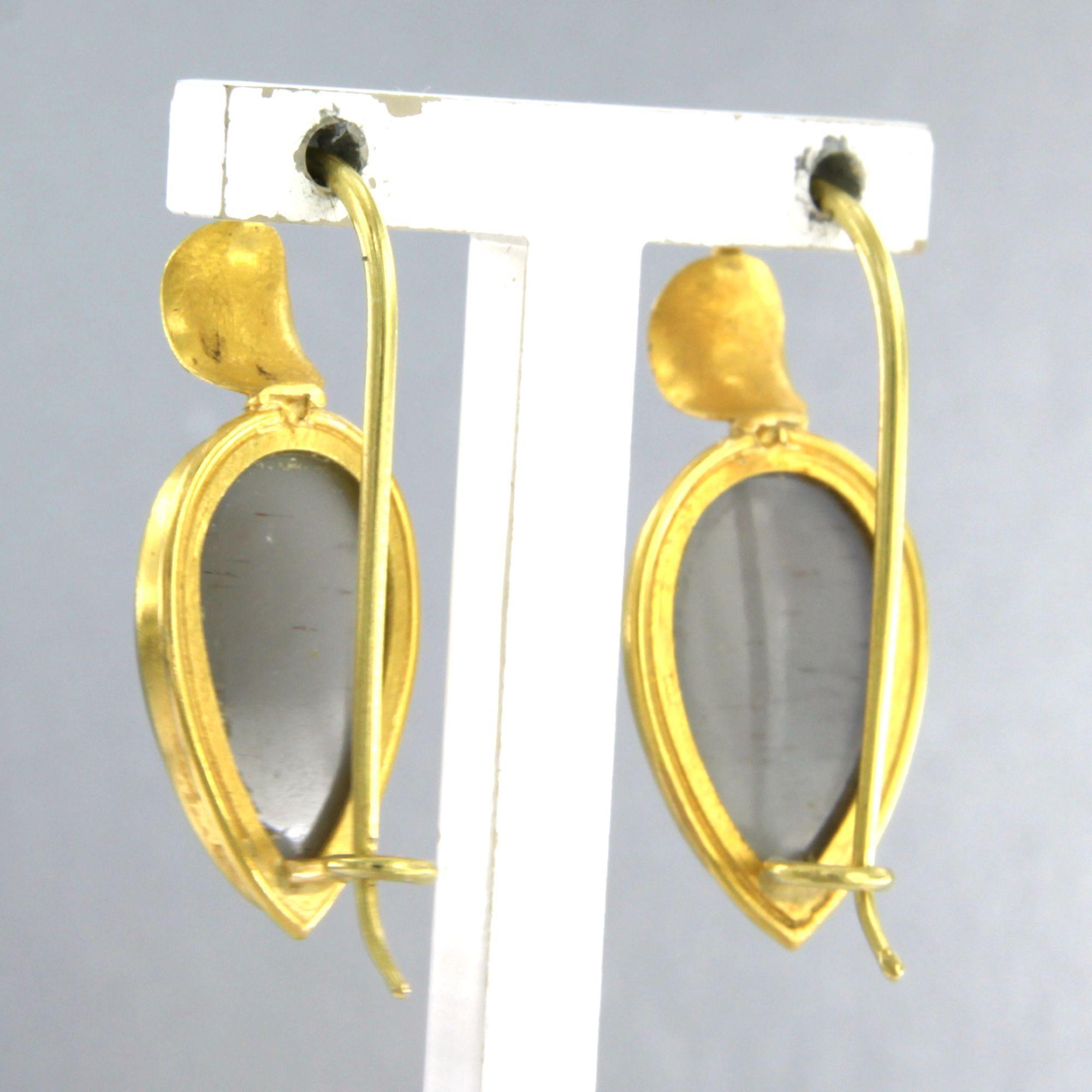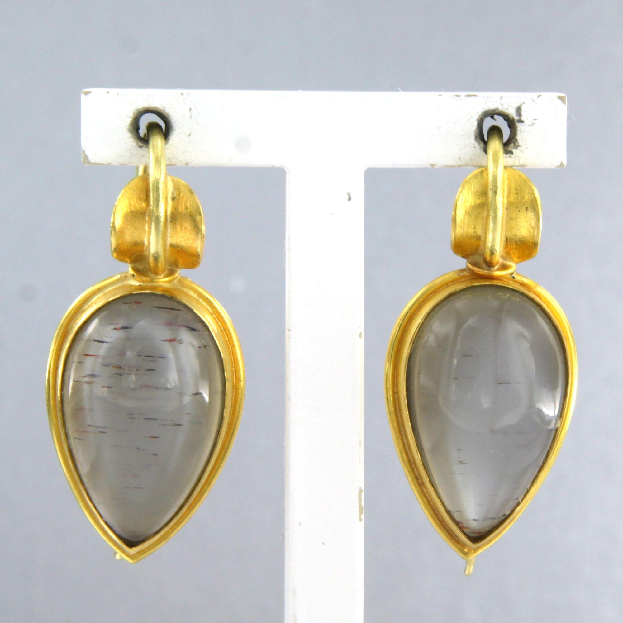 18 Kt. geelgouden oorhangers bezet met Ruthiel kwarts