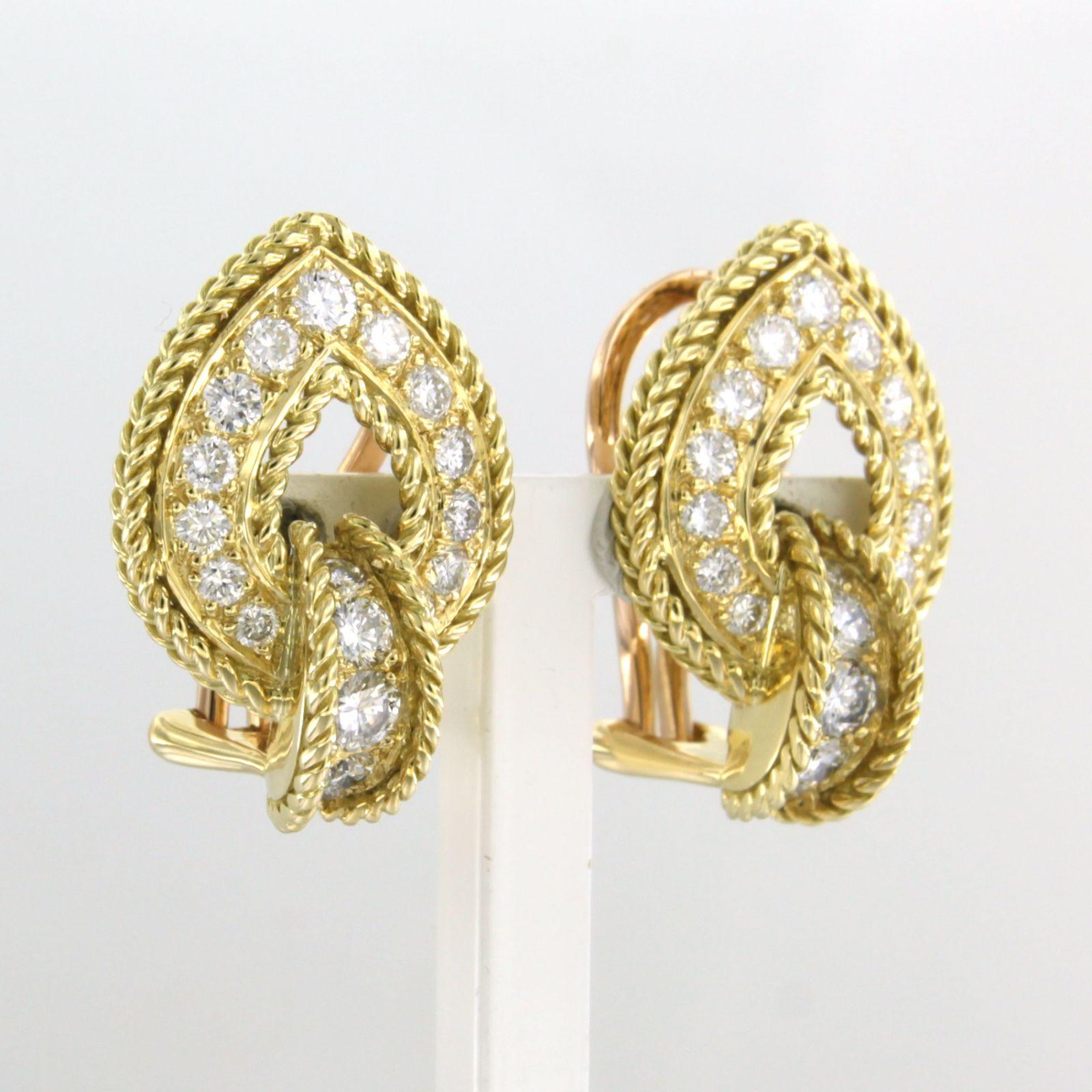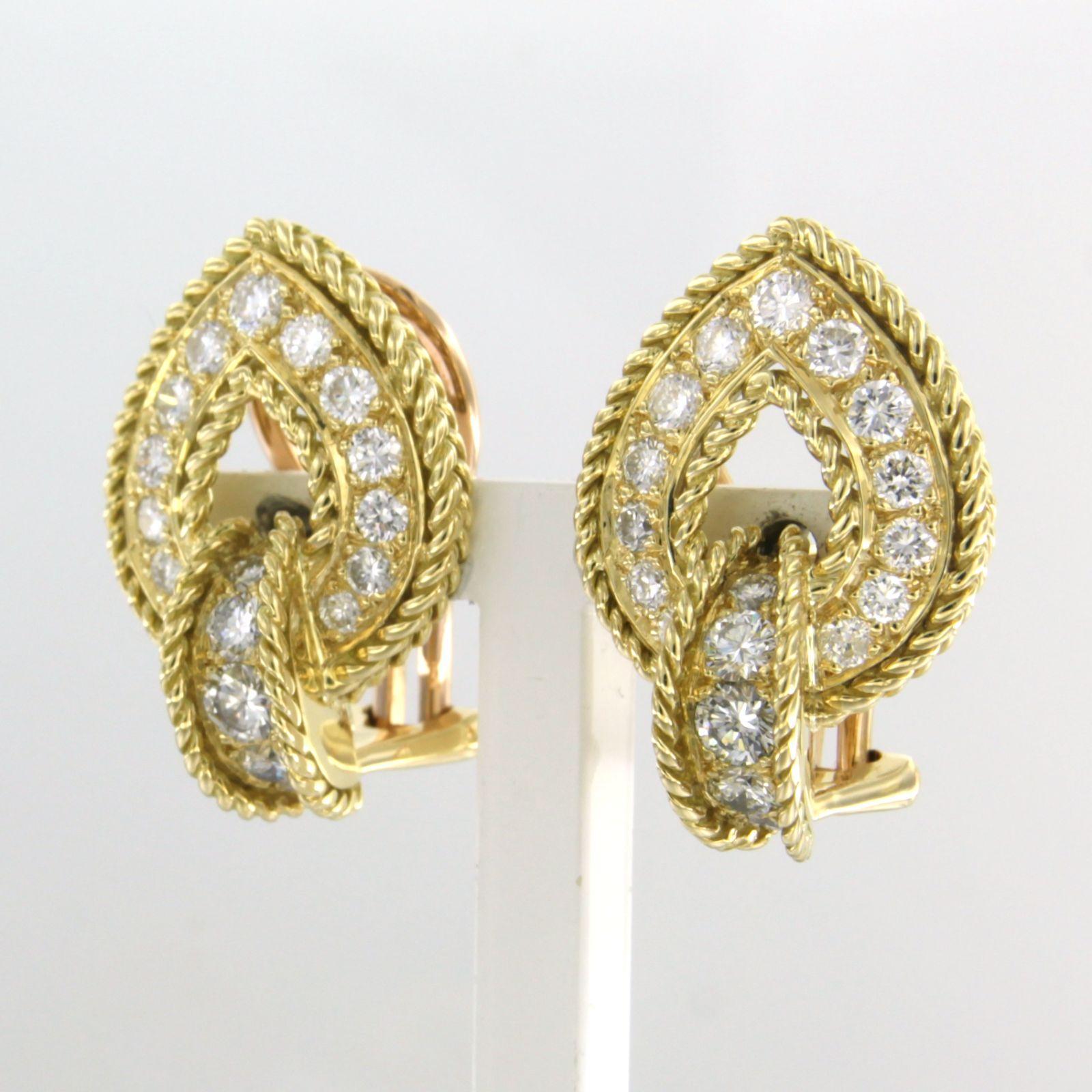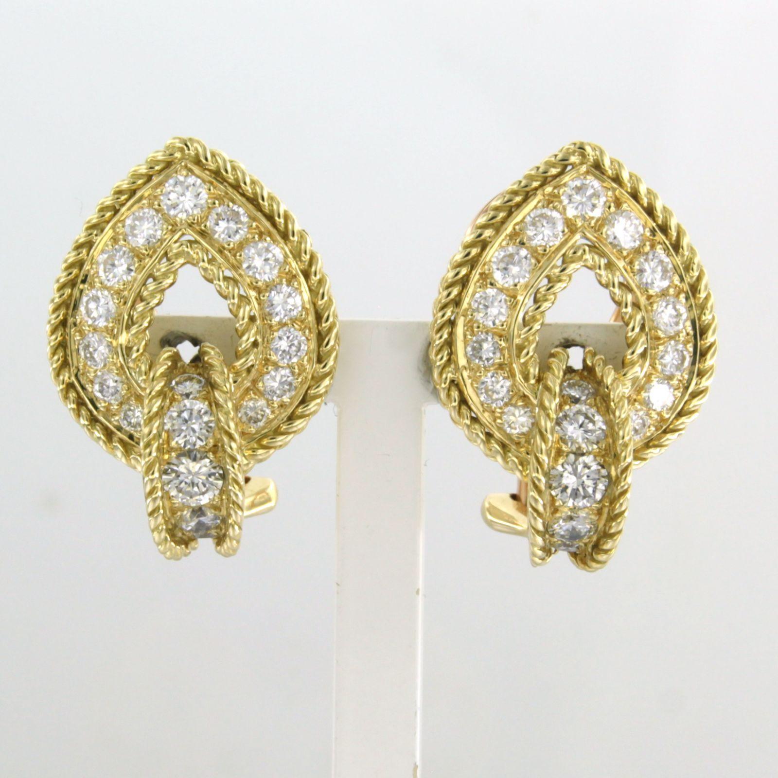 18 Kt. geelgouden oorclips bezet met briljant geslepen diamant tot. 2.00 ct.