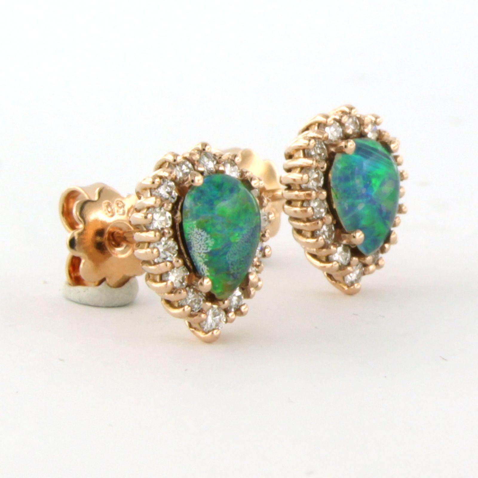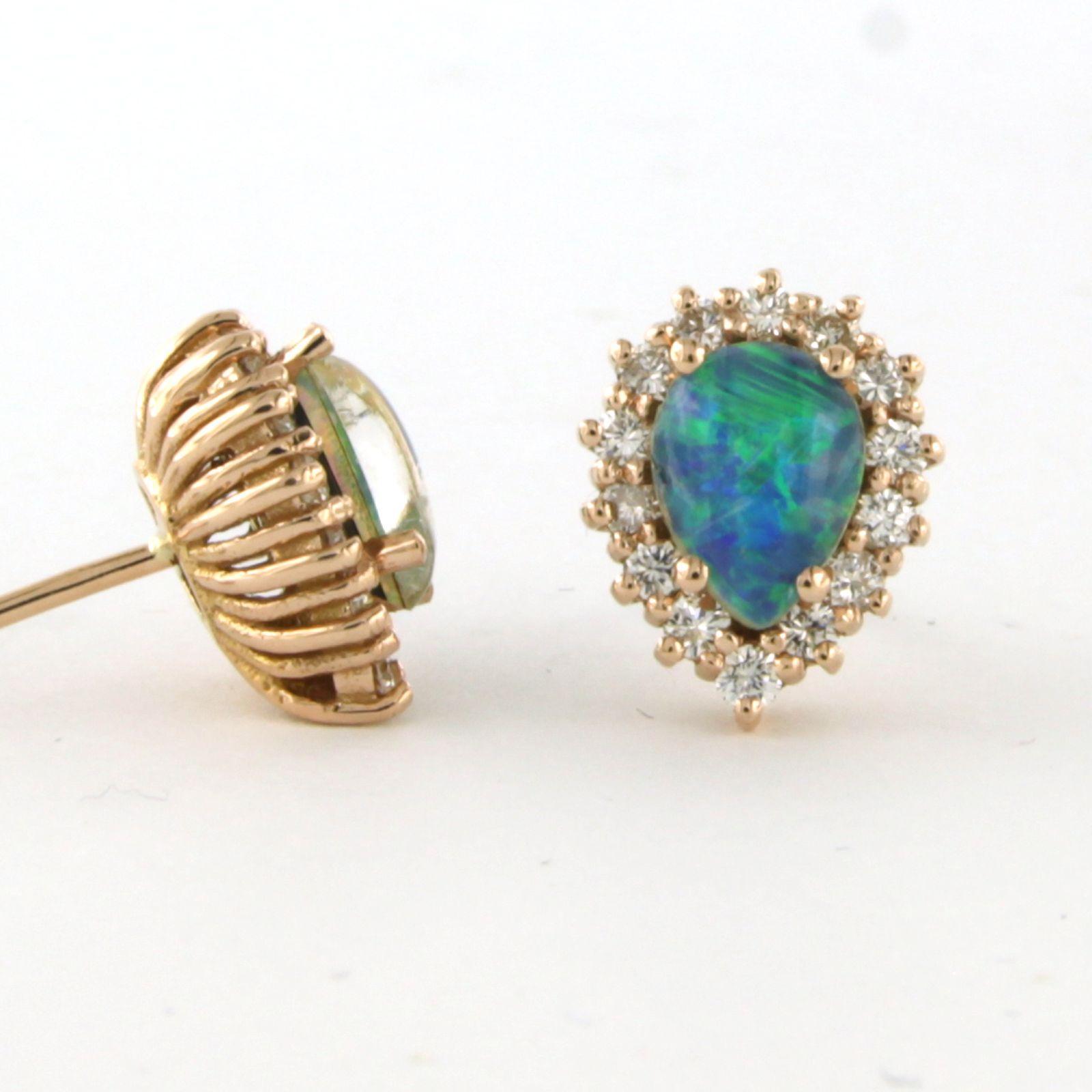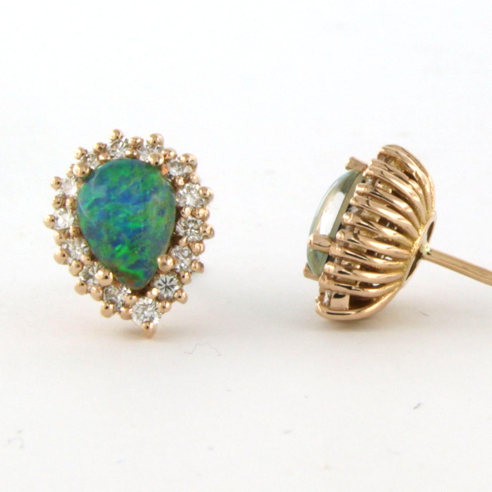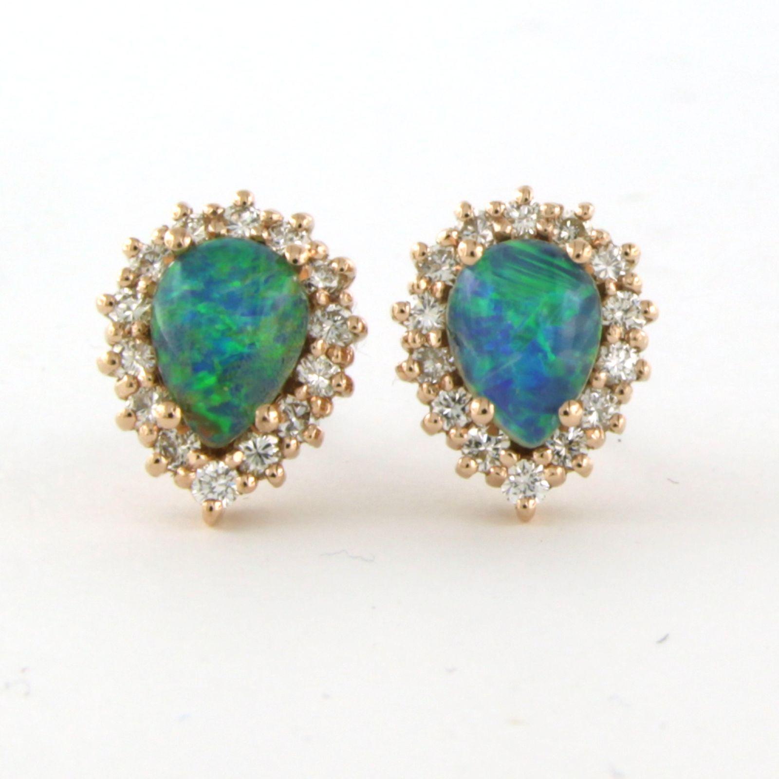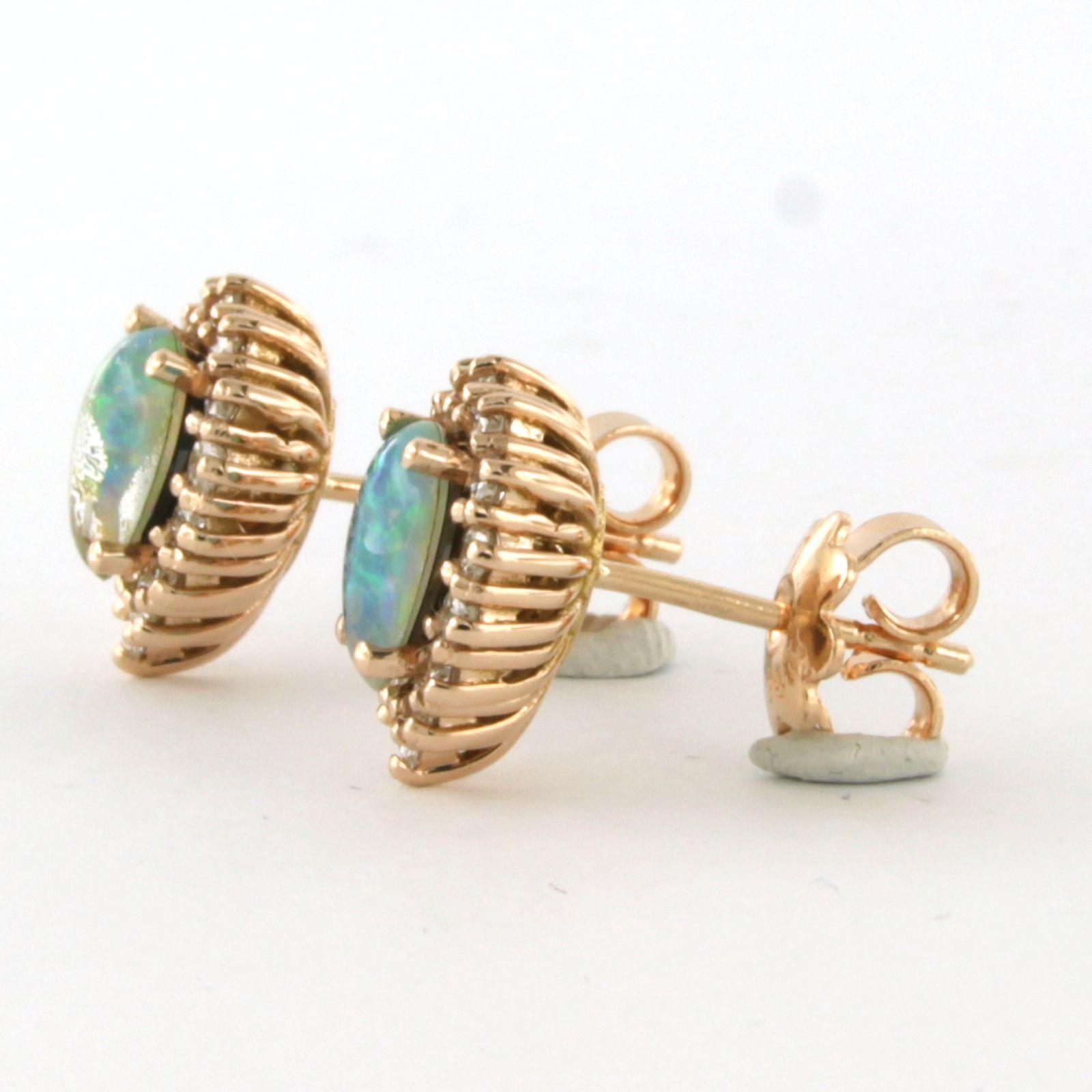 18 Kt. roségouden oorknoppen bezet met opaal en briljant geslepen diamanten tot. 0.52 ct.