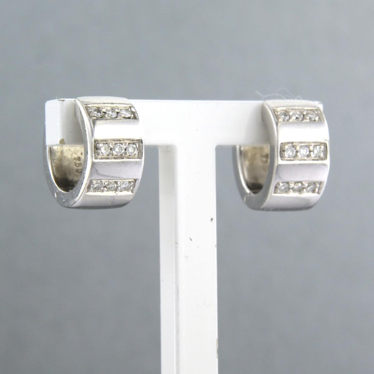 18 Kt. witgouden oorbellen bezet met briljant geslepen diamanten tot.0.15 ct.