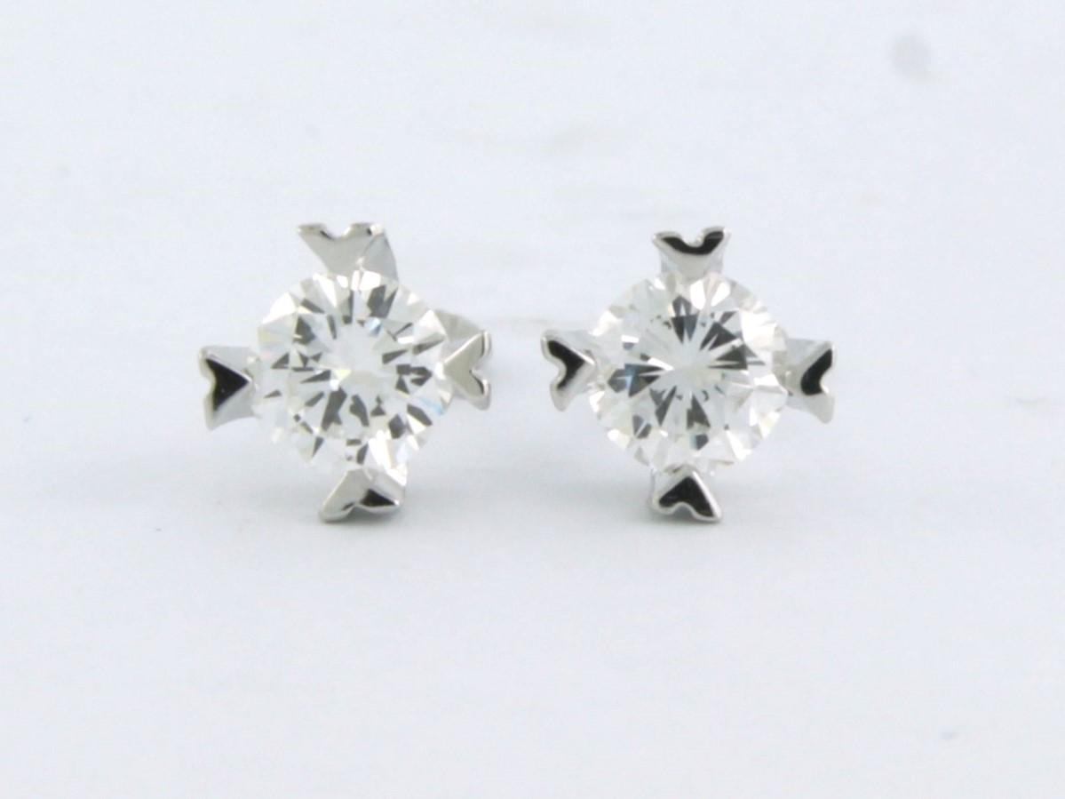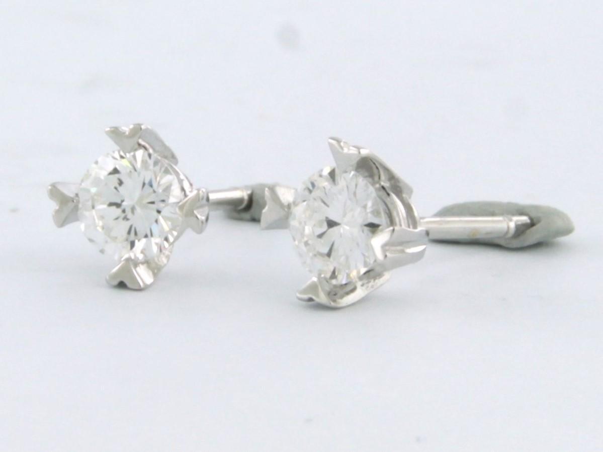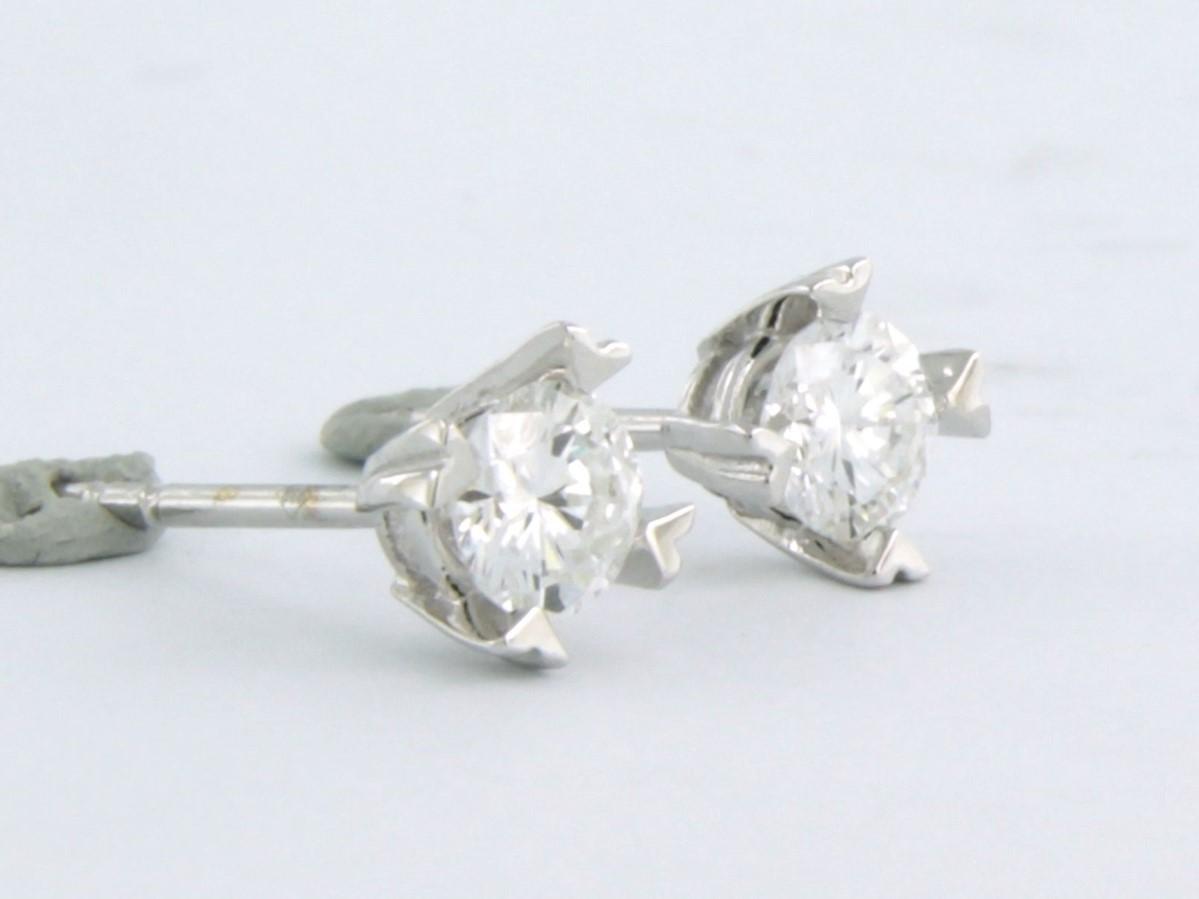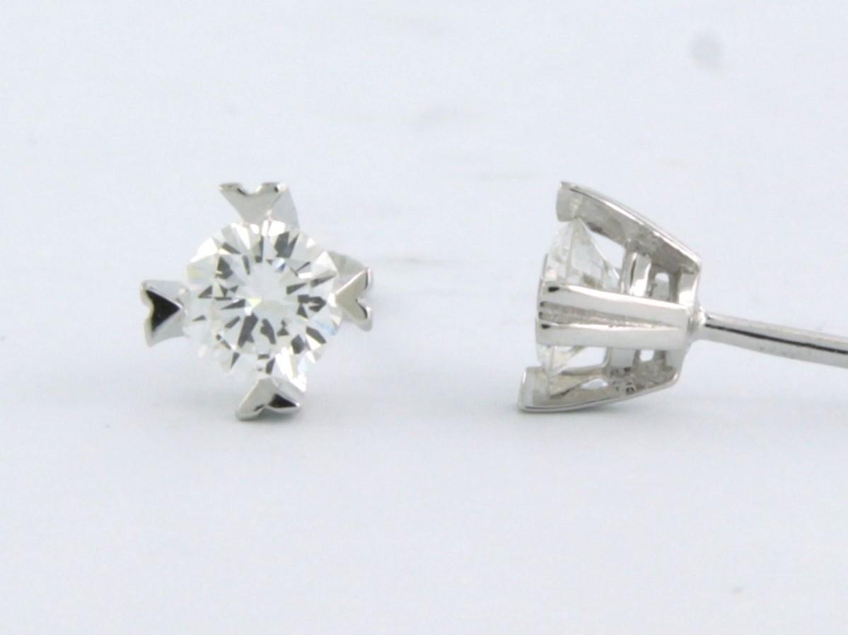 18 Kt. witgouden solitair oorknoppen bezet met briljant geslepen diamant tot. 0.20 ct.