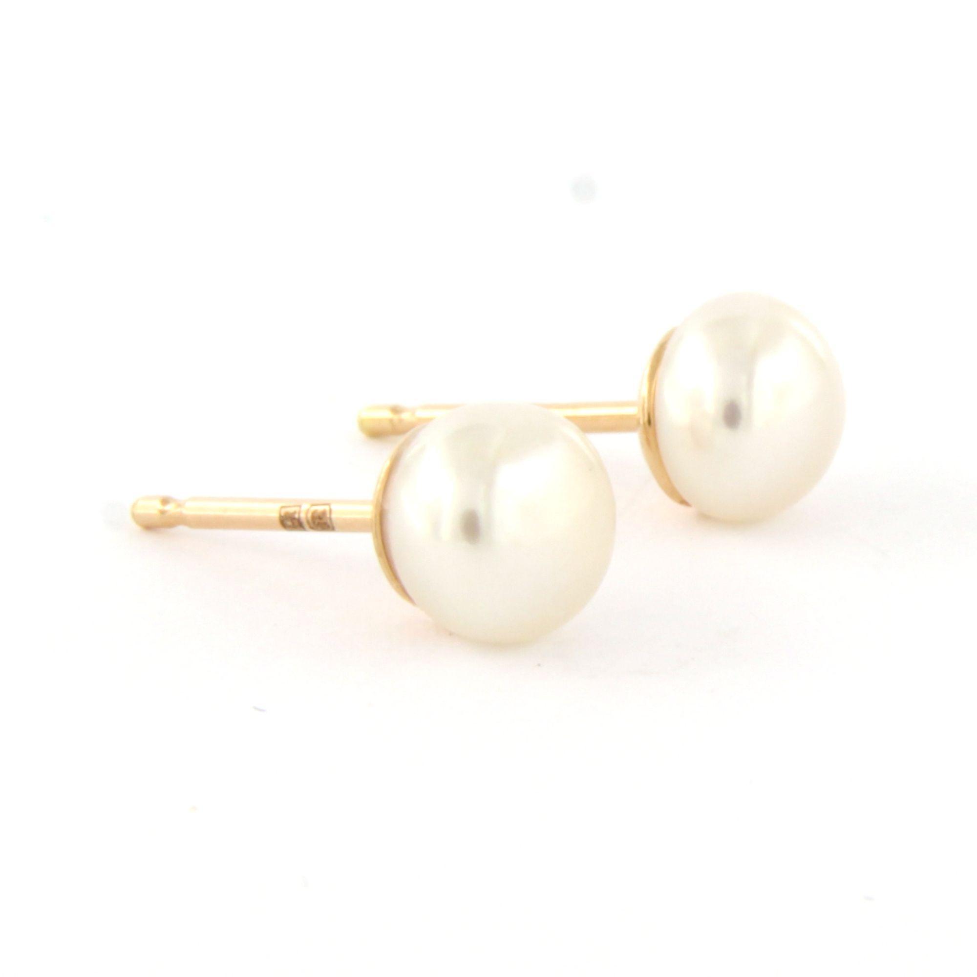 18 Kt. roségouden oorknoppen bezet met parel - 1.6 gram