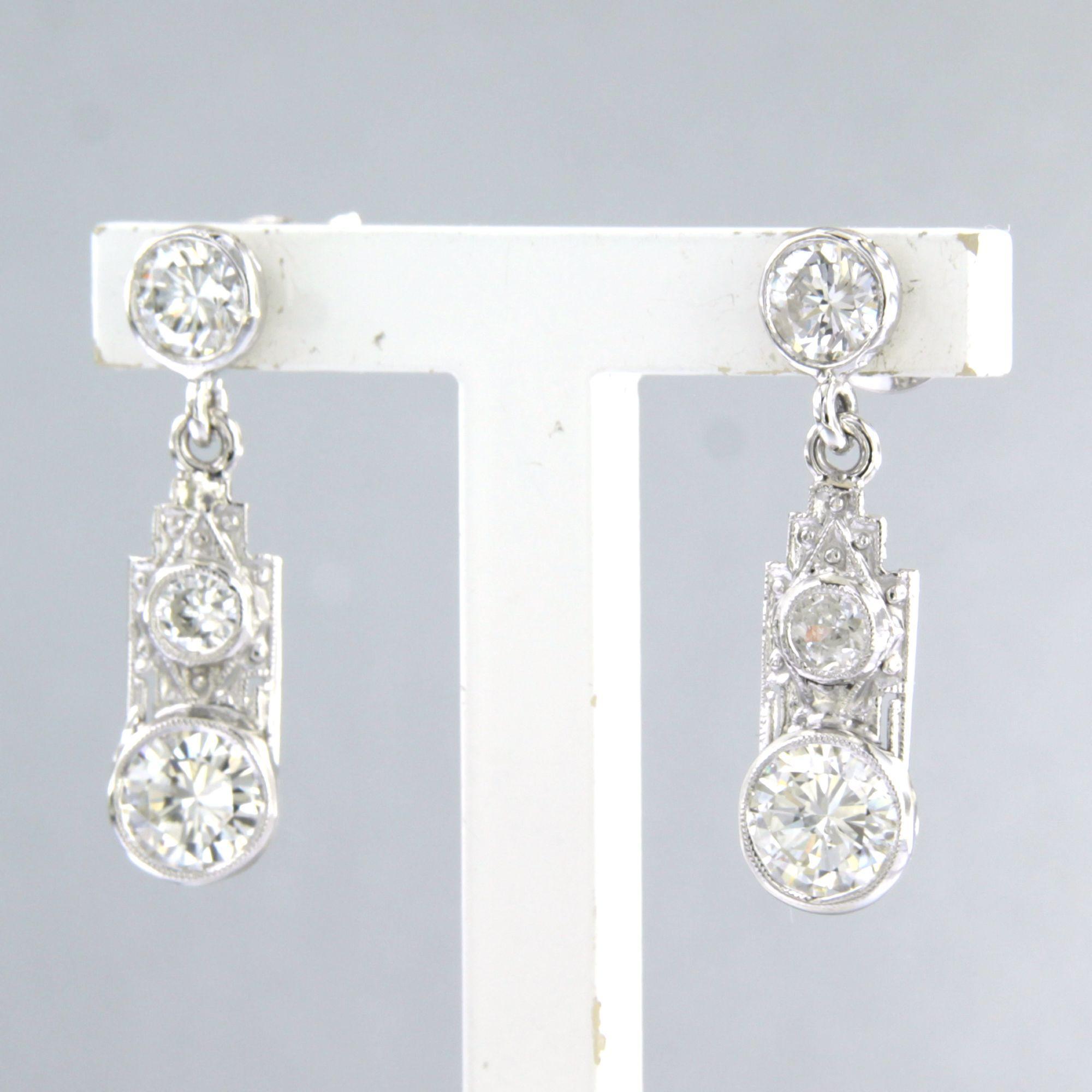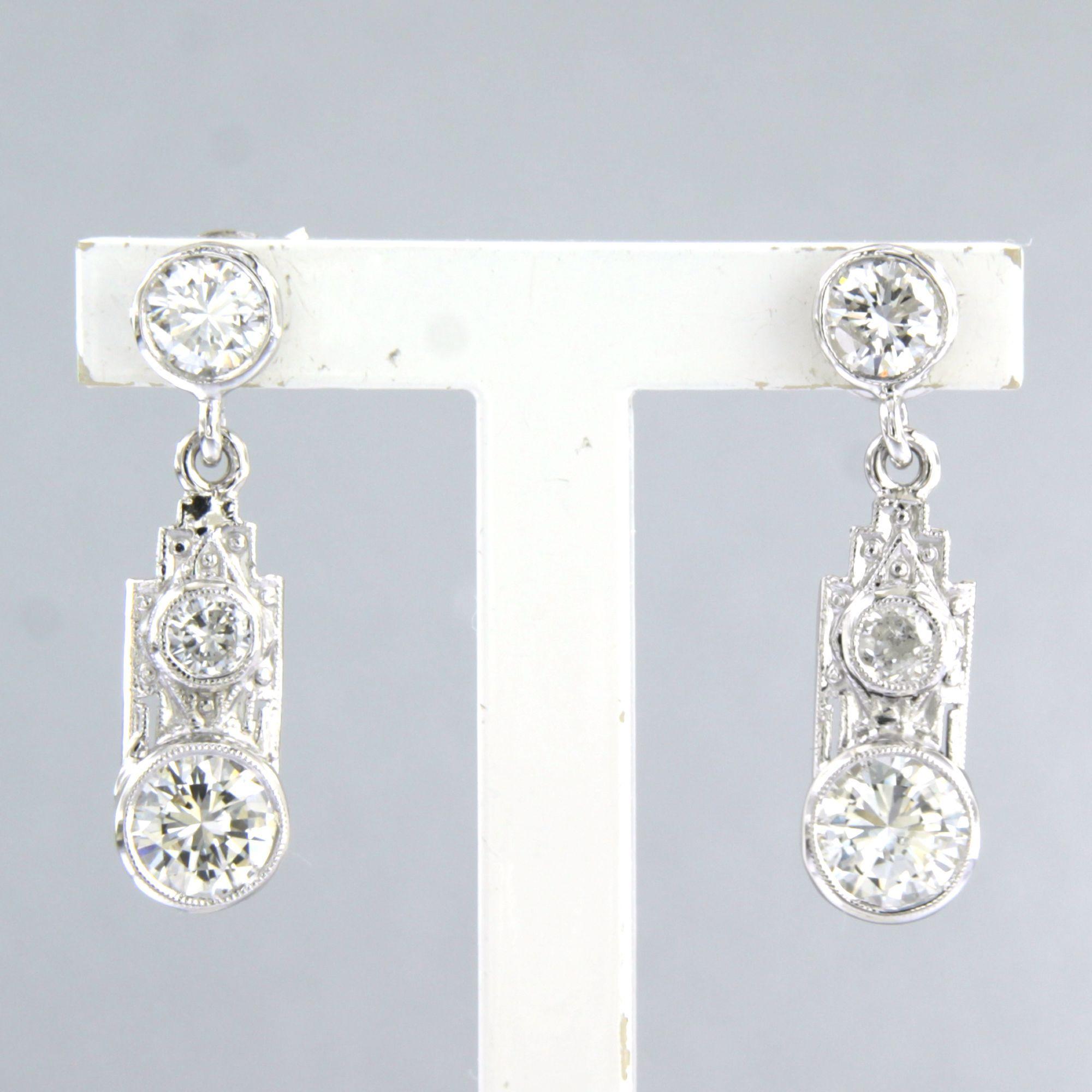 14 Kt. witgouden oorhanger bezet met briljant geslepen diamant tot. 1.60 ct.