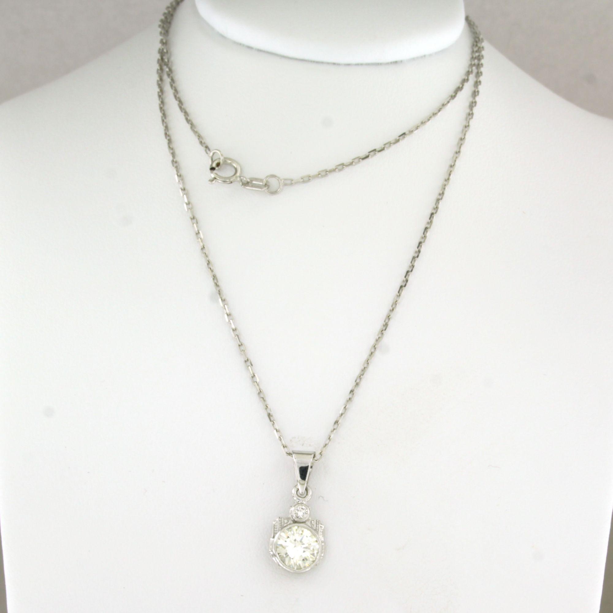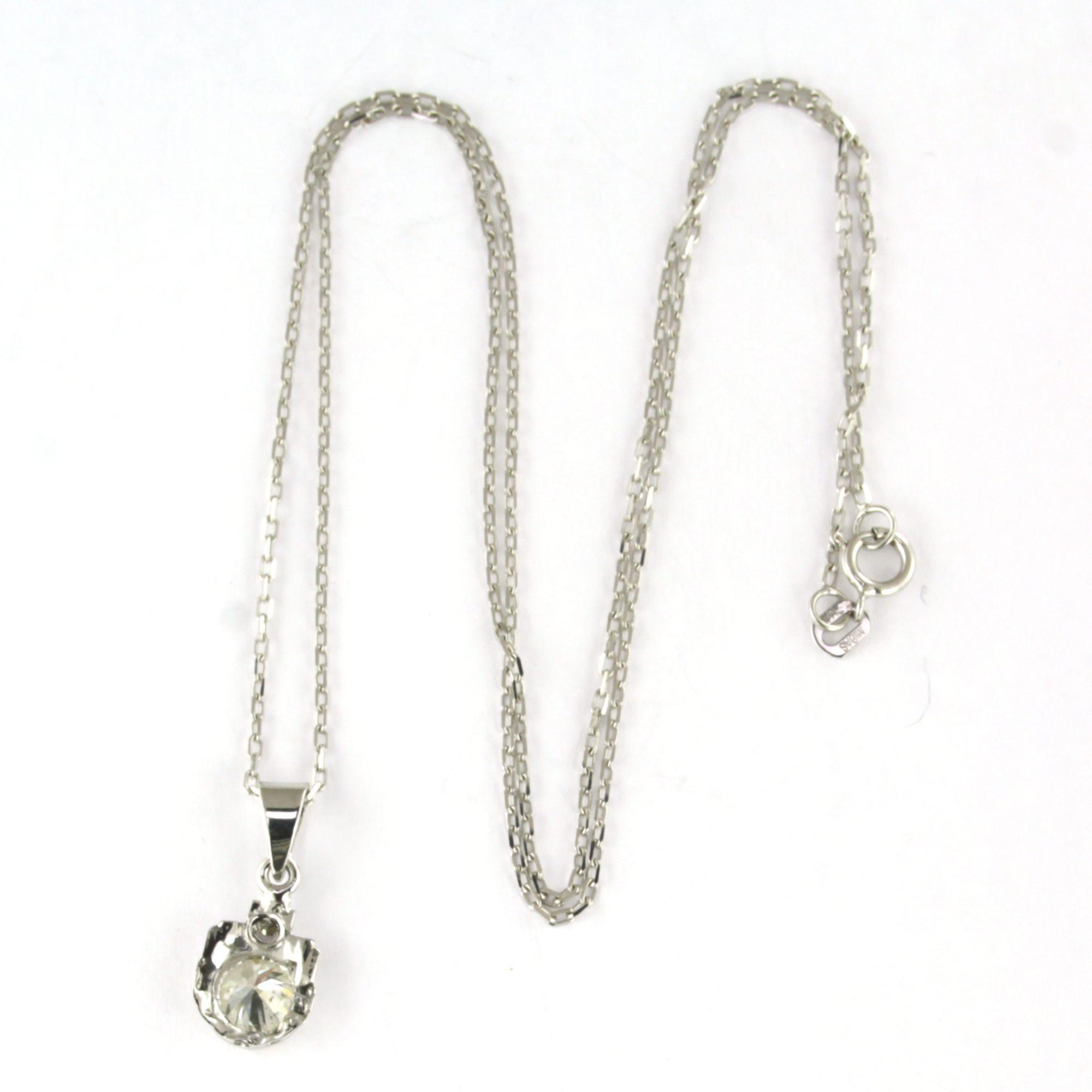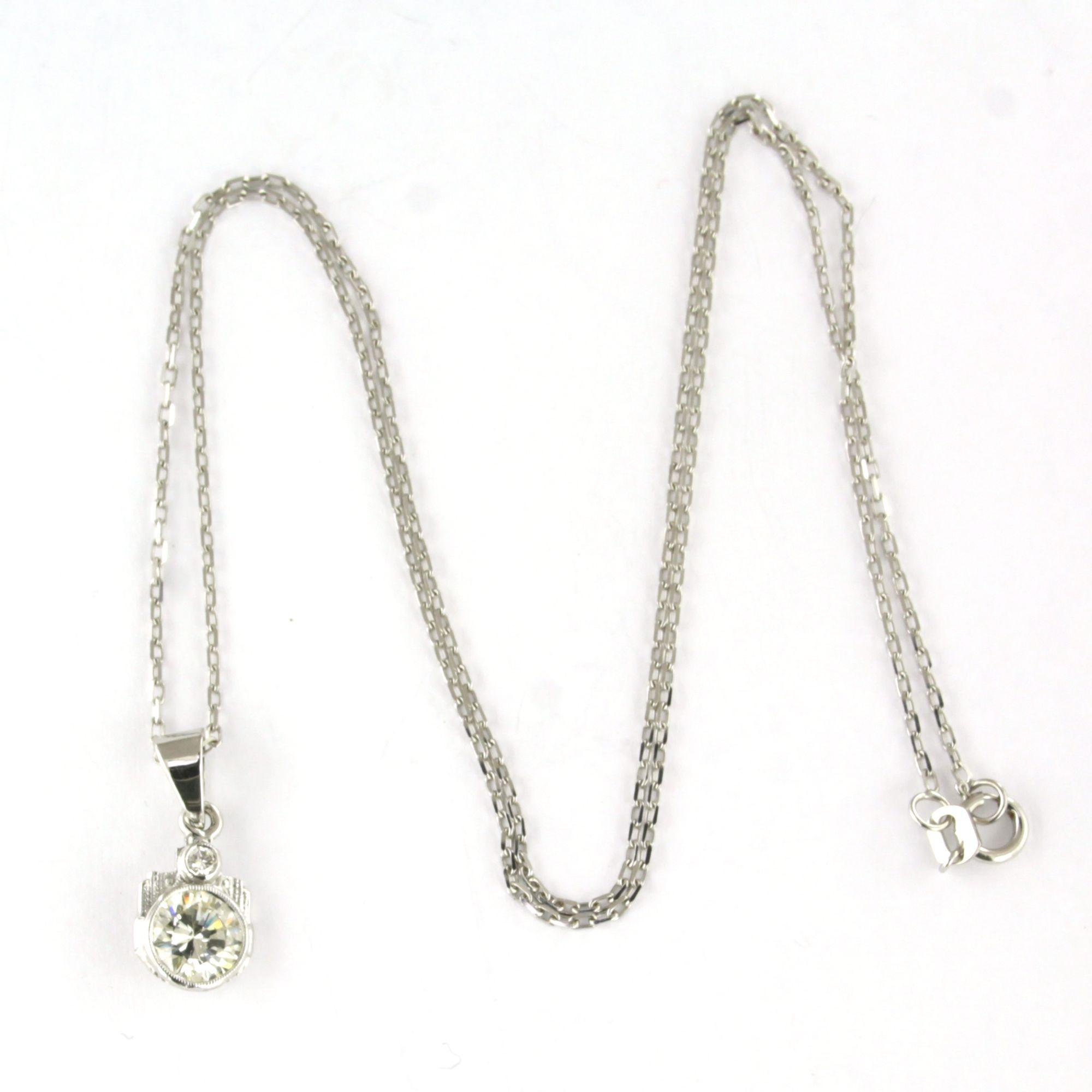 14 Kt. witgouden collier en hanger bezet met briljant geslepen diamant tot. 0.95 ct.
