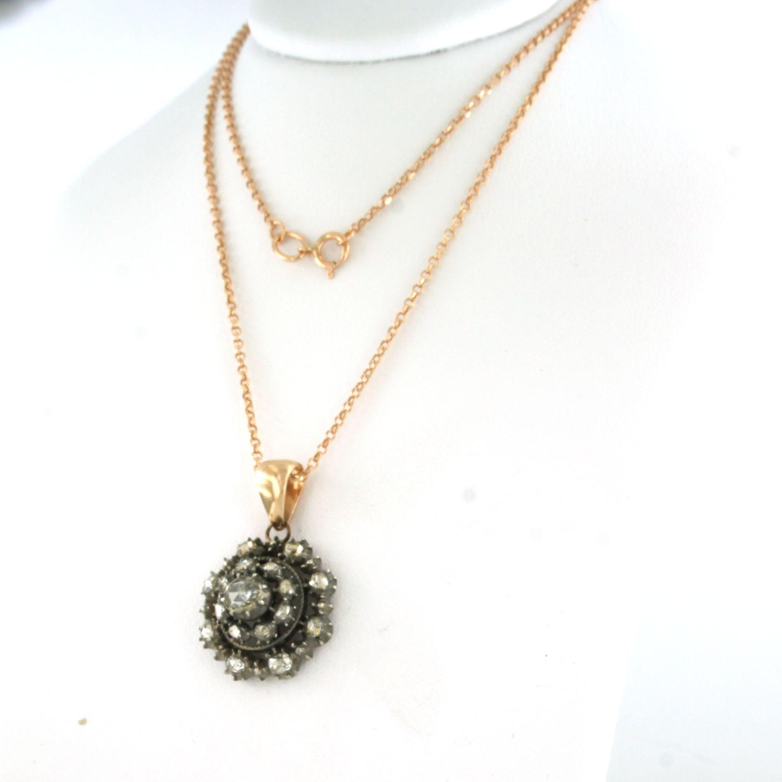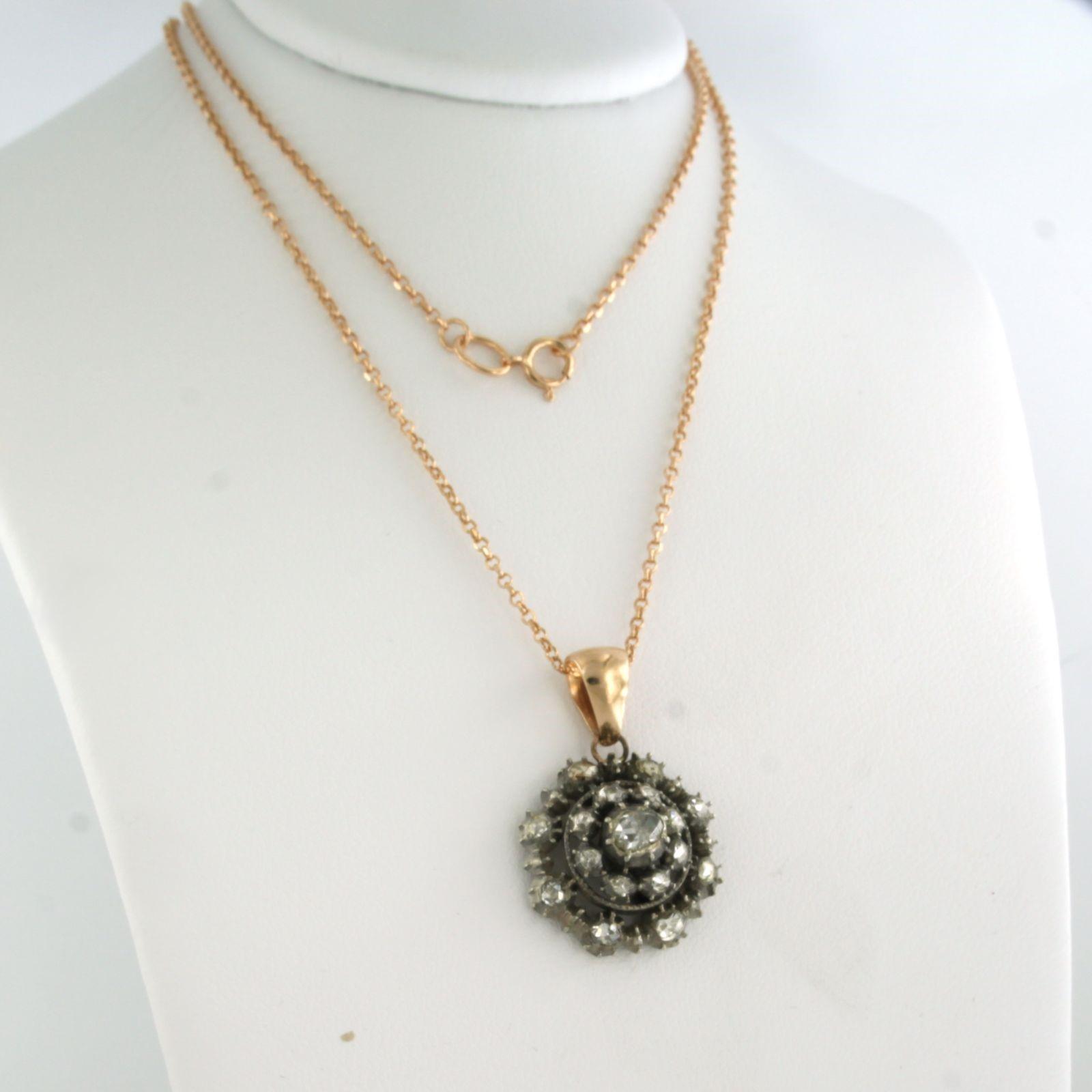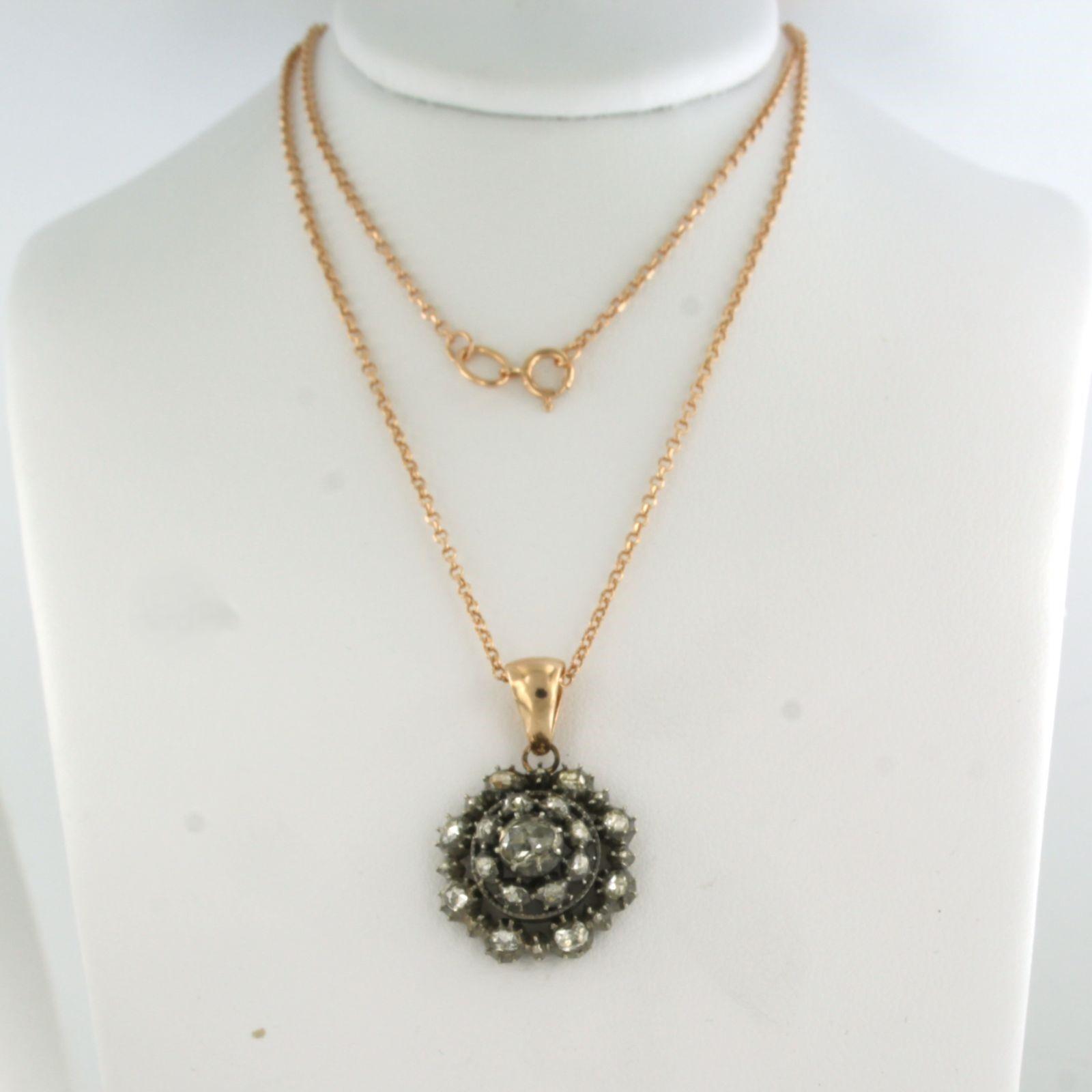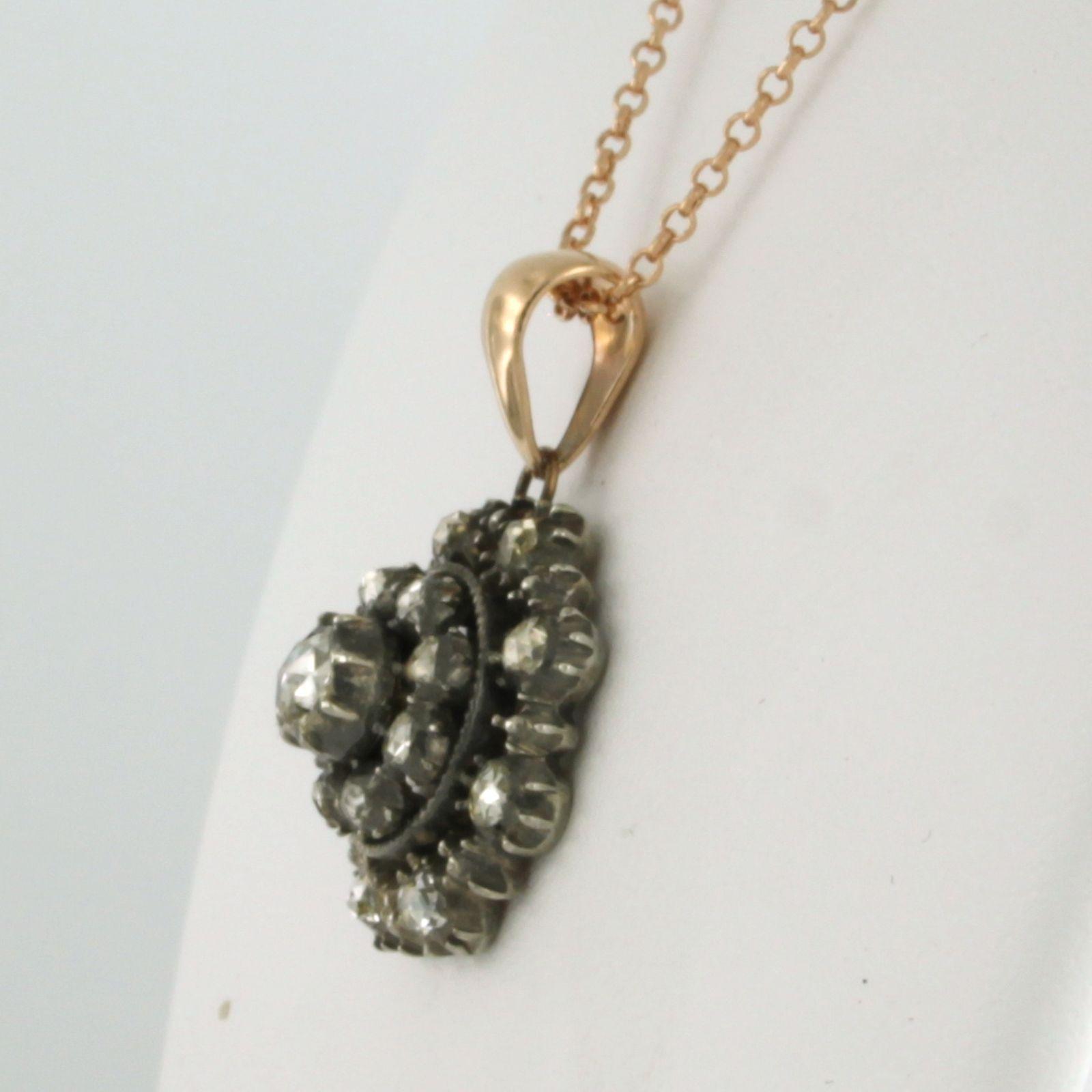 14 Kt. roségouden collier en goud met zilver hanger bezet met roos diamanten tot.0.50 ct.