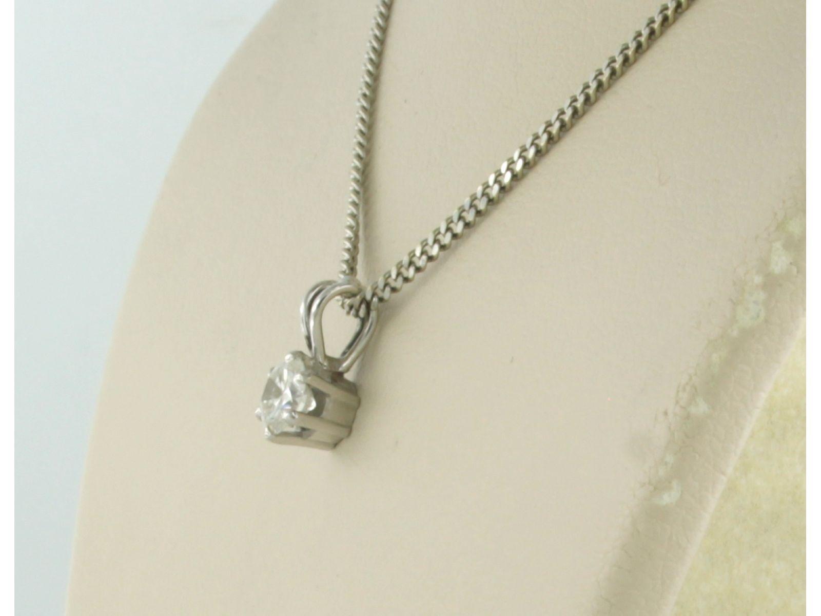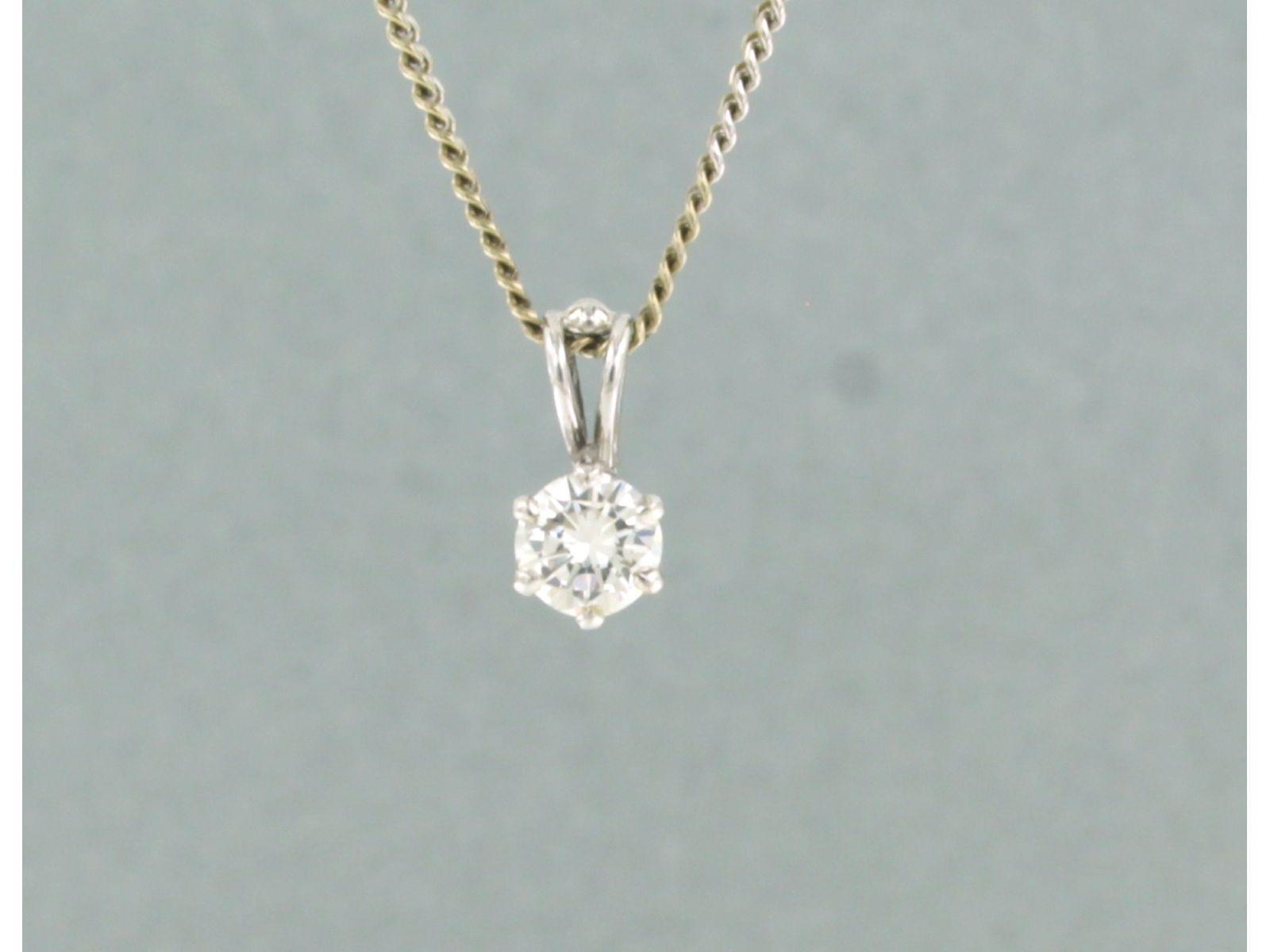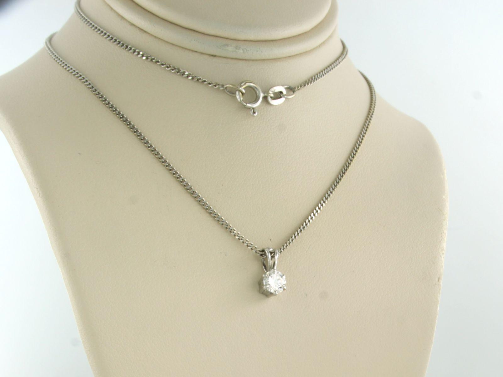 18 Kt. witgouden collier en een solitairhanger bezet met briljant geslepen diamant tot. 0.41 ct.