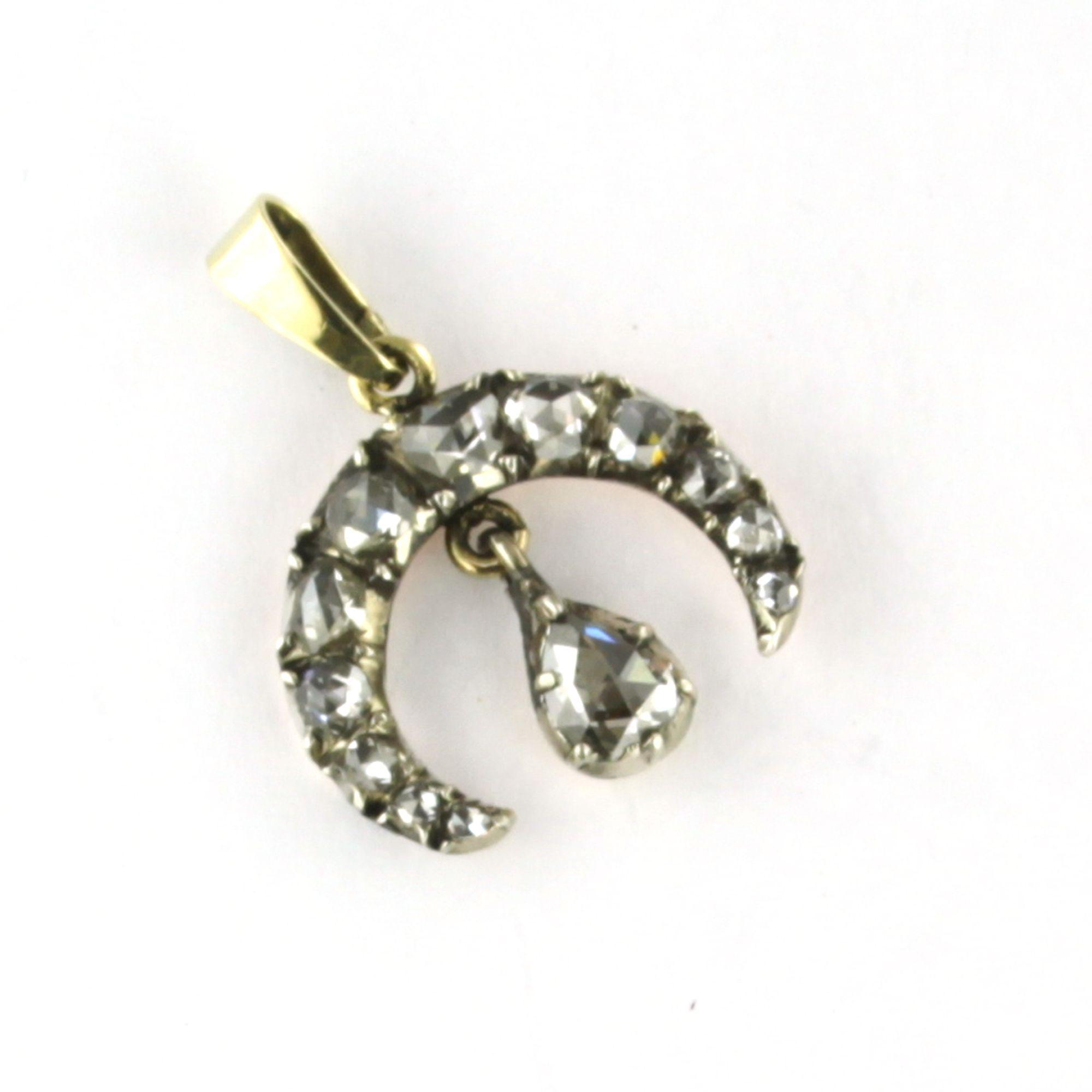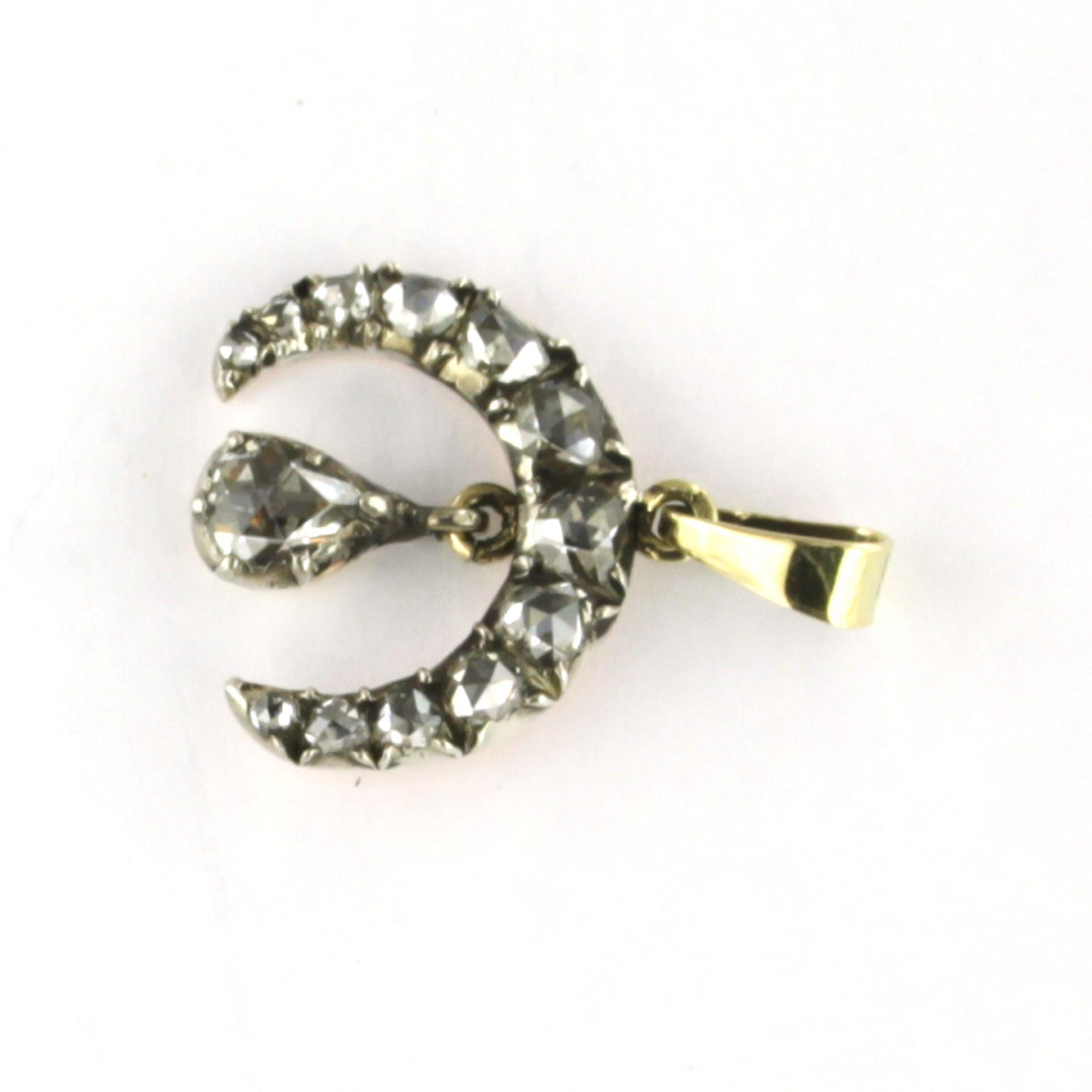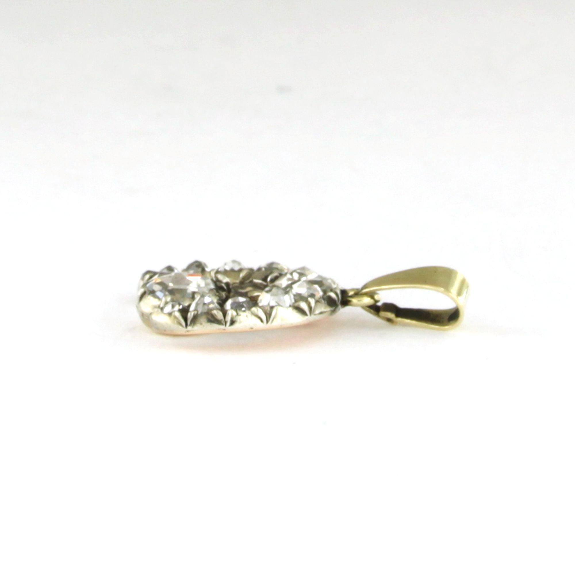 14 Kt. geelgouden met zilveren hanger bezet met roos diamanten tot. 0.50 ct.