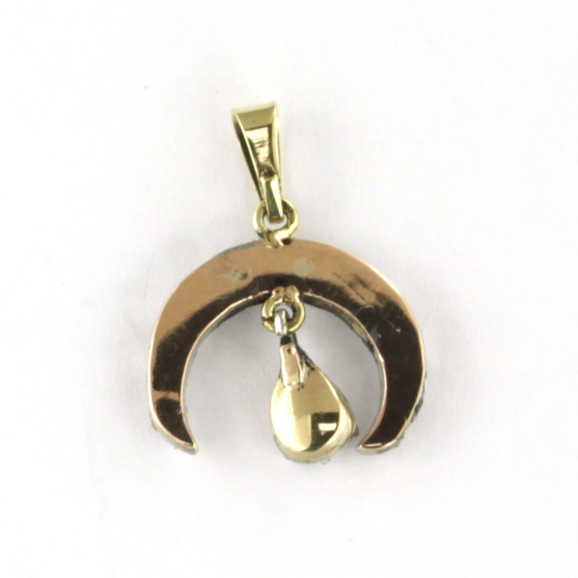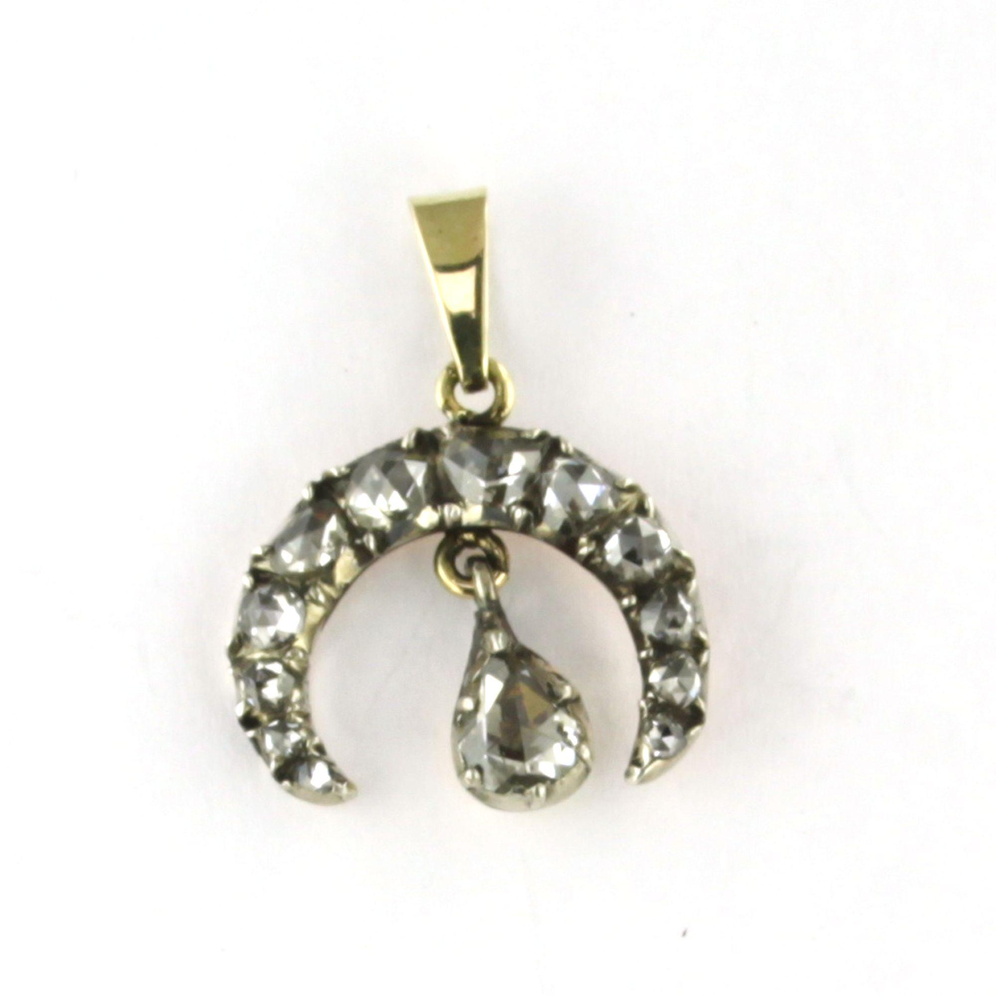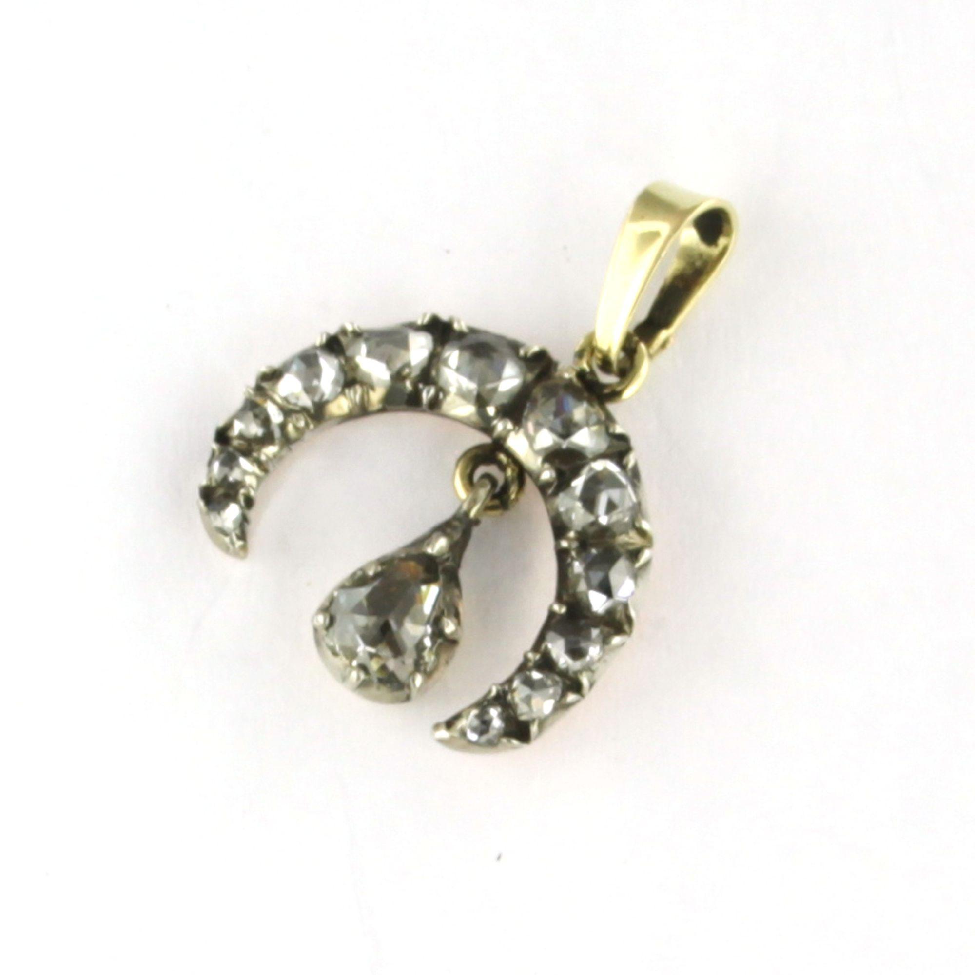 14 Kt. geelgouden met zilveren hanger bezet met roos diamanten tot. 0.50 ct.