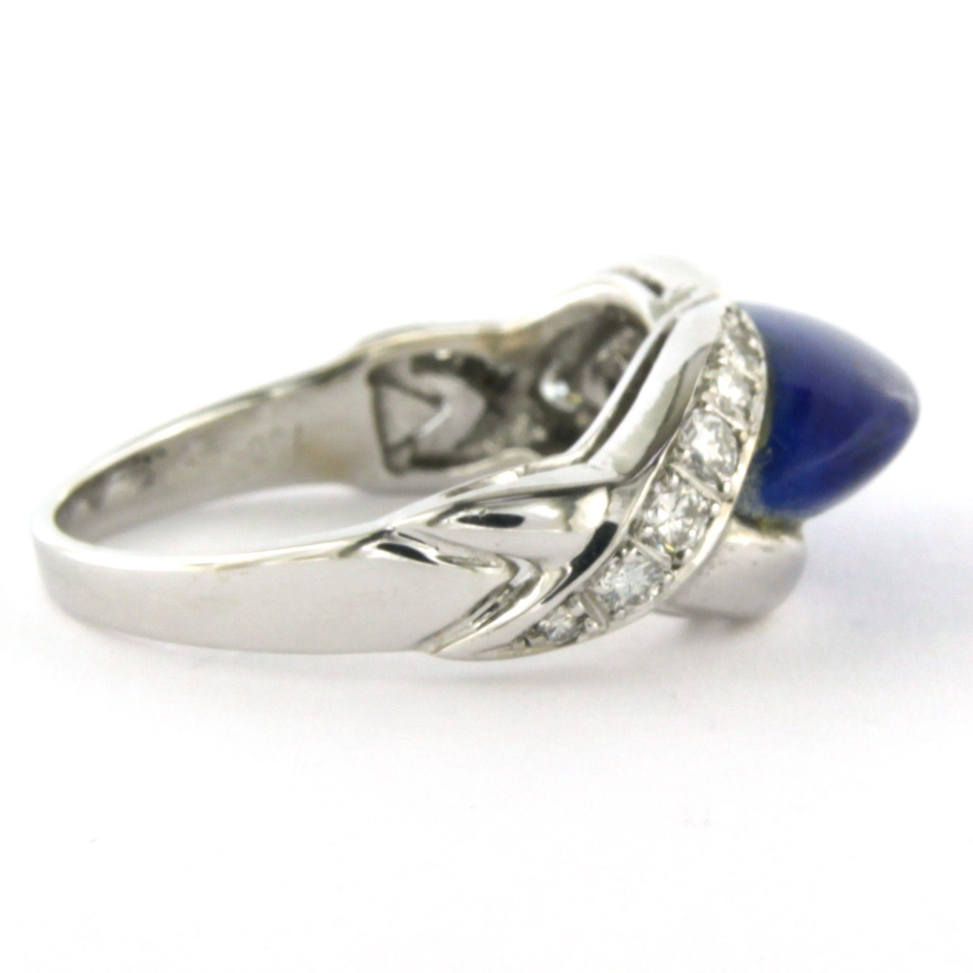 18 Kt. witgouden ring bezet met lapis lazuli en briljant geslepen diamant tot. 0.30 ct.