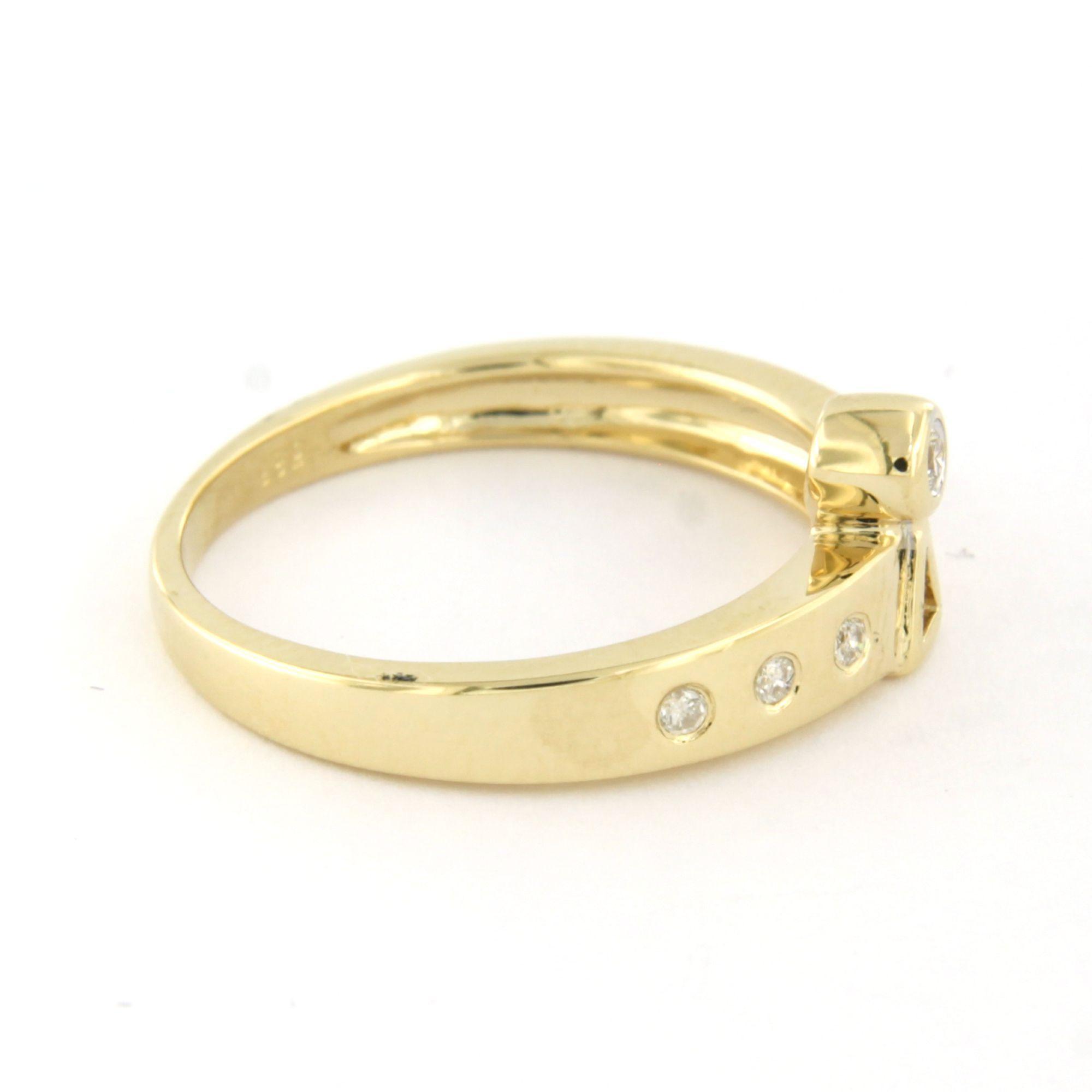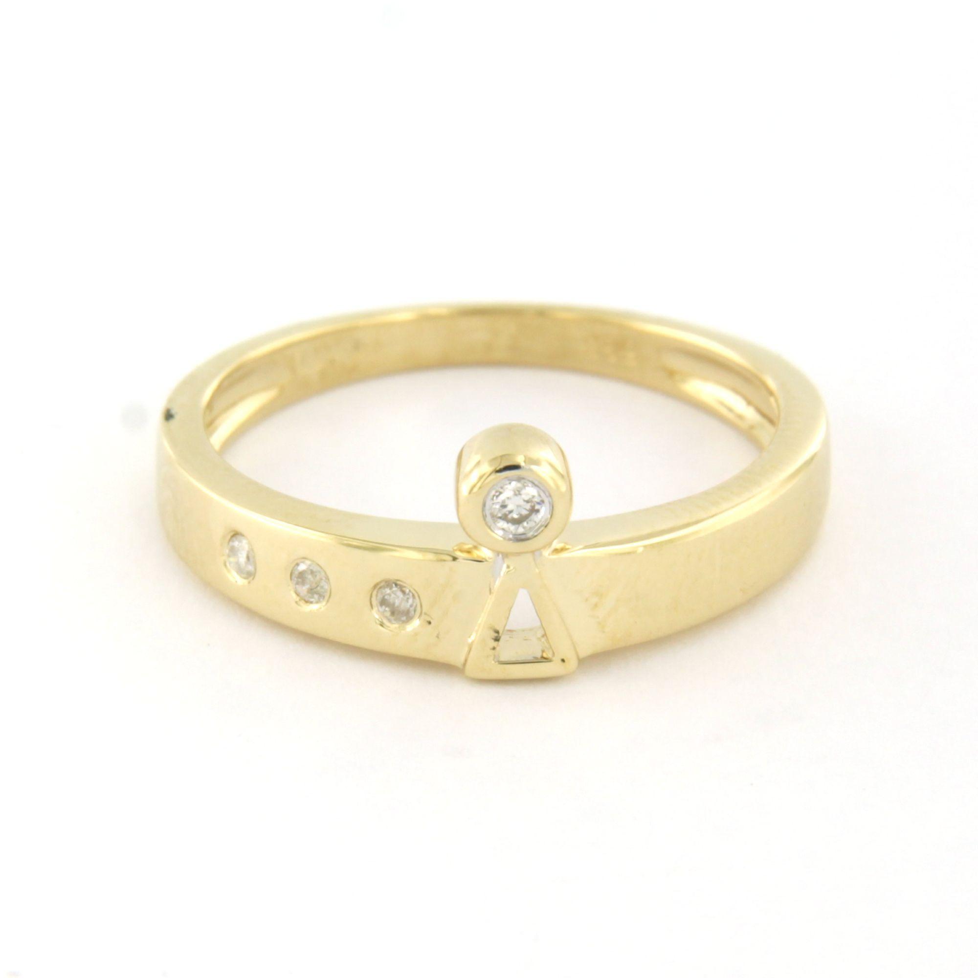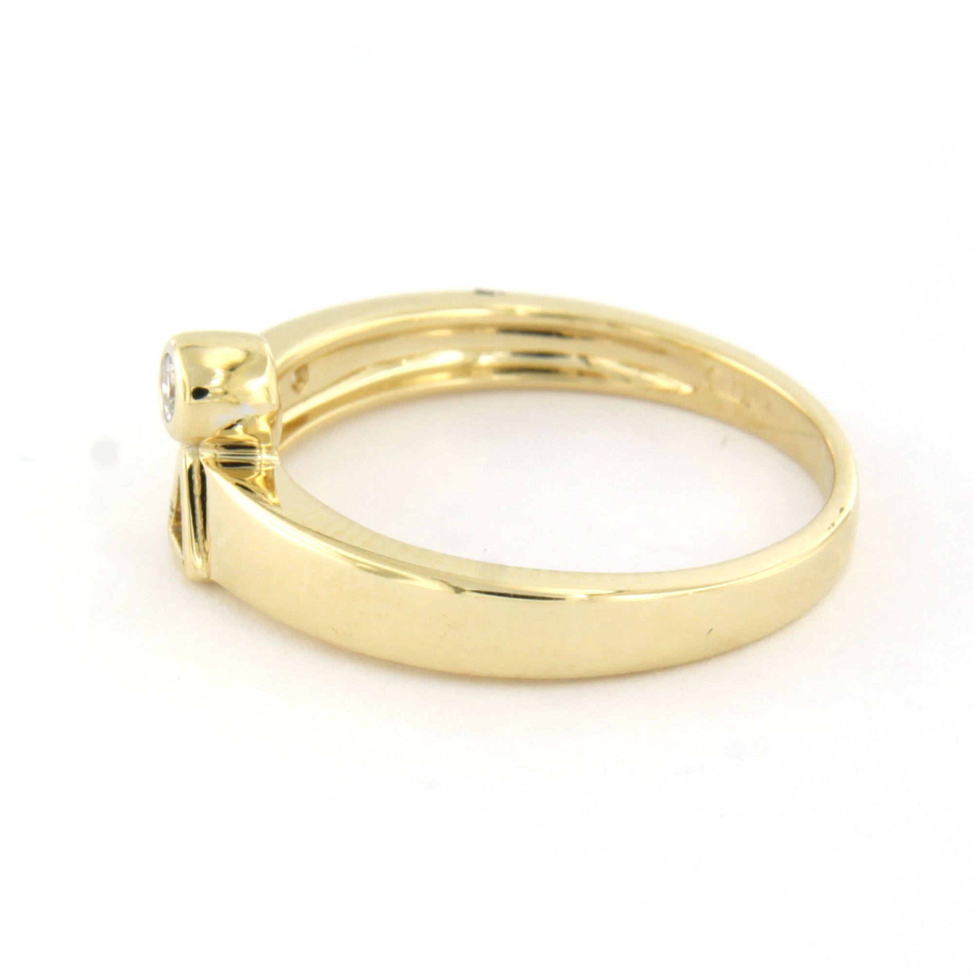 14 Kt. geelgouden ring bezet met briljant geslepen diamant tot. 0.05 ct. - ringmaat 16.5(52)