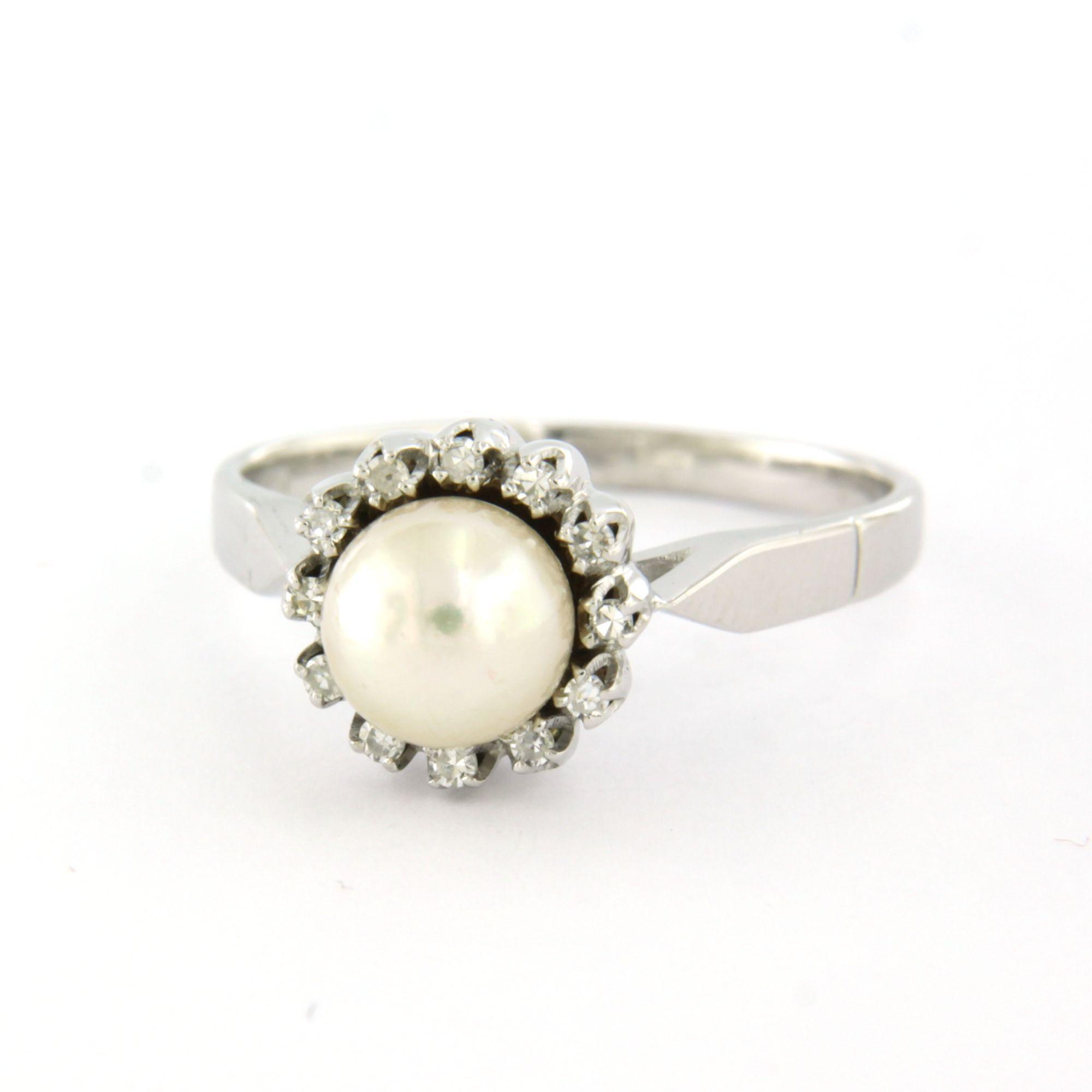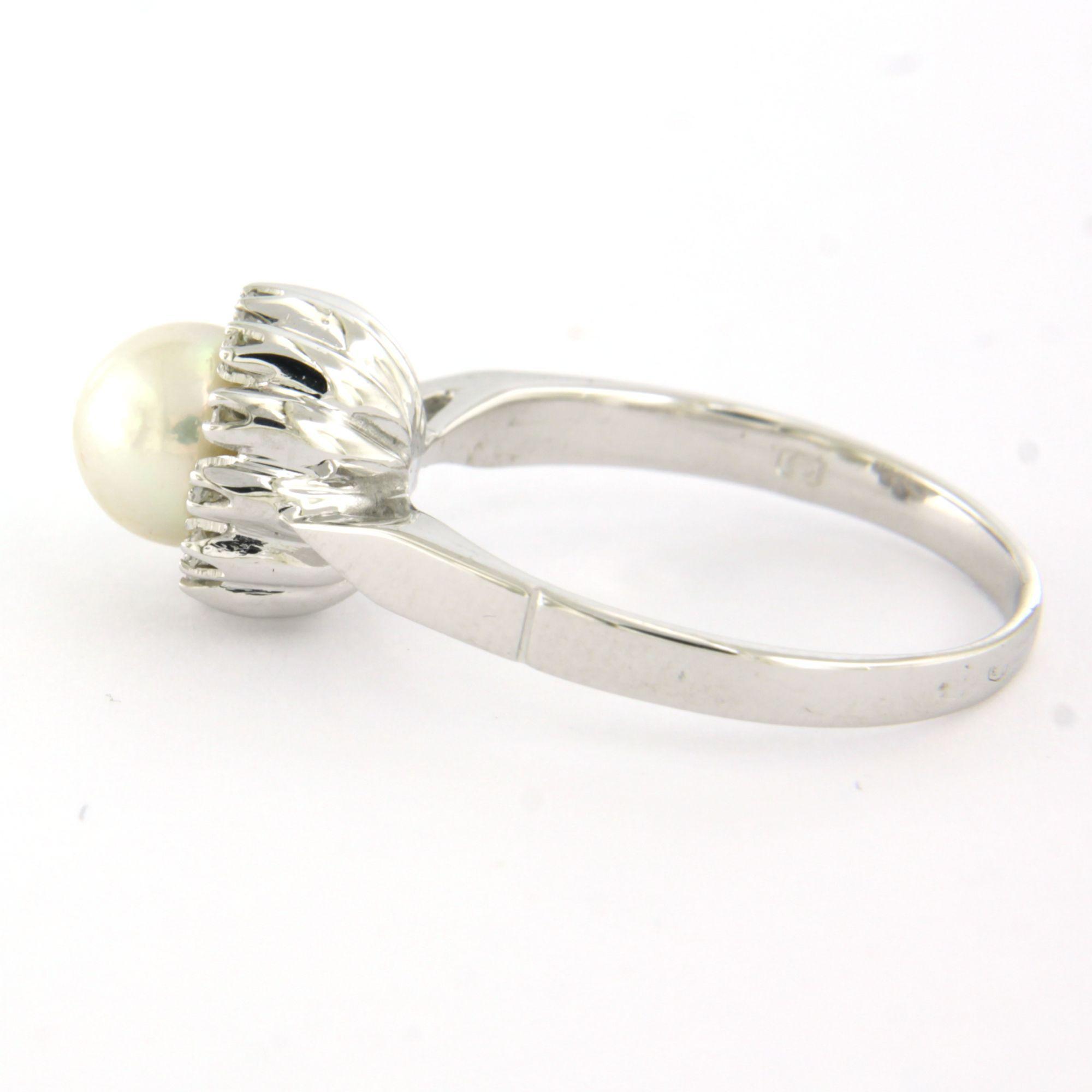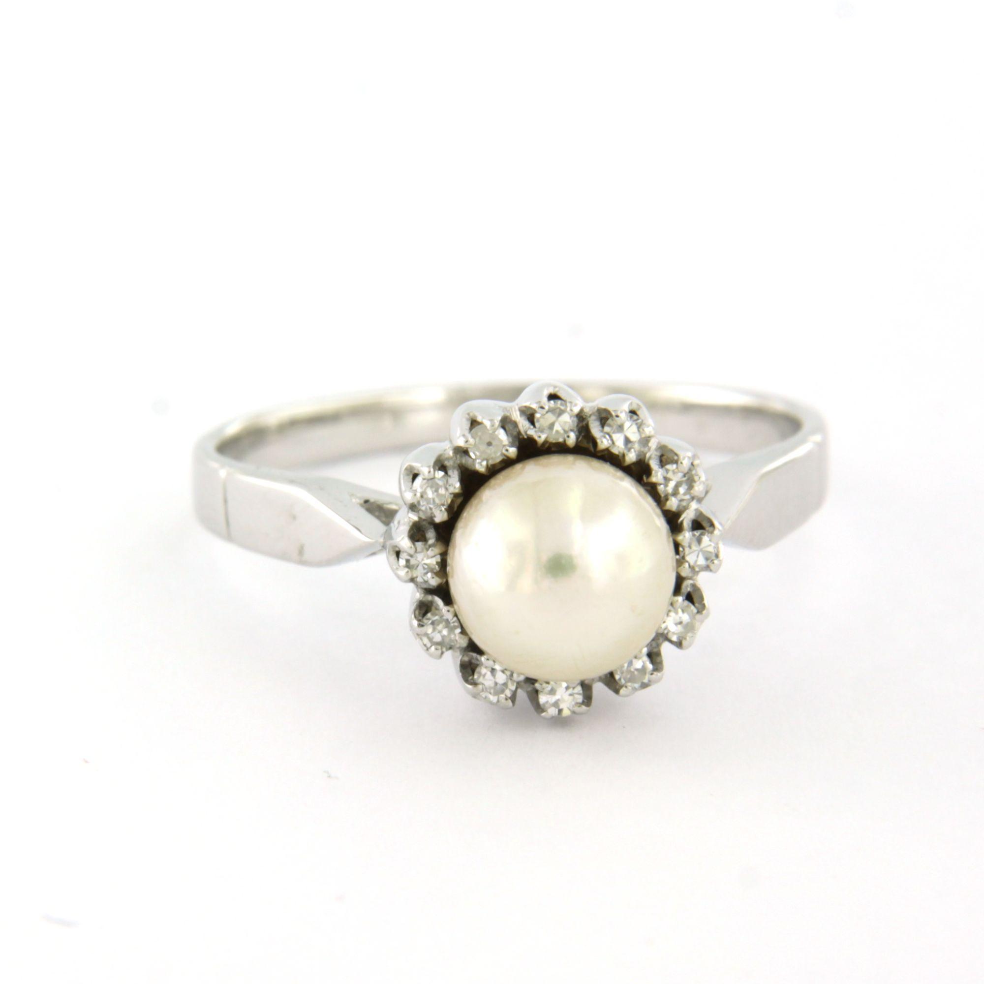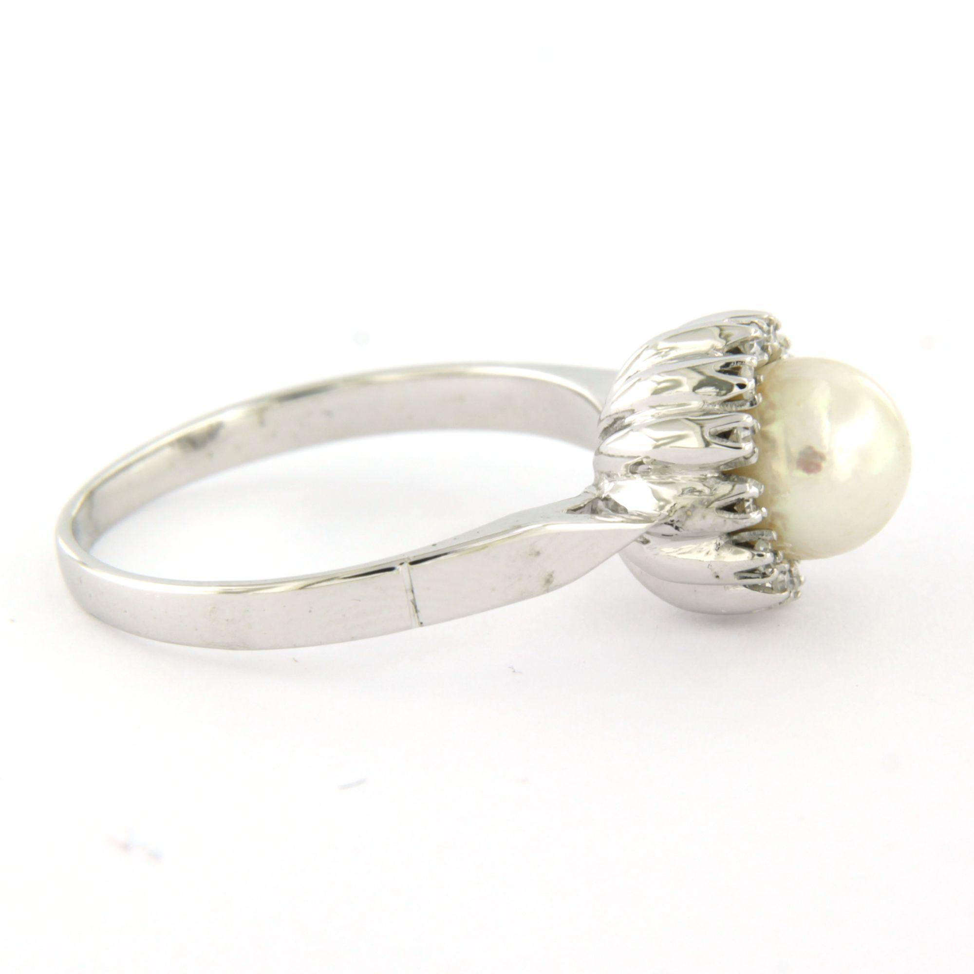 14 Kt. witgouden ring bezet met parel en single cut geslepen diamanten tot. 0.05 ct. - F/G - VS/SI - ringmaat 17.75(56)