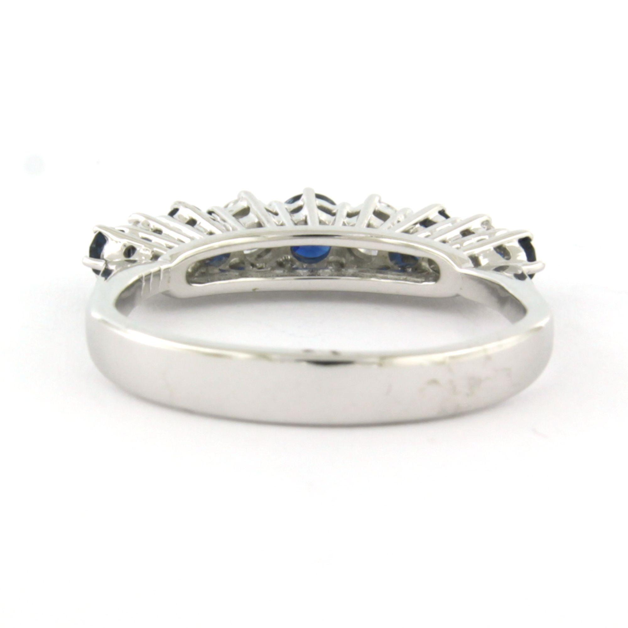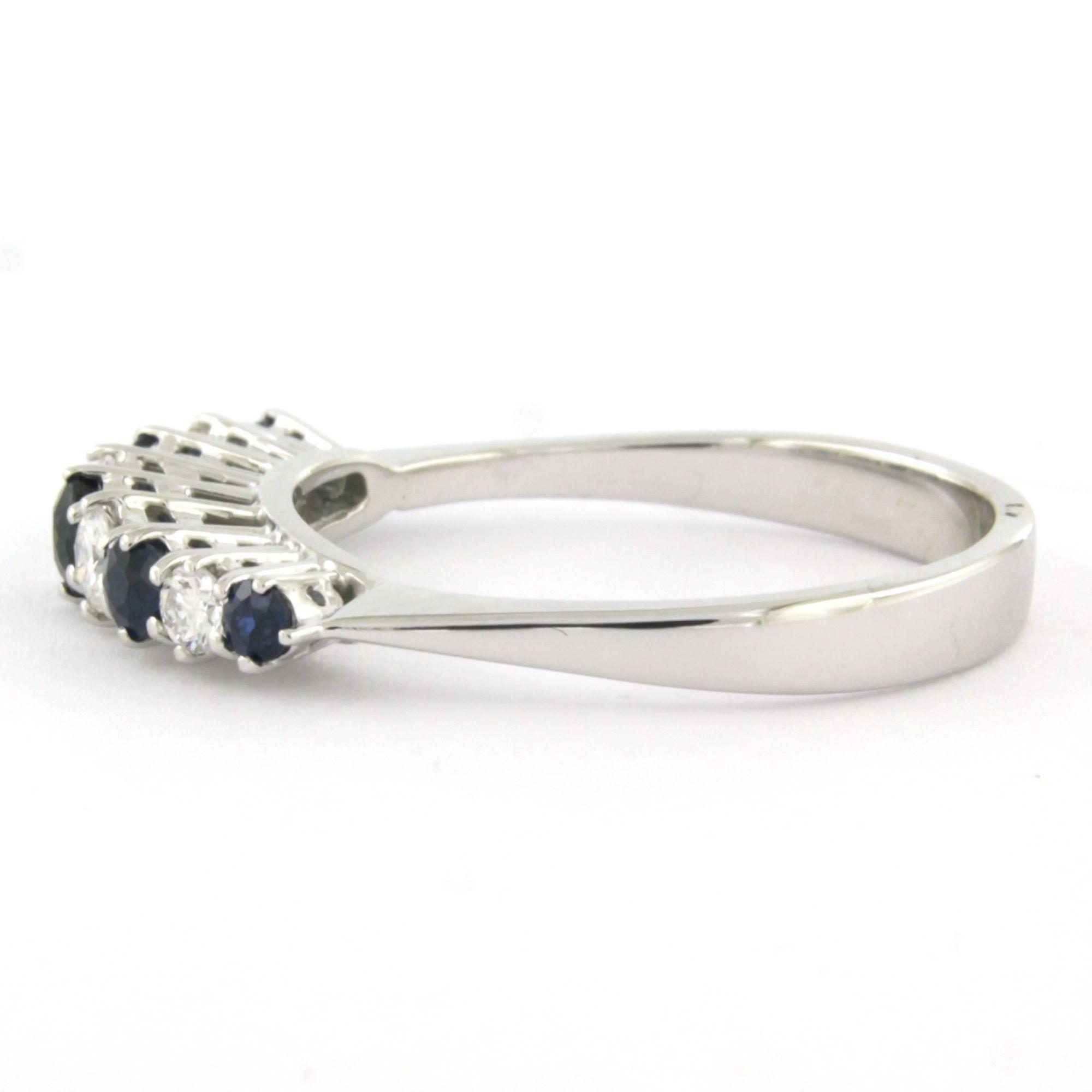 18 Kt. witgouden ring bezet met saffier en briljant geslepen diamant tot. 0.30 ct. - ringmaat 17.5(55)