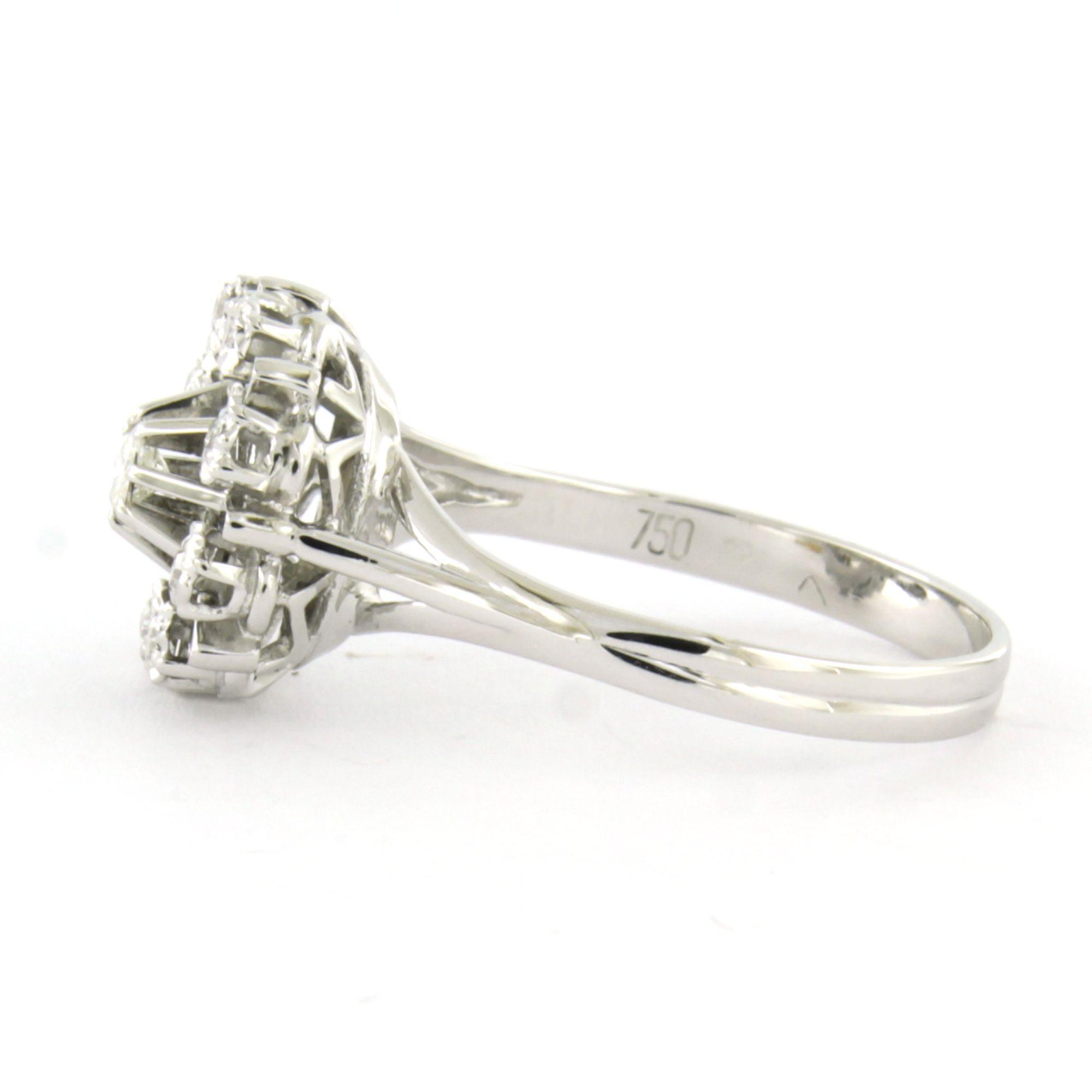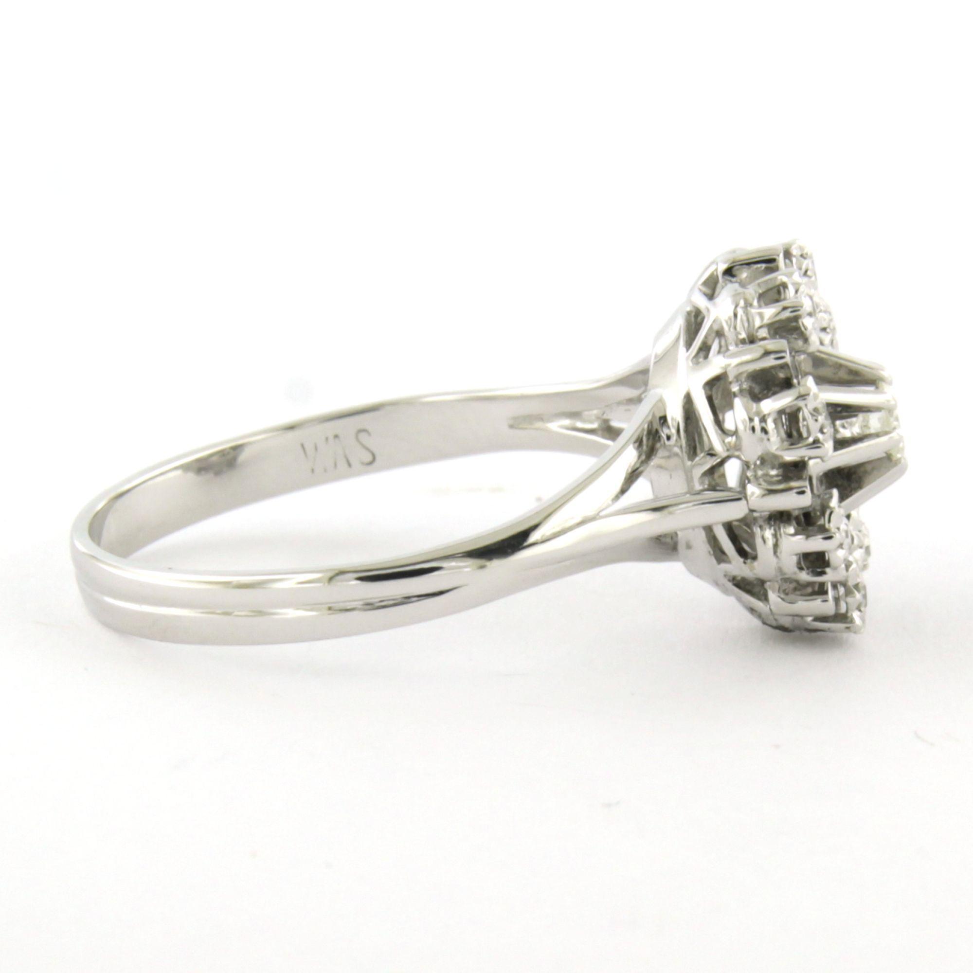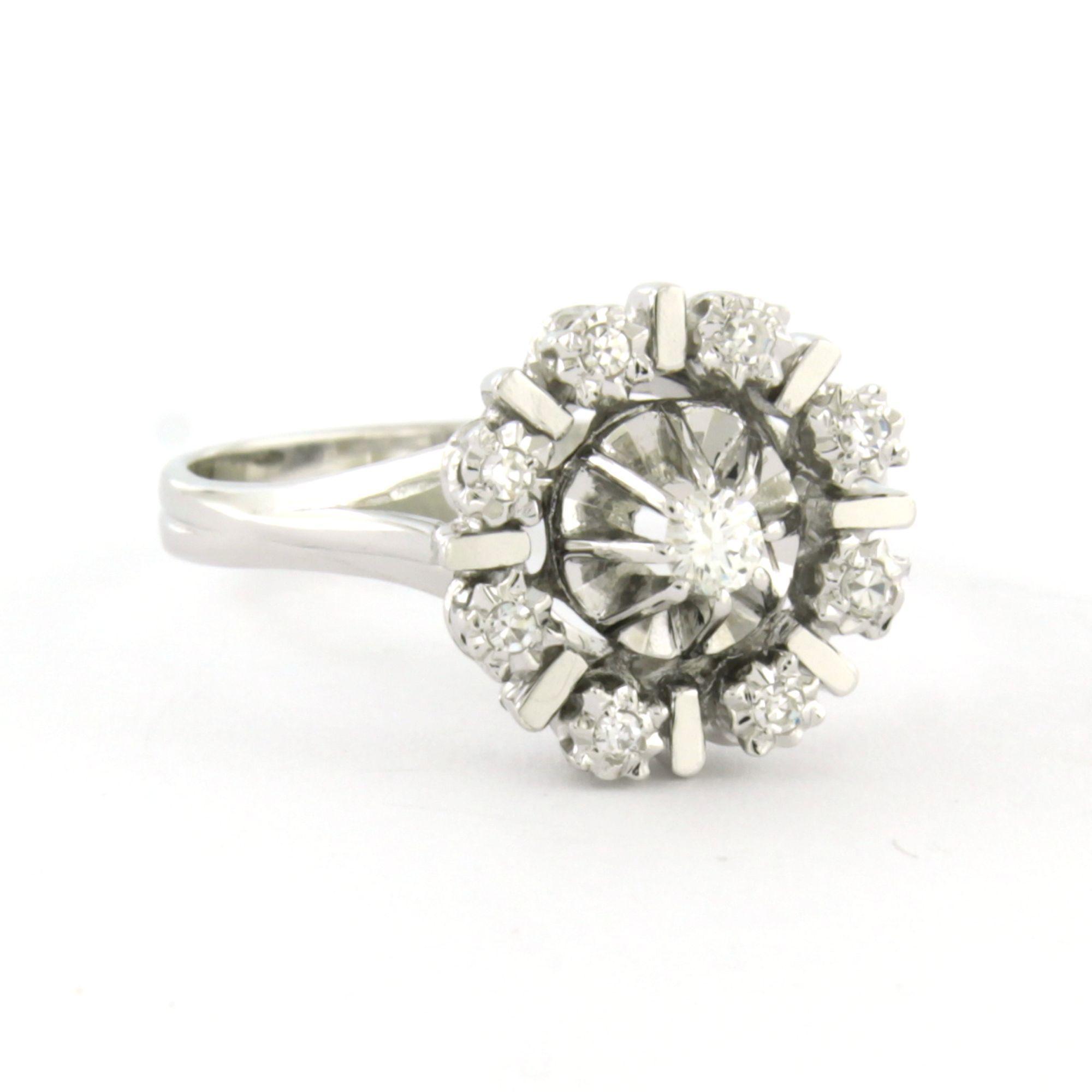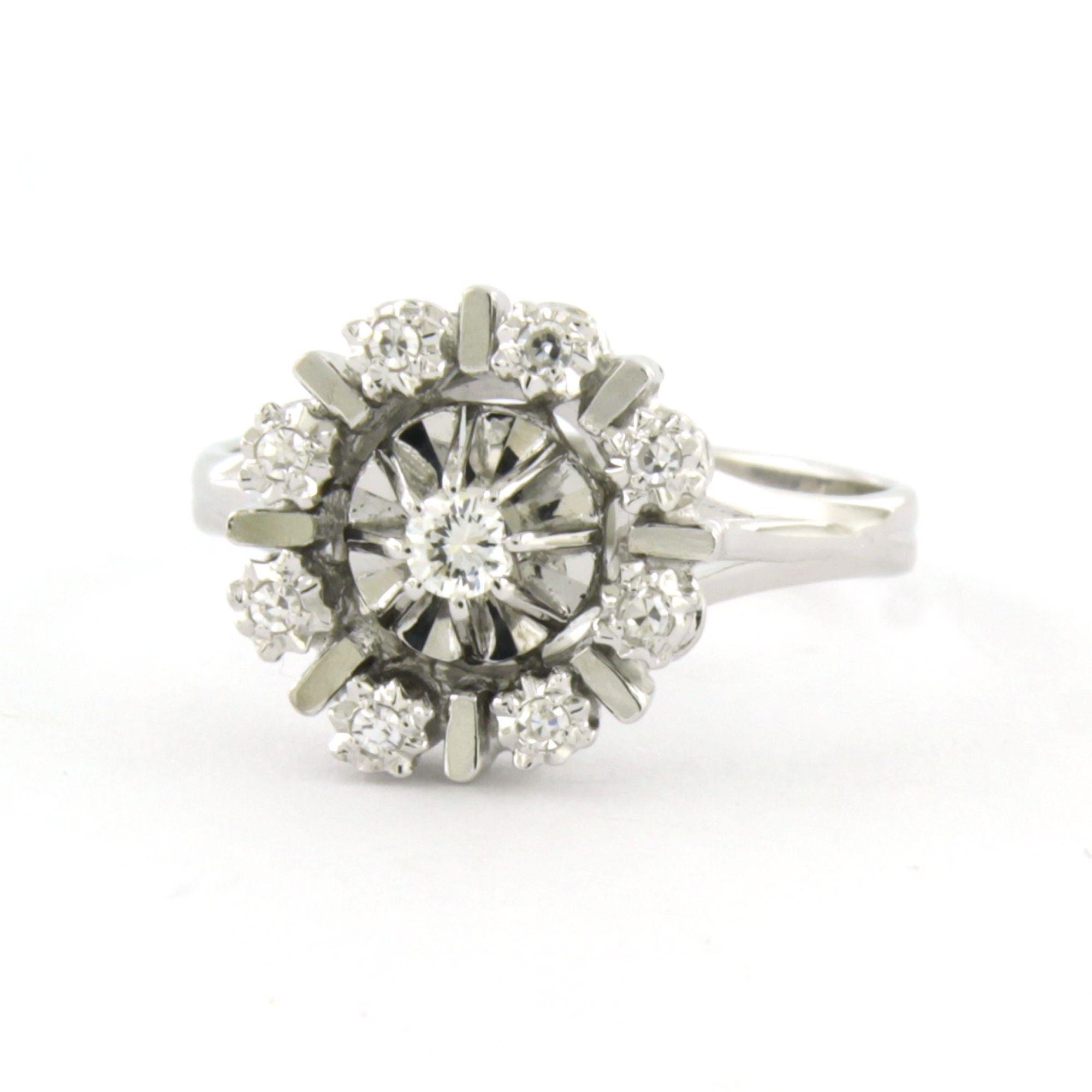18 Kt. witgouden ring bezet met briljant en single cut geslepen diamanten tot. 0.15 ct. - ringmaat 17.75(56)