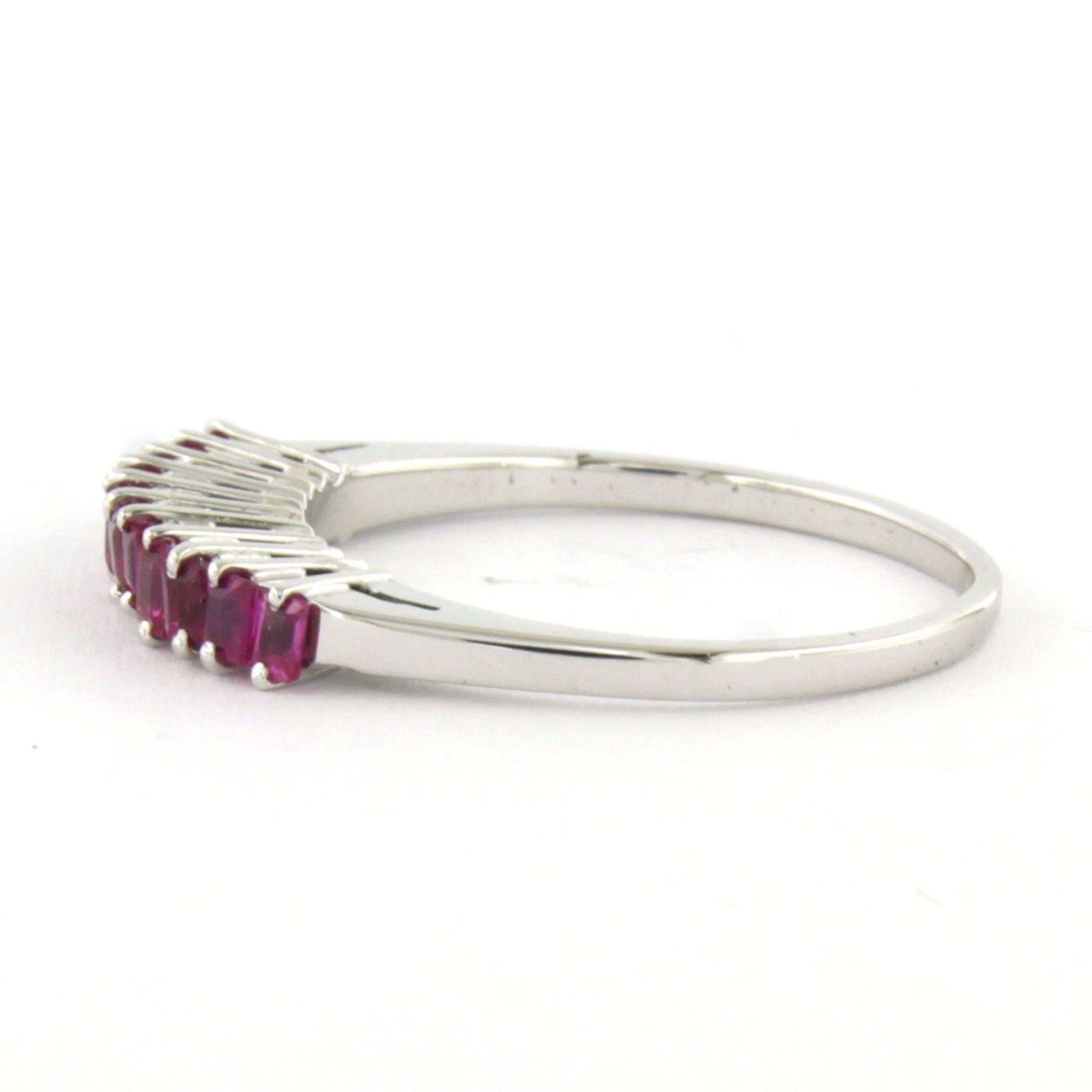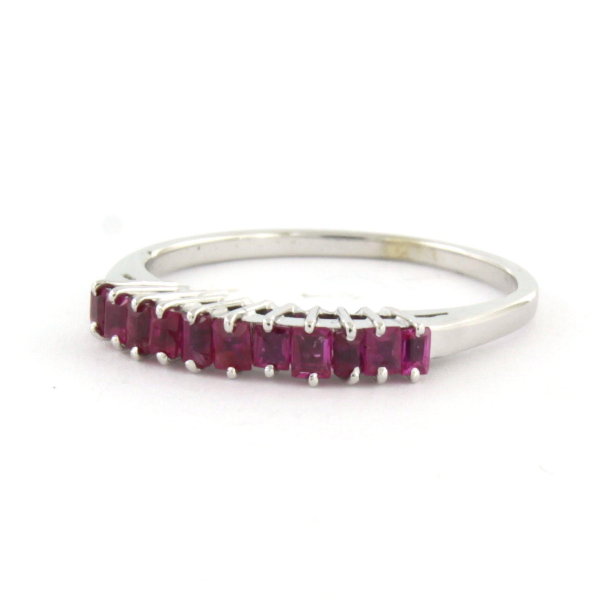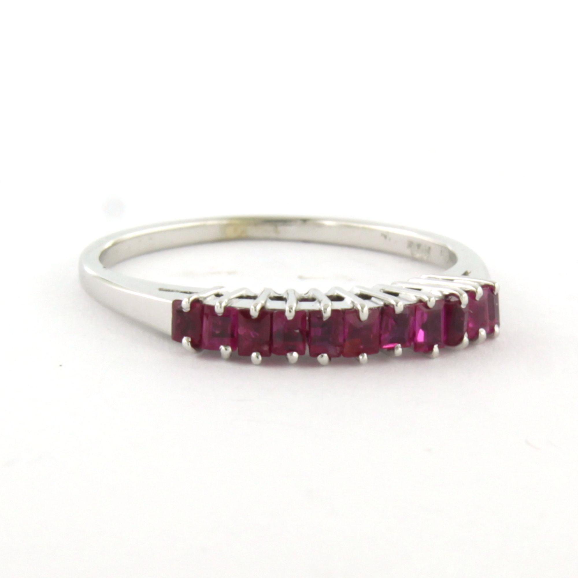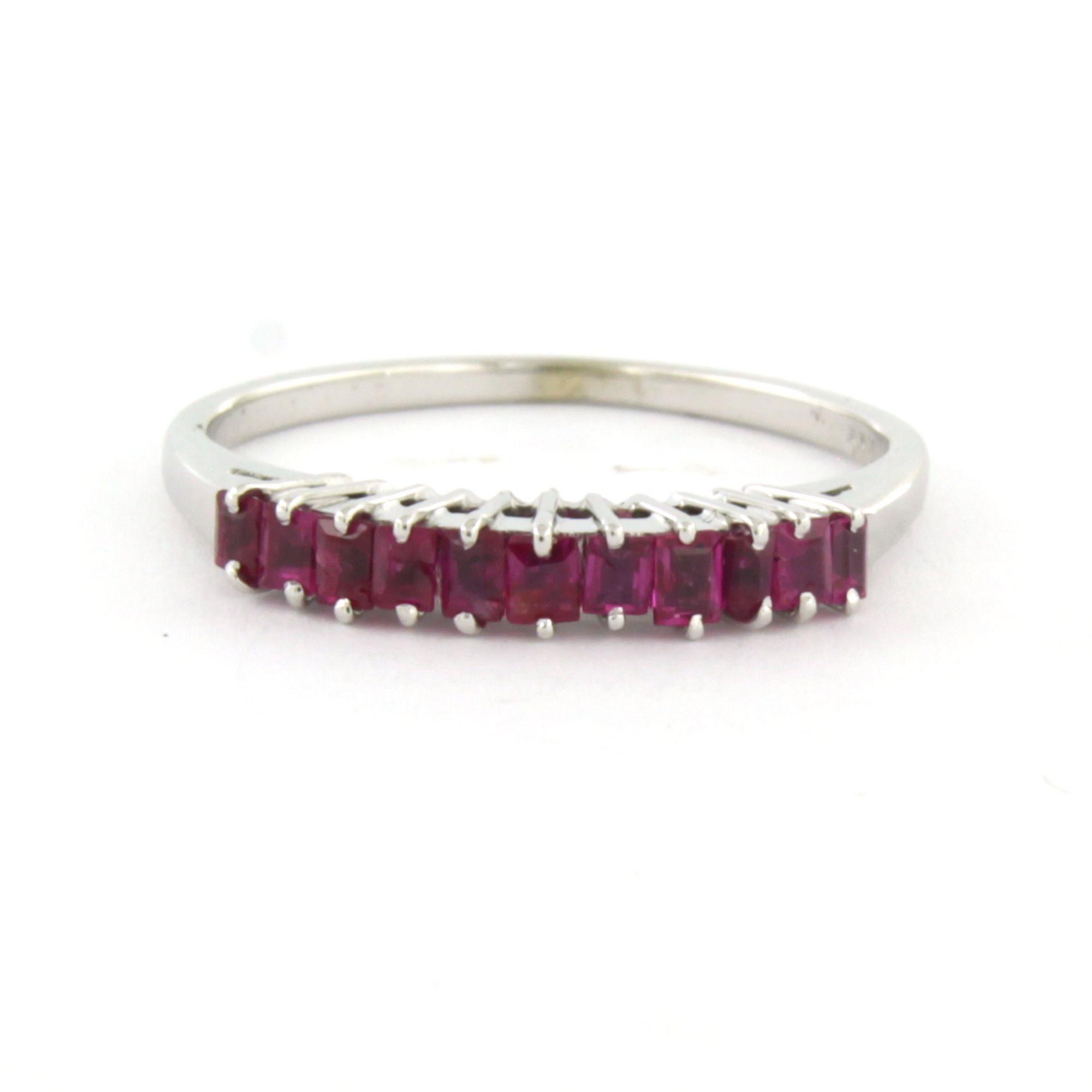 18 Kt. witgouden ring bezet met robijn - ringmaat 16.5(52)