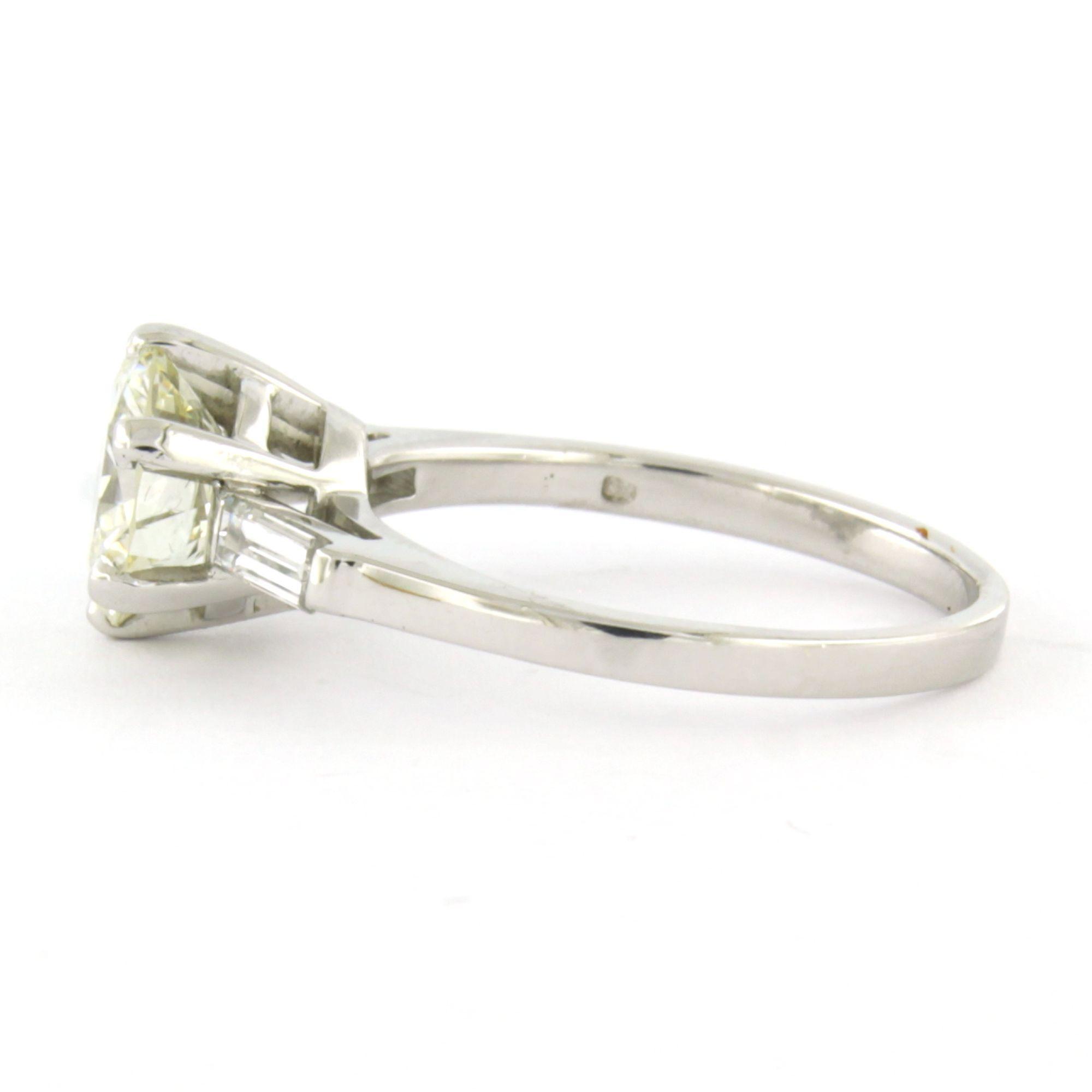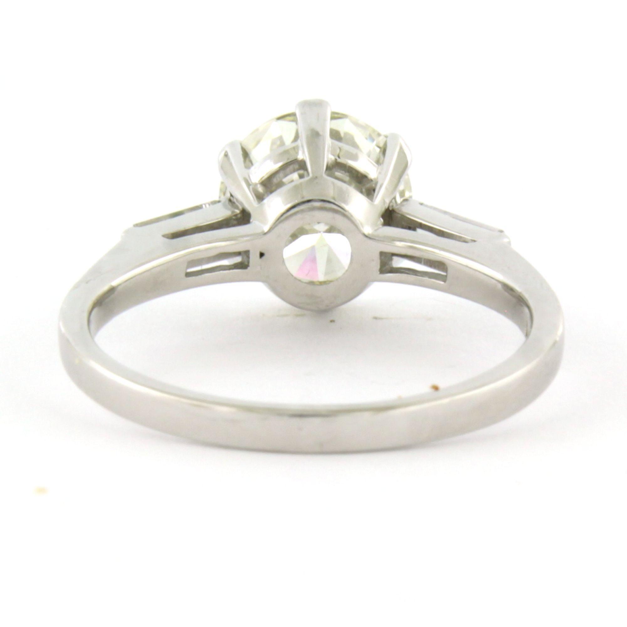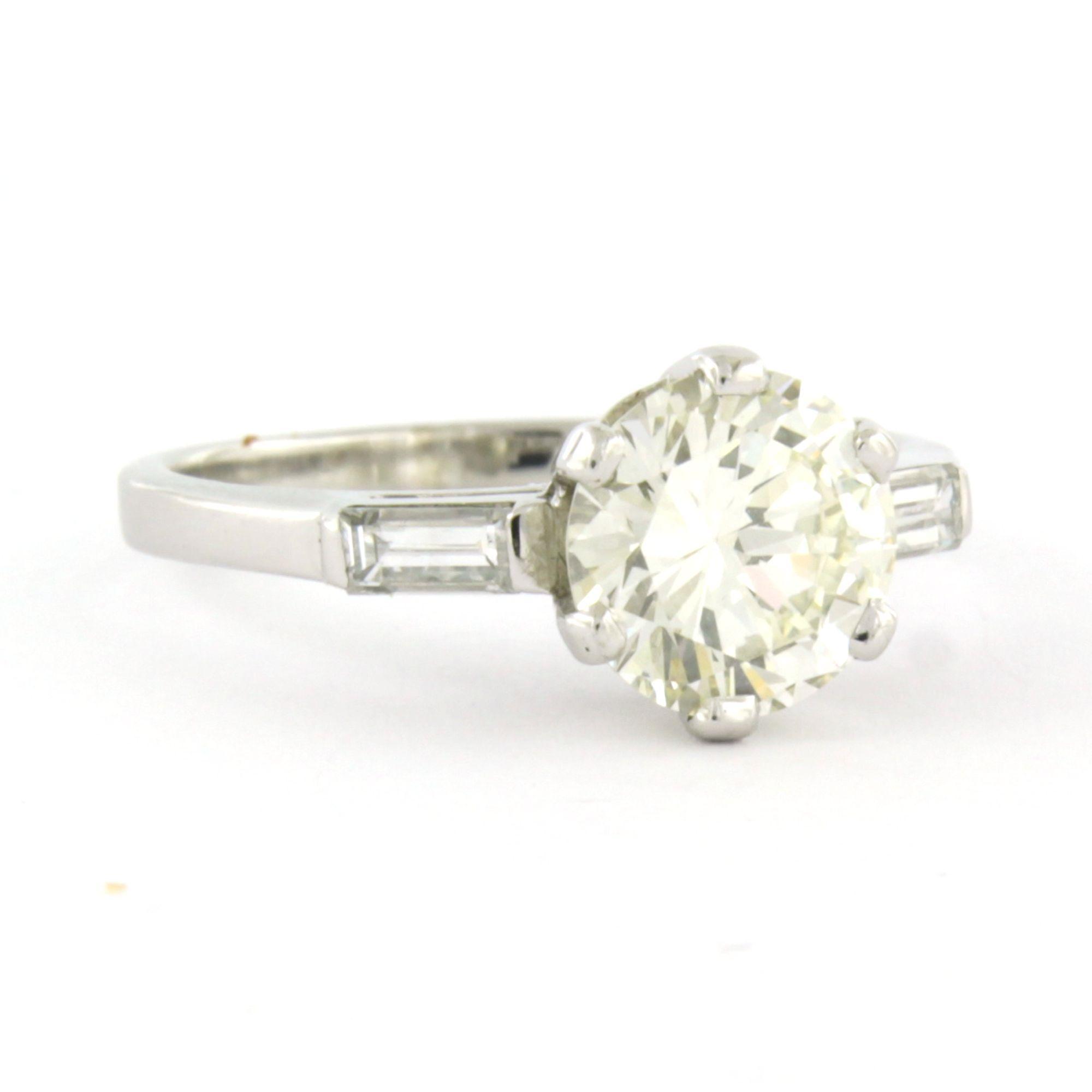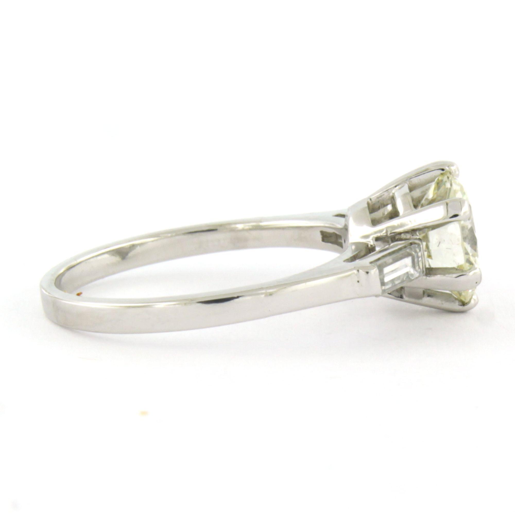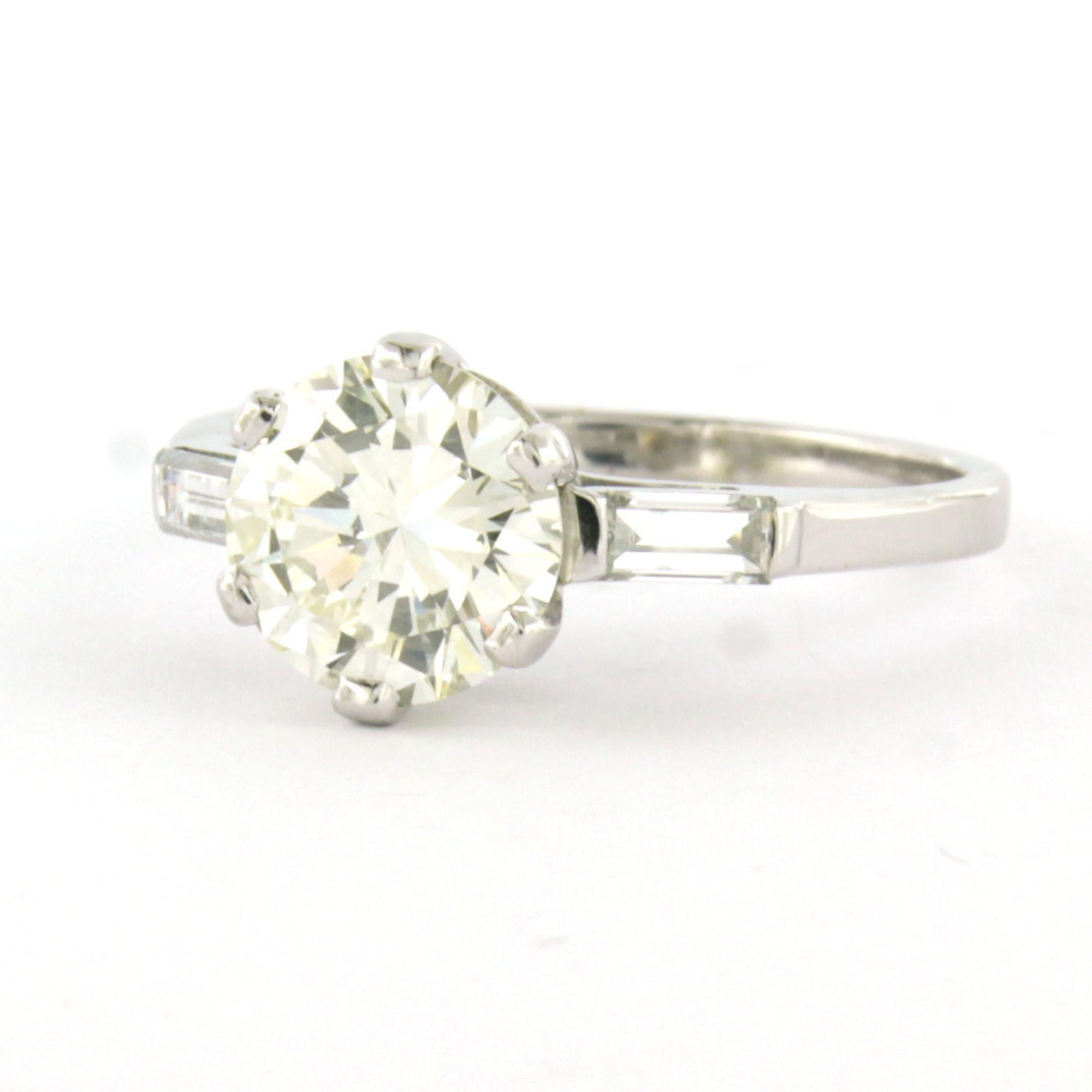 18 Kt. witgouden ring bezet met centraal een briljant geslepen diamant tot. 2.05 ct. met twee taper geslepen diamant tot. 0.40 ct. - ringmaat 18.25(57)
