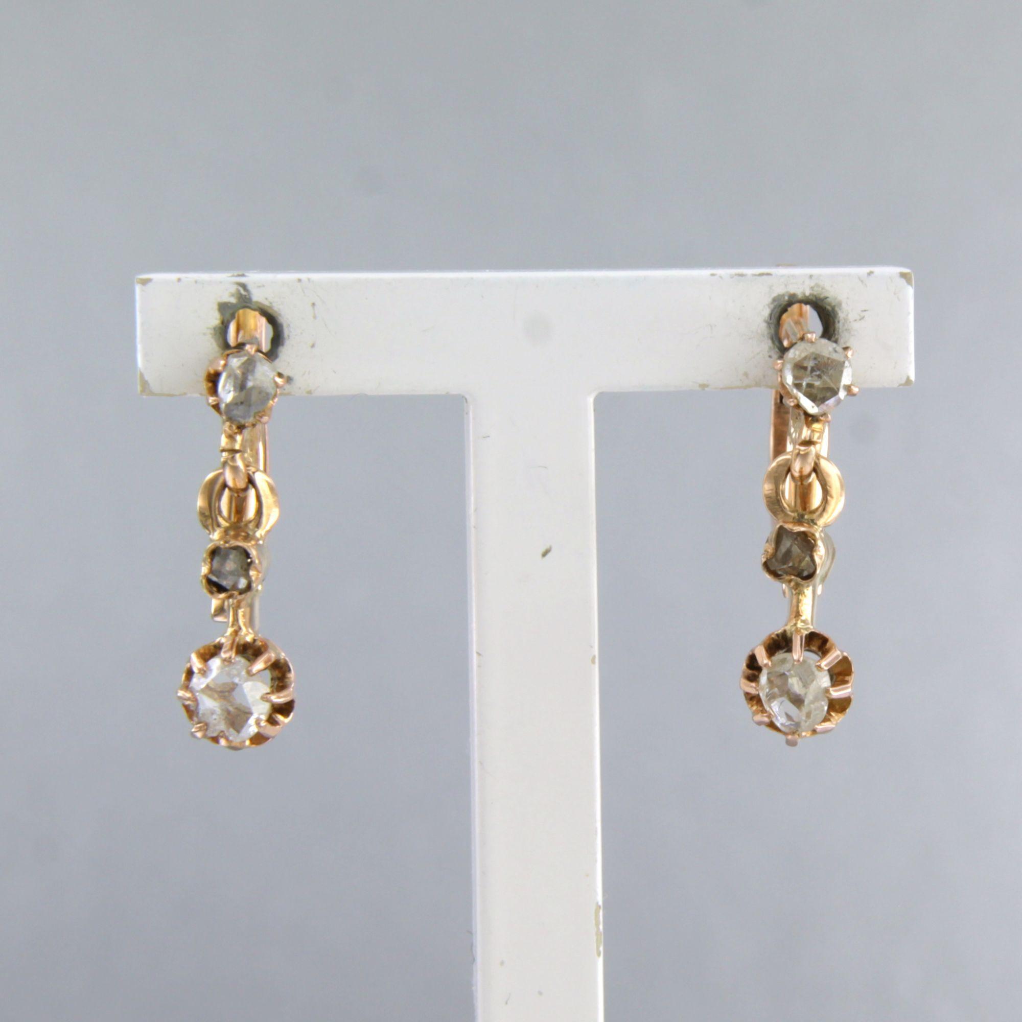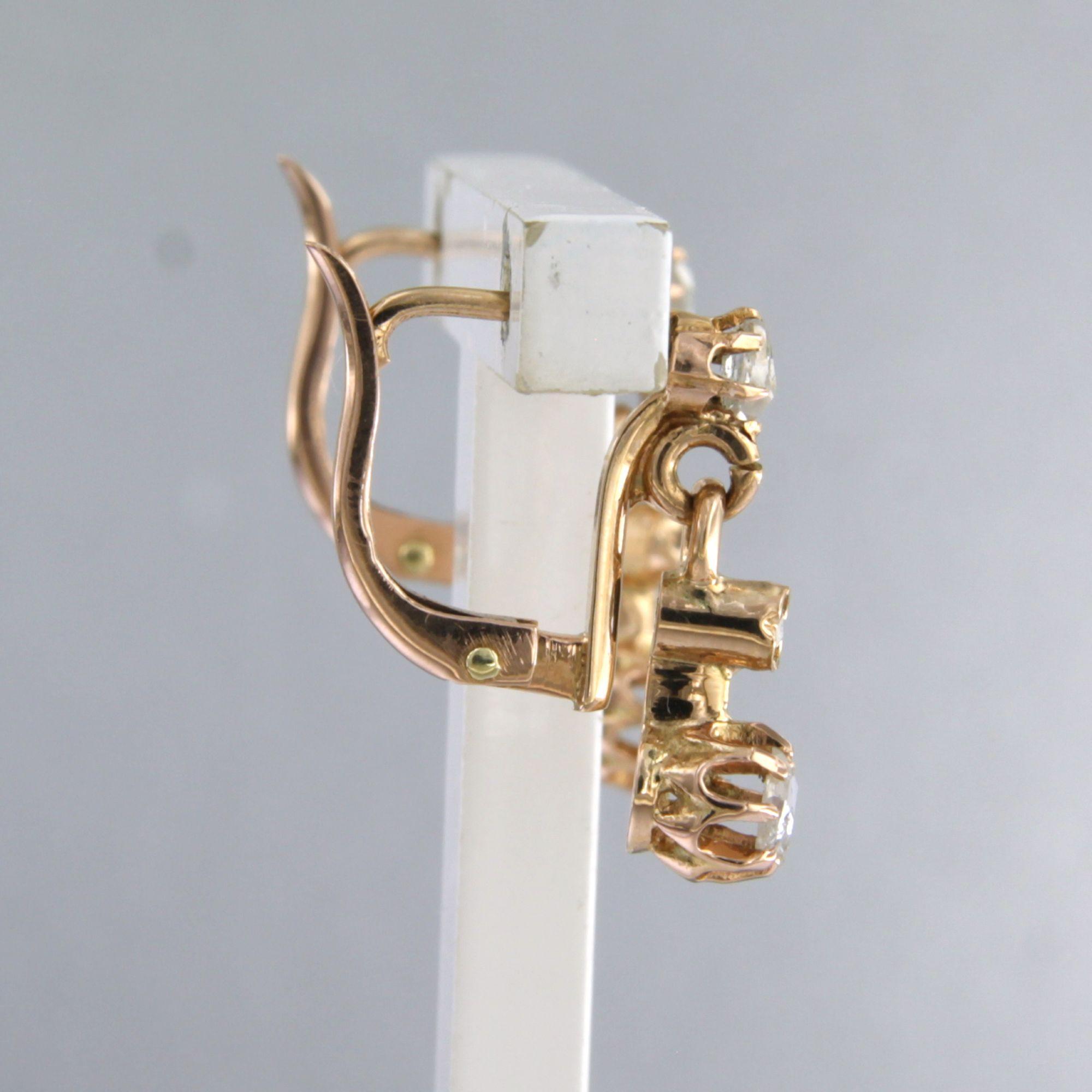 18 Kt. roségouden oorhangers bezet met roosdiamanten tot. 0.15 ct.